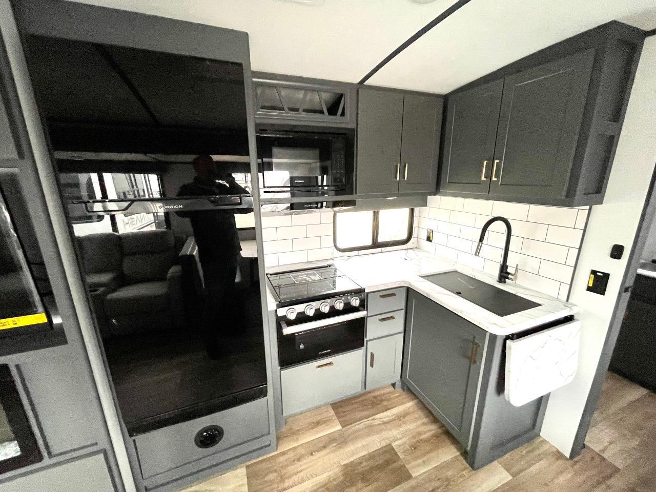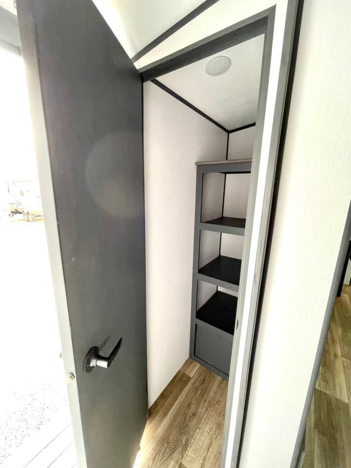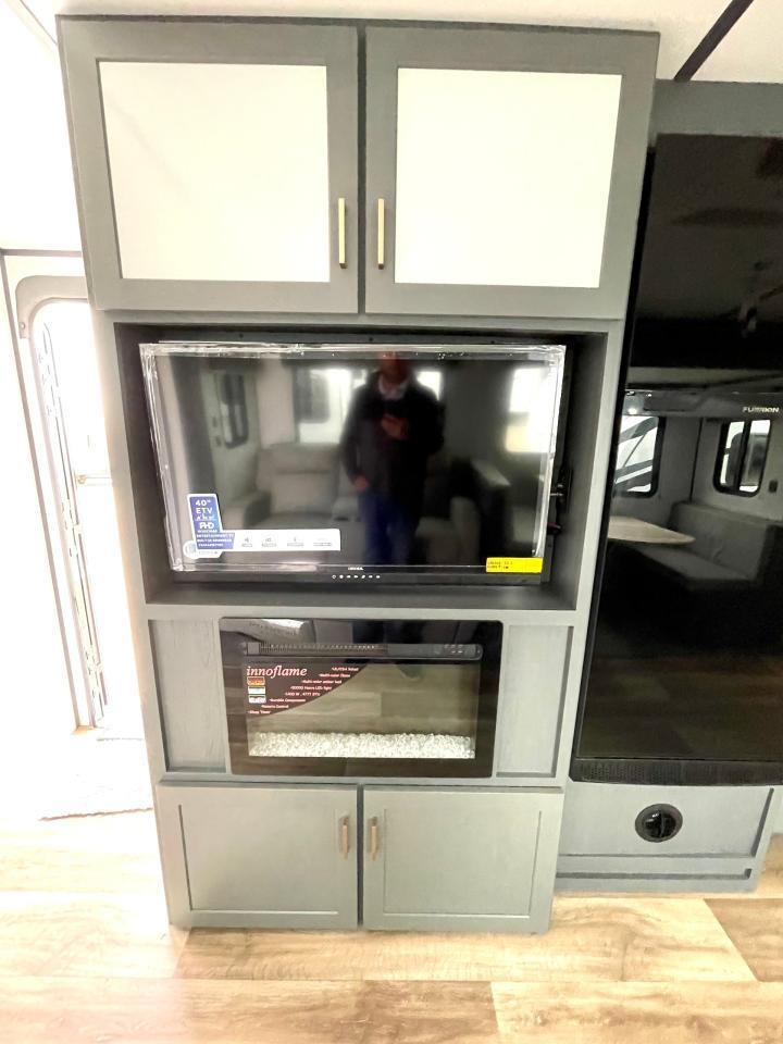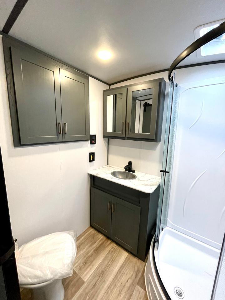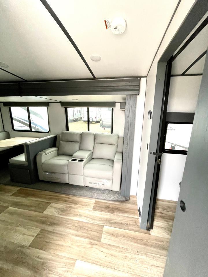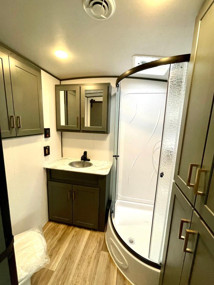 Interior Camping Package: Vaulted Ceilings, LED TV, AM/FM Stereo with Bluetooth, 3 Burner Range w/Cover, Stainless Steel Sink w/High Rise Faucet, Pop Up Outlets in Kitchen, Decorative Backsplash, Dream Dinette, Queen Bed, Laundry Chute