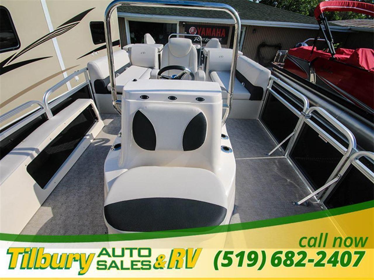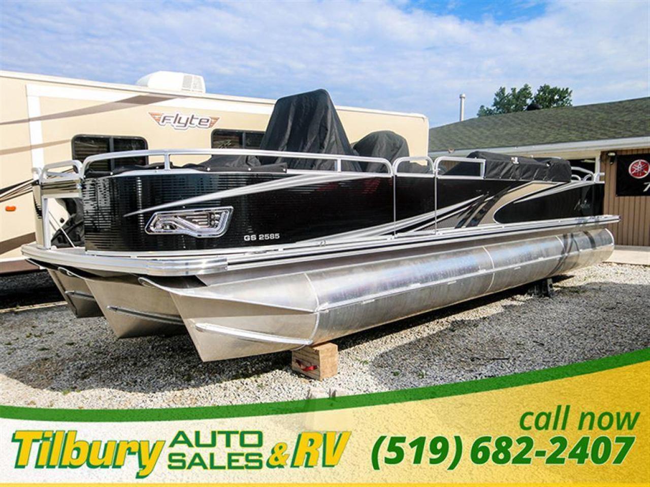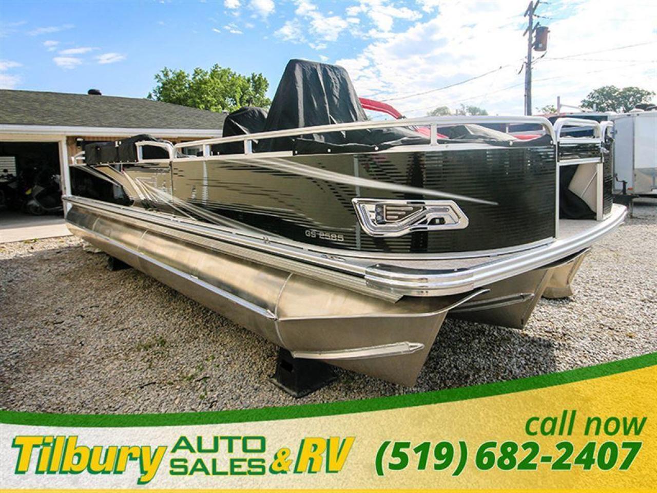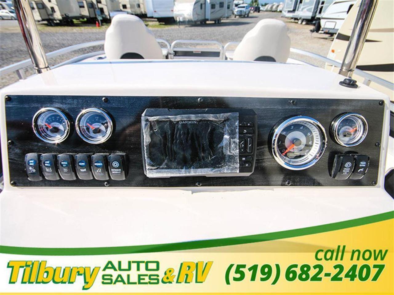 GS Fish offers a great value in a roomy, well-built fishing pontoon. With a full 8 1/2' width, it has loads of room for fighting fish. 25x25 center tube Nose Cone Side Keels **Canvas Features** Black Canvas Seat Covers **Chair Features** 4 Fishing Chairs on pedestals 1 low back reclining commander chair **Dash/Electronics Features** Garmin Striker 5DV POLK PA4ASMK 4MILSP6502 Speakers Dual battery management system Promo Long Harness 129129 **Helm Stand Features** Center fiberglass helmstand Courtesy light Center console panel 12V power plug Yamaha Prerig Yamaha trim gauge Voltmeter Fuel gauge Windshield Burano steering wheel **Steering Features** Baystar tilt steering Power assist steering **Deck Features** Buckskin brushstroke on full deck heavy duty rub rail with rubber bumper polished corner caps 4 pull up cleats predrill transom extended deck **Furniture Features** privacy station door(s) 1 curved smoked glass table with base sink stainless cup holders suspension seating white cladding **Lighting Features** underwater lights lights under rub rail **Misc Features** fire extinguisher starboard rod box rear entry ladder grill, pedestal mounted livewell in bench livewell in rear washdown system **Motor Options** Trolling motor plug Yamaha water separator **Performance Features** Aluminum under-sheeting 4 HPP finns LSZ/LTZ/GS/GT Performance Package **Pontoon Features** Extra pump bracket 2016 Center tube construction 25 inch center tube system 38 gallon fuel tank side keels full riser upgrade **Top Features** 8.5x10 square frame SST top connectors **Wall Features** Black wall skins half front gate chrome dock assy mirror chrome logos **Watersports Feature** Tow Bar While every reasonable effort is made to ensure the accuracy of this data, we are not responsible for any errors or omissions contained on these pages. Please verify any information in question with a dealership sales representative. Please call for further details. While every reasonable effort is made to ensure the accuracy of this data, we are not responsible for any errors or omissions contained on these pages. Please verify any information in question with a dealership sales representative. Serving, Windsor, Essex, Tilbury, Chatham, Blenheim, Rodney, St. Mary's, St. Thomas, Leamington, Harrow, Amherstburg, Kingsville, Wheatley, Belle River, Lakeshore, Wallaceburg, Sarnia,London, Lambton, Lambton County, Lambeth, Essex County, Middlesex, Middlesex County, Rodney, Dresden, Thamesville, Lasalle, Watford, Ailsa Craig, Glencoe, Alvinston, Parkhill, Strathroy, Mt.Brydges, West Lorne, Dutton, Aylmer * Prices in Ontario, include OMVIC/AMVIC fee (where applicable), dealer administration and other retailer charges and exclude taxes, license, insurance, plus HST*