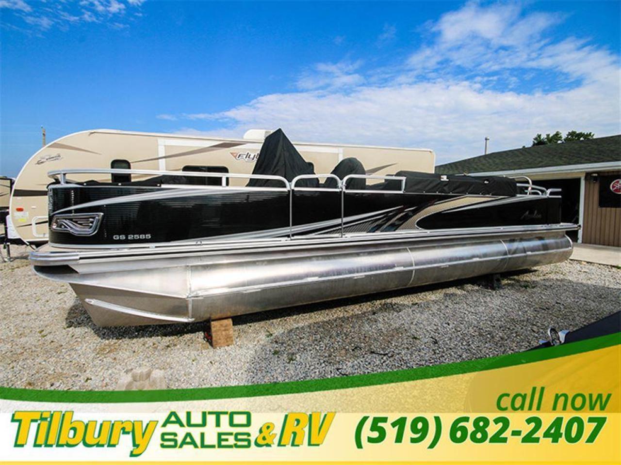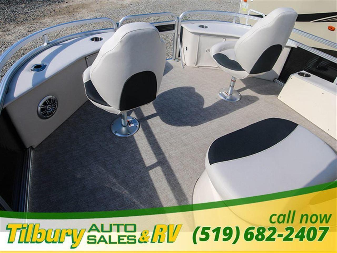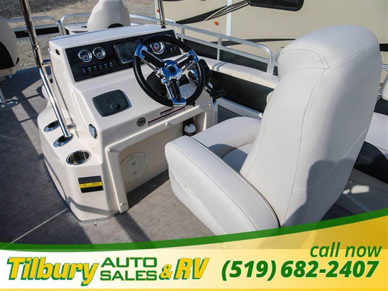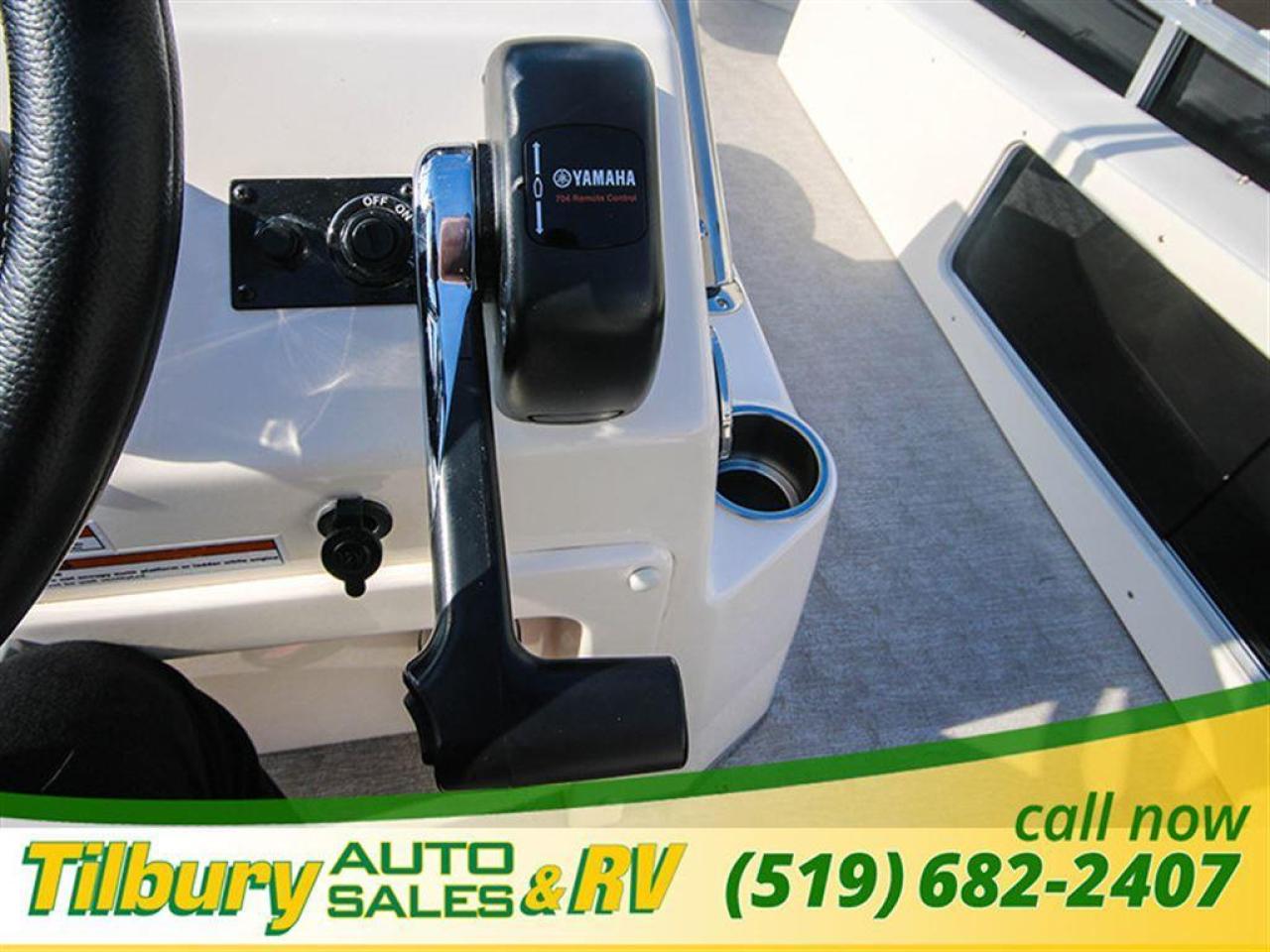 GS Fish offers a great value in a roomy, well-built fishing pontoon. With a full 8 1/2' width, it has loads of room for fighting fish. 25x25 center tube Nose Cone Side Keels **Canvas Features** Black Canvas Seat Covers **Chair Features** 4 Fishing Chairs on pedestals 1 low back reclining commander chair **Dash/Electronics Features** Garmin Striker 5DV POLK PA4ASMK 4MILSP6502 Speakers Dual battery management system Promo Long Harness 129129 **Helm Stand Features** Center fiberglass helmstand Courtesy light Center console panel 12V power plug Yamaha Prerig Yamaha trim gauge Voltmeter Fuel gauge Windshield Burano steering wheel **Steering Features** Baystar tilt steering Power assist steering **Deck Features** Buckskin brushstroke on full deck heavy duty rub rail with rubber bumper polished corner caps 4 pull up cleats predrill transom extended deck **Furniture Features** privacy station door(s) 1 curved smoked glass table with base sink stainless cup holders suspension seating white cladding **Lighting Features** underwater lights lights under rub rail **Misc Features** fire extinguisher starboard rod box rear entry ladder grill, pedestal mounted livewell in bench livewell in rear washdown system **Motor Options** Trolling motor plug Yamaha water separator **Performance Features** Aluminum under-sheeting 4 HPP finns LSZ/LTZ/GS/GT Performance Package **Pontoon Features** Extra pump bracket 2016 Center tube construction 25 inch center tube system 38 gallon fuel tank side keels full riser upgrade **Top Features** 8.5x10 square frame SST top connectors **Wall Features** Black wall skins half front gate chrome dock assy mirror chrome logos **Watersports Feature** Tow Bar While every reasonable effort is made to ensure the accuracy of this data, we are not responsible for any errors or omissions contained on these pages. Please verify any information in question with a dealership sales representative. Please call for further details. While every reasonable effort is made to ensure the accuracy of this data, we are not responsible for any errors or omissions contained on these pages. Please verify any information in question with a dealership sales representative. Serving, Windsor, Essex, Tilbury, Chatham, Blenheim, Rodney, St. Mary's, St. Thomas, Leamington, Harrow, Amherstburg, Kingsville, Wheatley, Belle River, Lakeshore, Wallaceburg, Sarnia,London, Lambton, Lambton County, Lambeth, Essex County, Middlesex, Middlesex County, Rodney, Dresden, Thamesville, Lasalle, Watford, Ailsa Craig, Glencoe, Alvinston, Parkhill, Strathroy, Mt.Brydges, West Lorne, Dutton, Aylmer * Prices in Ontario, include OMVIC/AMVIC fee (where applicable), dealer administration and other retailer charges and exclude taxes, license, insurance, plus HST*