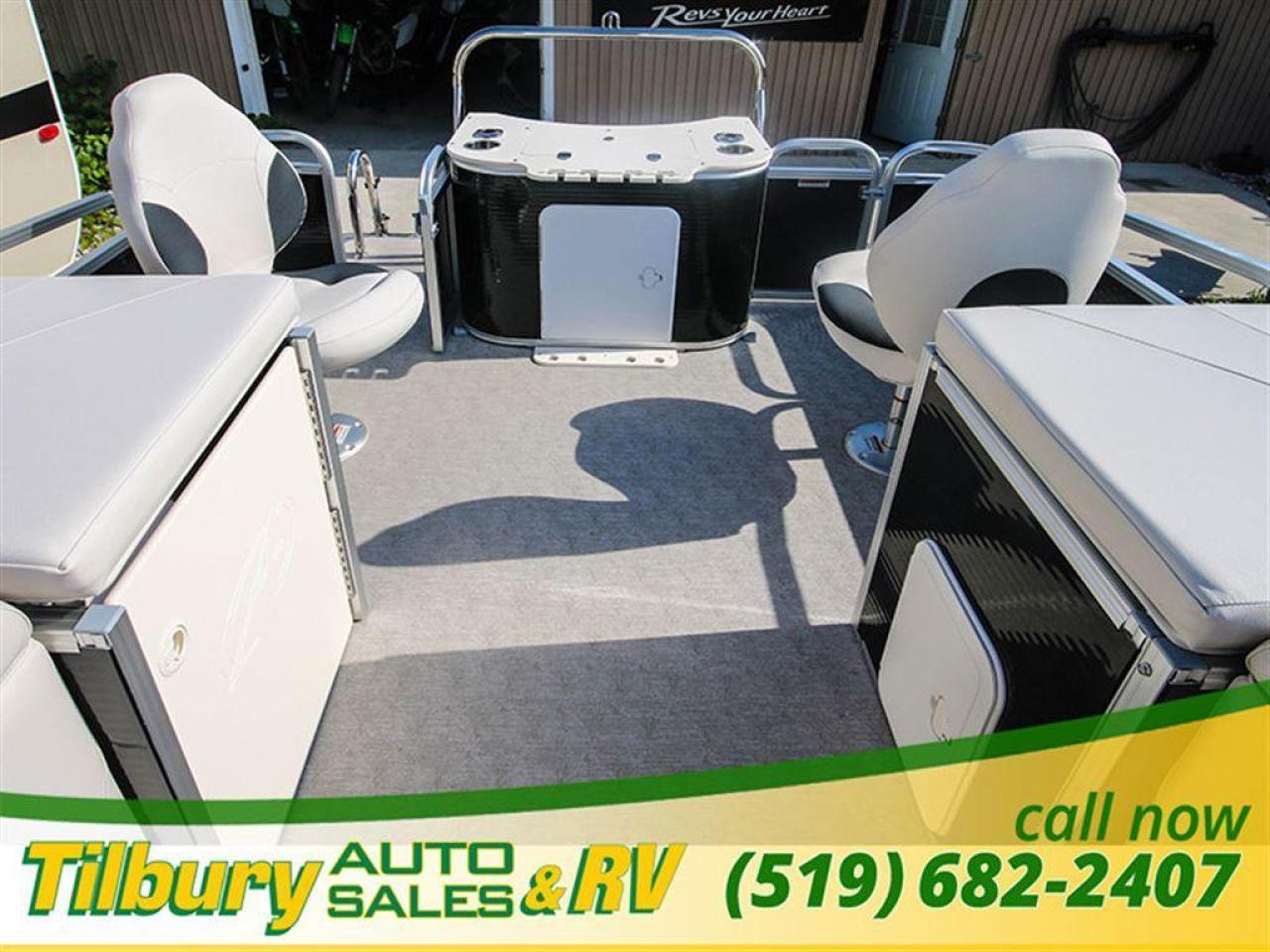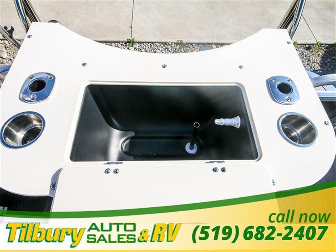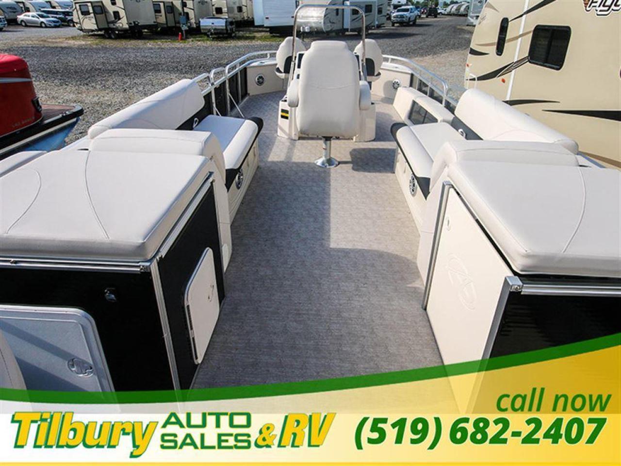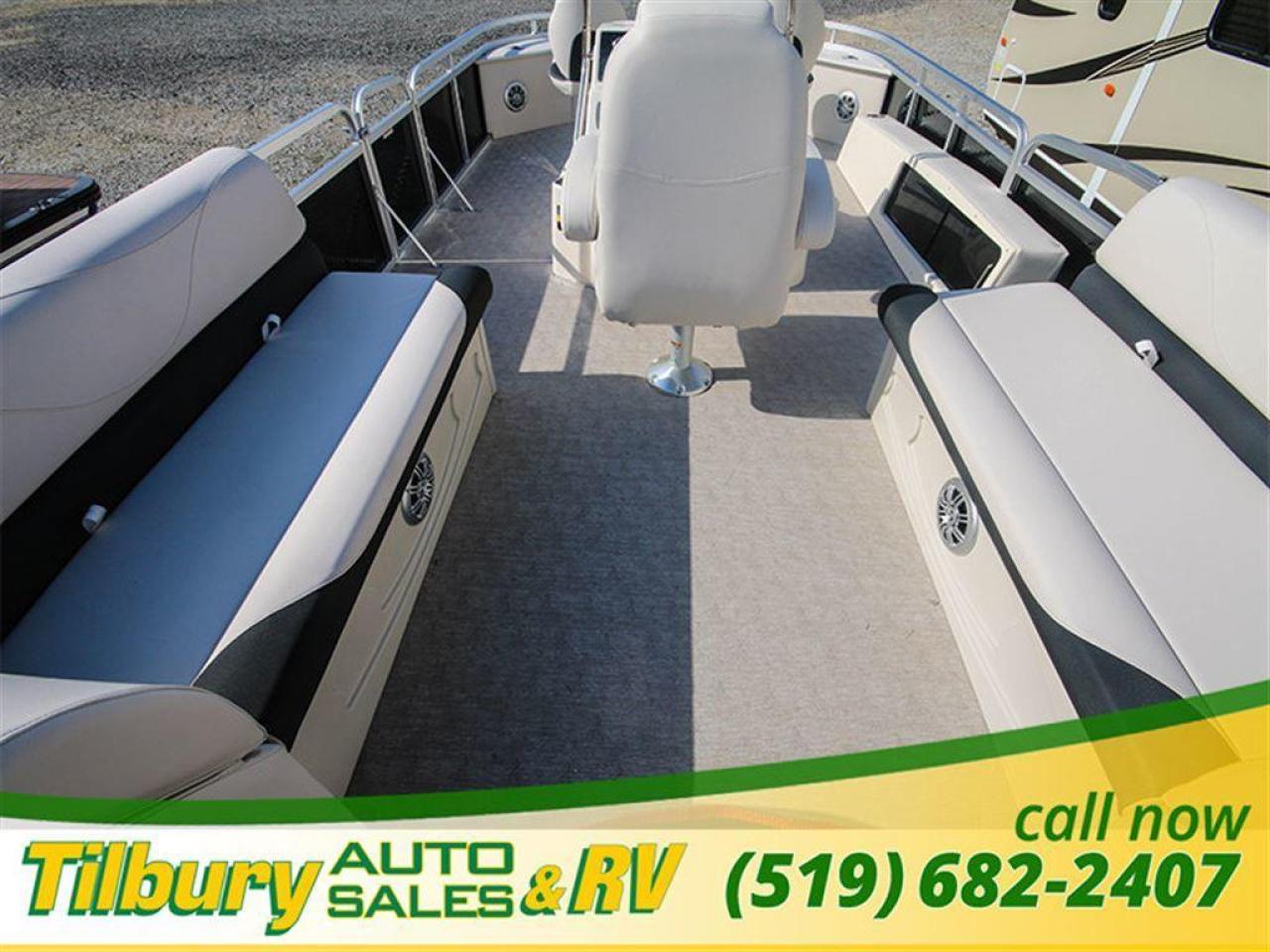 GS Fish offers a great value in a roomy, well-built fishing pontoon. With a full 8 1/2' width, it has loads of room for fighting fish. 25x25 center tube Nose Cone Side Keels **Canvas Features** Black Canvas Seat Covers **Chair Features** 4 Fishing Chairs on pedestals 1 low back reclining commander chair **Dash/Electronics Features** Garmin Striker 5DV POLK PA4ASMK 4MILSP6502 Speakers Dual battery management system Promo Long Harness 129129 **Helm Stand Features** Center fiberglass helmstand Courtesy light Center console panel 12V power plug Yamaha Prerig Yamaha trim gauge Voltmeter Fuel gauge Windshield Burano steering wheel **Steering Features** Baystar tilt steering Power assist steering **Deck Features** Buckskin brushstroke on full deck heavy duty rub rail with rubber bumper polished corner caps 4 pull up cleats predrill transom extended deck **Furniture Features** privacy station door(s) 1 curved smoked glass table with base sink stainless cup holders suspension seating white cladding **Lighting Features** underwater lights lights under rub rail **Misc Features** fire extinguisher starboard rod box rear entry ladder grill, pedestal mounted livewell in bench livewell in rear washdown system **Motor Options** Trolling motor plug Yamaha water separator **Performance Features** Aluminum under-sheeting 4 HPP finns LSZ/LTZ/GS/GT Performance Package **Pontoon Features** Extra pump bracket 2016 Center tube construction 25 inch center tube system 38 gallon fuel tank side keels full riser upgrade **Top Features** 8.5x10 square frame SST top connectors **Wall Features** Black wall skins half front gate chrome dock assy mirror chrome logos **Watersports Feature** Tow Bar While every reasonable effort is made to ensure the accuracy of this data, we are not responsible for any errors or omissions contained on these pages. Please verify any information in question with a dealership sales representative. Please call for further details. While every reasonable effort is made to ensure the accuracy of this data, we are not responsible for any errors or omissions contained on these pages. Please verify any information in question with a dealership sales representative. Serving, Windsor, Essex, Tilbury, Chatham, Blenheim, Rodney, St. Mary's, St. Thomas, Leamington, Harrow, Amherstburg, Kingsville, Wheatley, Belle River, Lakeshore, Wallaceburg, Sarnia,London, Lambton, Lambton County, Lambeth, Essex County, Middlesex, Middlesex County, Rodney, Dresden, Thamesville, Lasalle, Watford, Ailsa Craig, Glencoe, Alvinston, Parkhill, Strathroy, Mt.Brydges, West Lorne, Dutton, Aylmer * Prices in Ontario, include OMVIC/AMVIC fee (where applicable), dealer administration and other retailer charges and exclude taxes, license, insurance, plus HST*