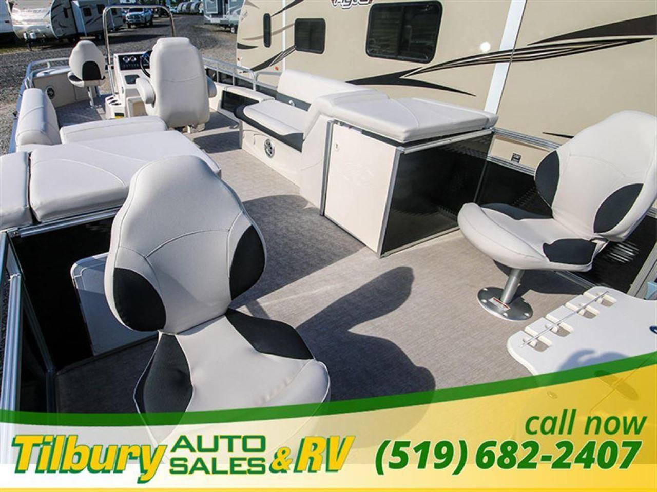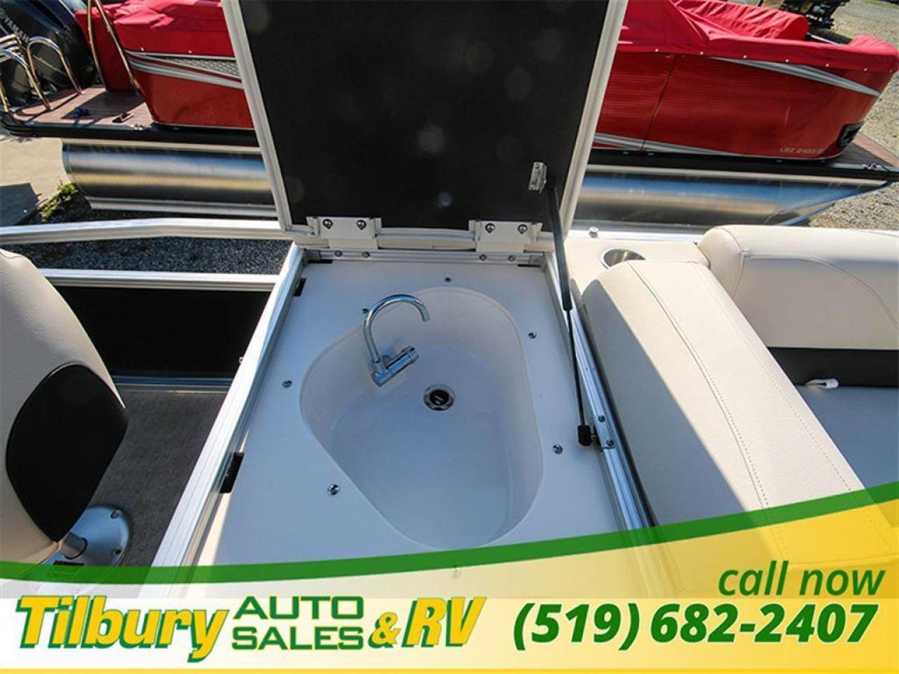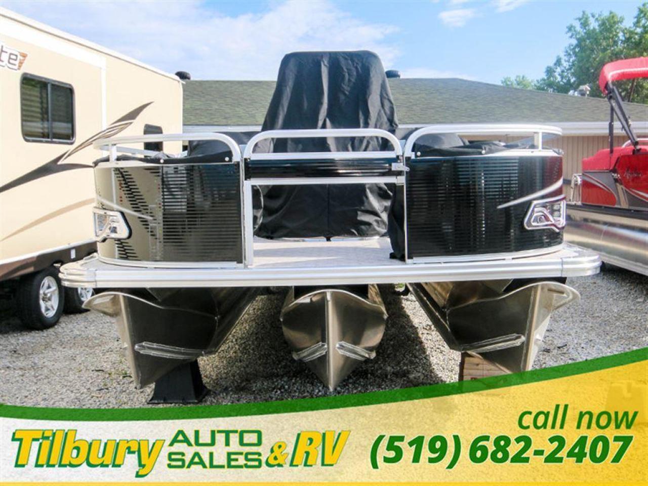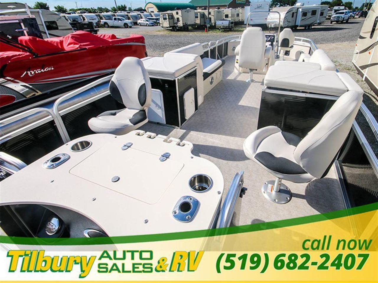 GS Fish offers a great value in a roomy, well-built fishing pontoon. With a full 8 1/2' width, it has loads of room for fighting fish. 25x25 center tube Nose Cone Side Keels **Canvas Features** Black Canvas Seat Covers **Chair Features** 4 Fishing Chairs on pedestals 1 low back reclining commander chair **Dash/Electronics Features** Garmin Striker 5DV POLK PA4ASMK 4MILSP6502 Speakers Dual battery management system Promo Long Harness 129129 **Helm Stand Features** Center fiberglass helmstand Courtesy light Center console panel 12V power plug Yamaha Prerig Yamaha trim gauge Voltmeter Fuel gauge Windshield Burano steering wheel **Steering Features** Baystar tilt steering Power assist steering **Deck Features** Buckskin brushstroke on full deck heavy duty rub rail with rubber bumper polished corner caps 4 pull up cleats predrill transom extended deck **Furniture Features** privacy station door(s) 1 curved smoked glass table with base sink stainless cup holders suspension seating white cladding **Lighting Features** underwater lights lights under rub rail **Misc Features** fire extinguisher starboard rod box rear entry ladder grill, pedestal mounted livewell in bench livewell in rear washdown system **Motor Options** Trolling motor plug Yamaha water separator **Performance Features** Aluminum under-sheeting 4 HPP finns LSZ/LTZ/GS/GT Performance Package **Pontoon Features** Extra pump bracket 2016 Center tube construction 25 inch center tube system 38 gallon fuel tank side keels full riser upgrade **Top Features** 8.5x10 square frame SST top connectors **Wall Features** Black wall skins half front gate chrome dock assy mirror chrome logos **Watersports Feature** Tow Bar While every reasonable effort is made to ensure the accuracy of this data, we are not responsible for any errors or omissions contained on these pages. Please verify any information in question with a dealership sales representative. Please call for further details. While every reasonable effort is made to ensure the accuracy of this data, we are not responsible for any errors or omissions contained on these pages. Please verify any information in question with a dealership sales representative. Serving, Windsor, Essex, Tilbury, Chatham, Blenheim, Rodney, St. Mary's, St. Thomas, Leamington, Harrow, Amherstburg, Kingsville, Wheatley, Belle River, Lakeshore, Wallaceburg, Sarnia,London, Lambton, Lambton County, Lambeth, Essex County, Middlesex, Middlesex County, Rodney, Dresden, Thamesville, Lasalle, Watford, Ailsa Craig, Glencoe, Alvinston, Parkhill, Strathroy, Mt.Brydges, West Lorne, Dutton, Aylmer * Prices in Ontario, include OMVIC/AMVIC fee (where applicable), dealer administration and other retailer charges and exclude taxes, license, insurance, plus HST*