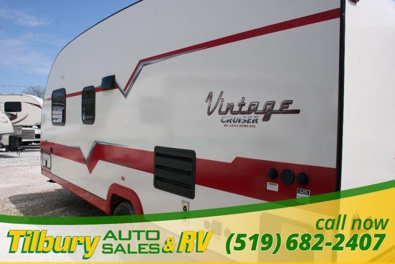 The Fun and Style of the 1950's, with the Technology of the 21st Century The era of the 1950's represented a simpler, less-stressful way of life, and we've recaptured it in the new Vintage Cruiser. - Plus, we've incorporated all of the latest technology, materials, and features of the 21st Century. This 2017 Gulf Stream Vintage Cruiser Features crimson and cream interior with wood plank flooring throughout. The kitchen features flat cabinet doors and cream colored countertop. It also iincludes 3 burner range with oven, microwave and 6 CU foot fridge.