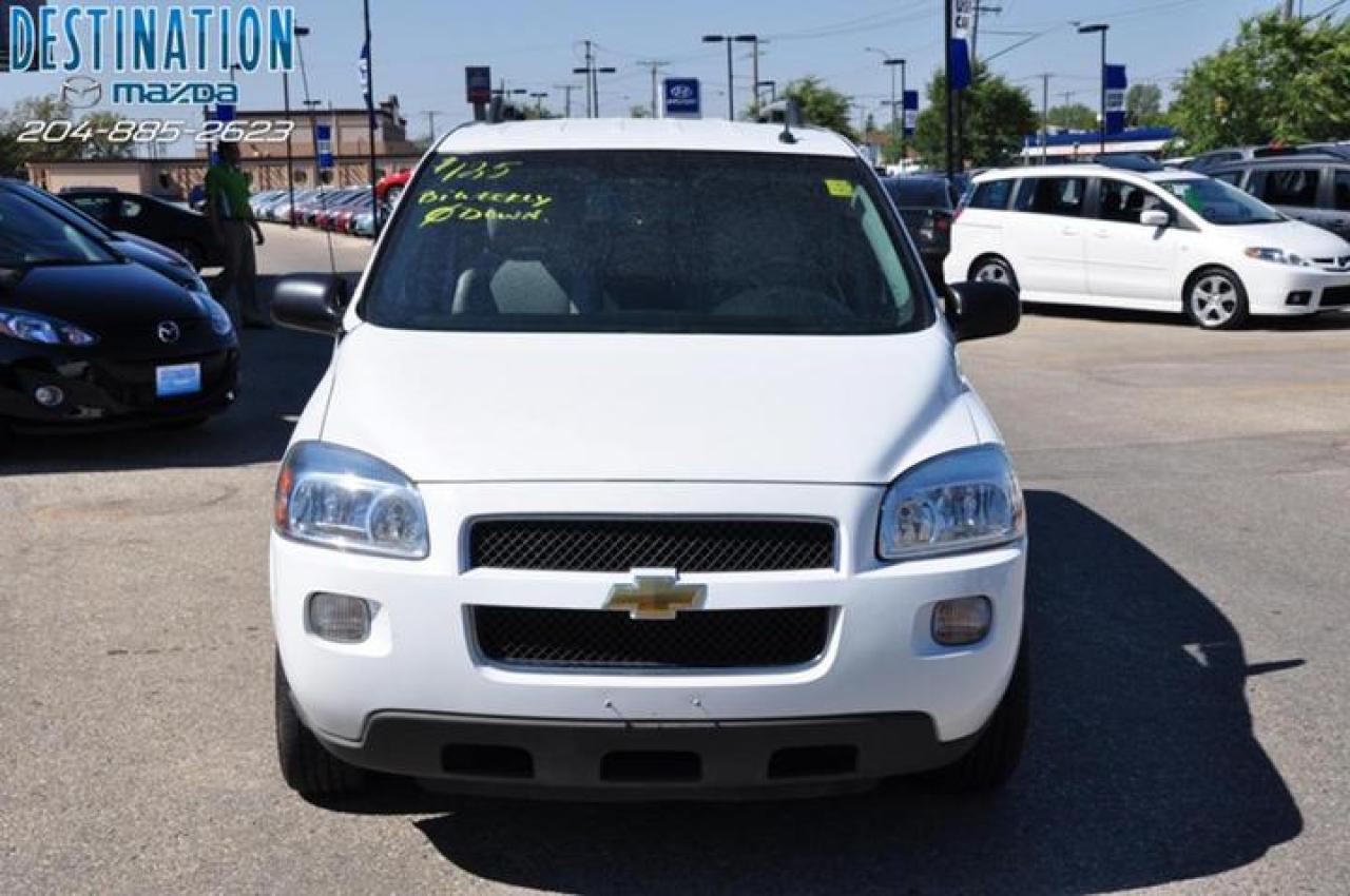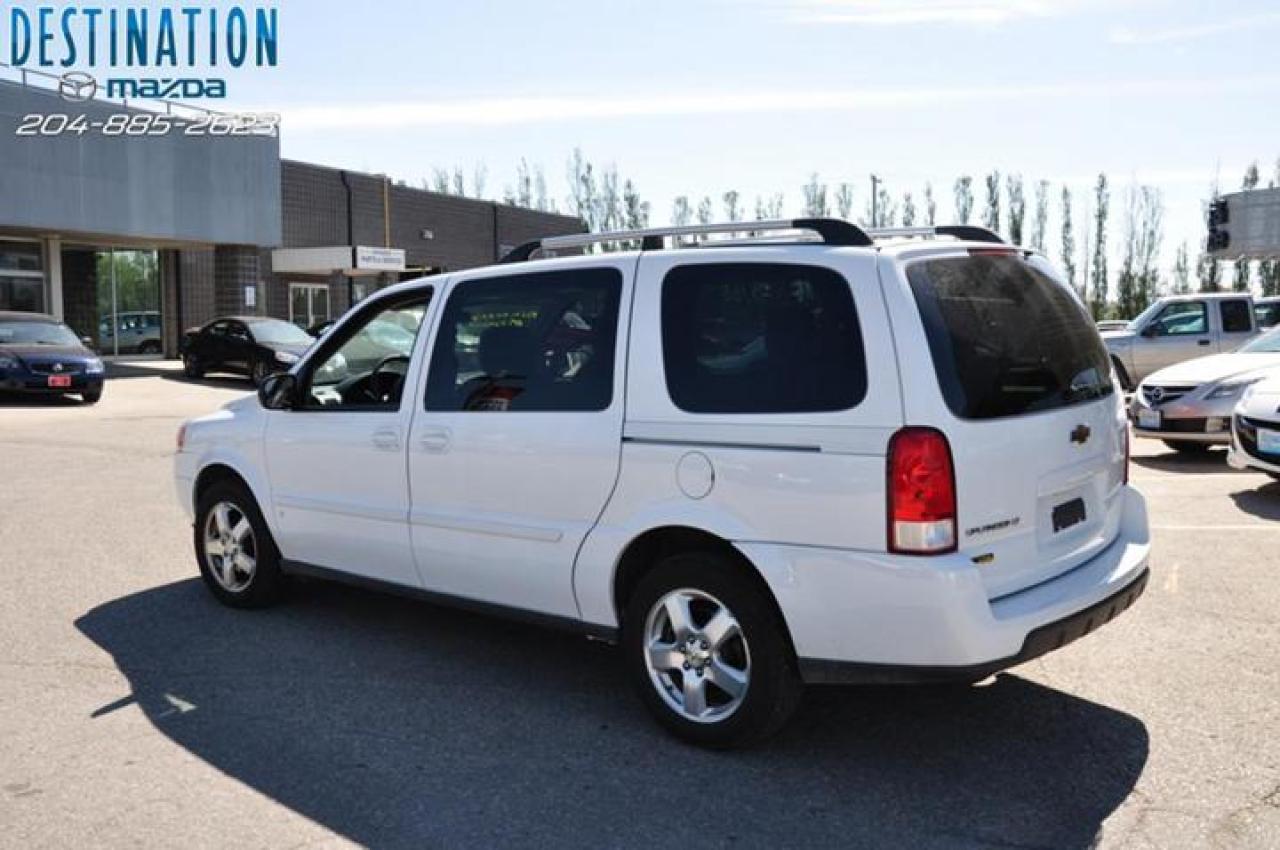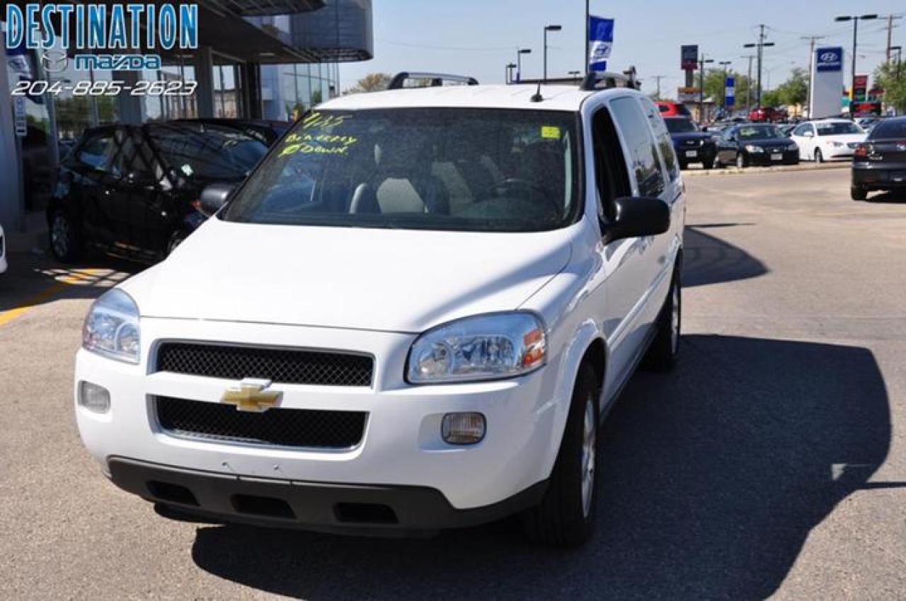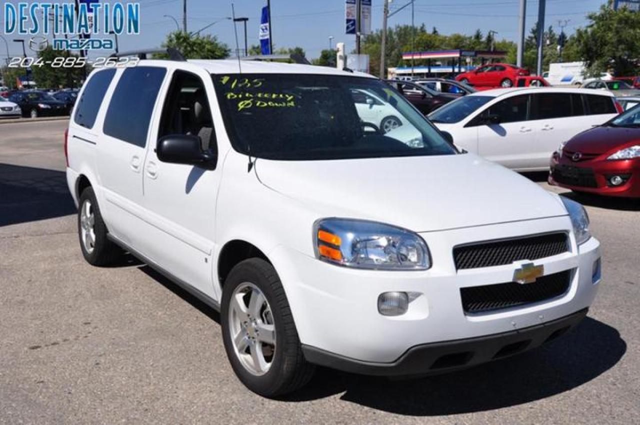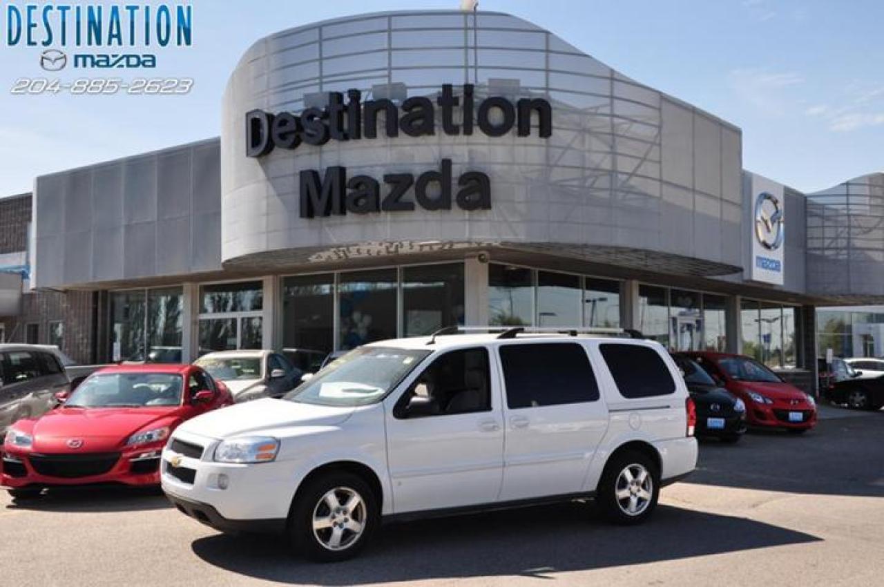 This vehicle is at Destination Mazda so call 1-888-790-7530 or visit us at 3690 Portage Ave! 2008 Chevy Unlander EXT. Quad seats with rear bench, DVD player for the kids and CD for mom and dad. Loaded and ready for the family trip. Beautiful bright white with silver sand interior. Nice nice van and ready to go. The perfect purchase experience stars when you call Destination Mazda