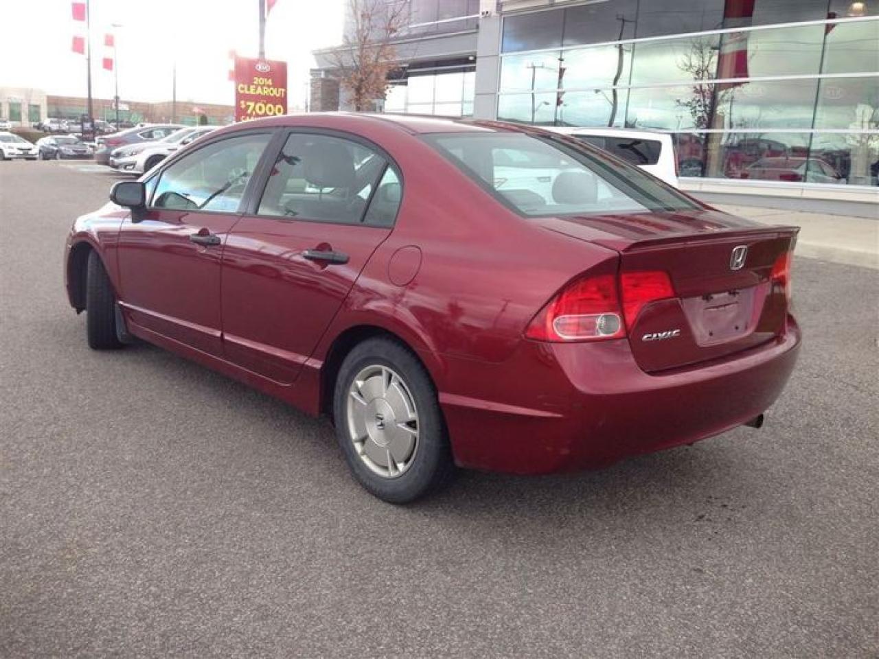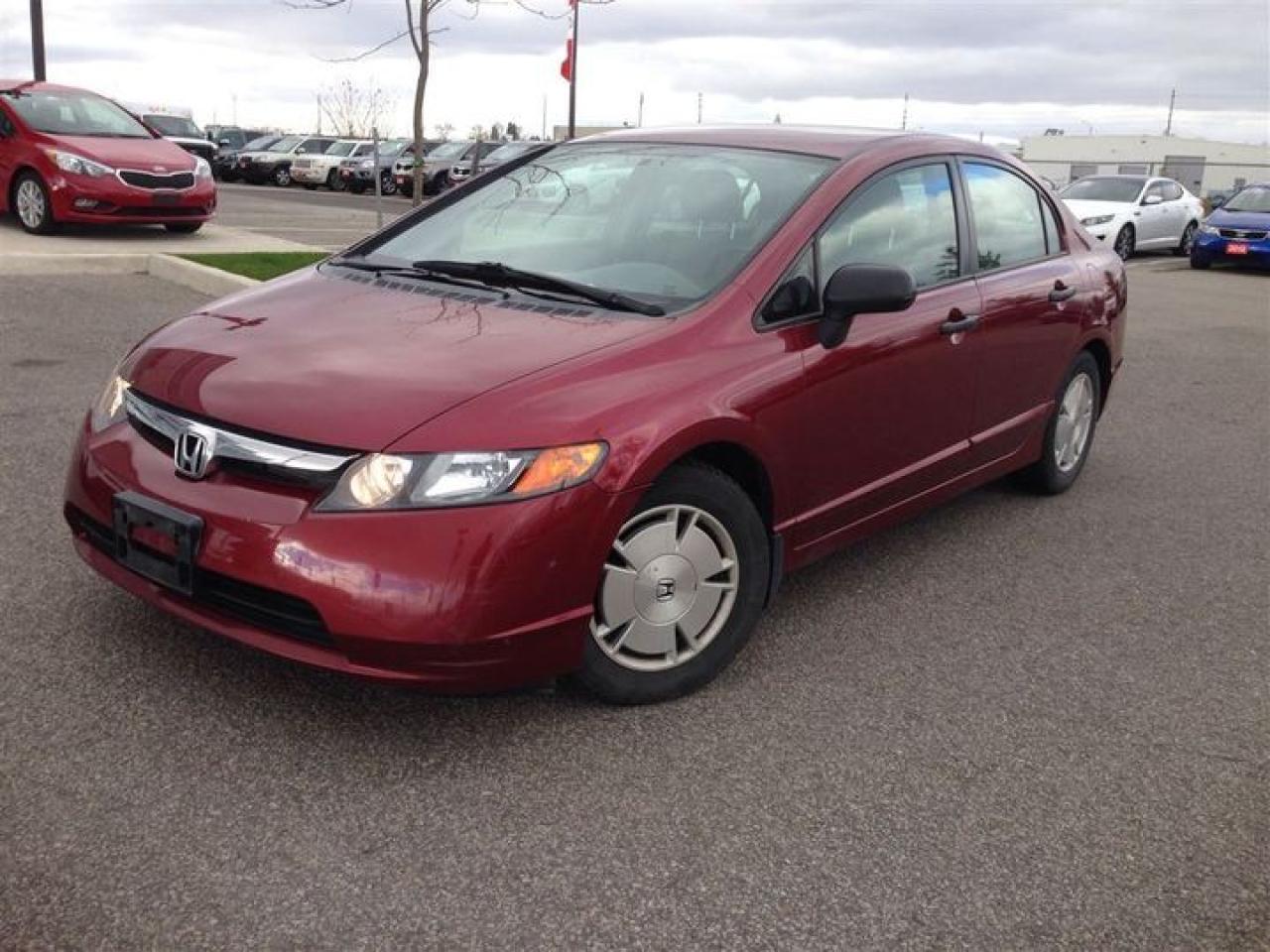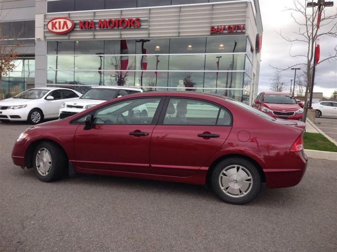AFFORDABLE AND RELIABLE ! This 2008 Honda Civic DX-G is a local trade In and has been reconditioned and detailed for its new home. Equipped with a 5 speed manual transmission, power windows and locks, A/C , and remote entry this civic offers great fuel economy at an affordable price. At Bay City Kia the price you see is the price you pay, No hidden fees, No stories and No surprises, Just a reliable vehicle at the right price. Price is plus HST and license. Call Today to schedule a test drive at 705-739-8020
