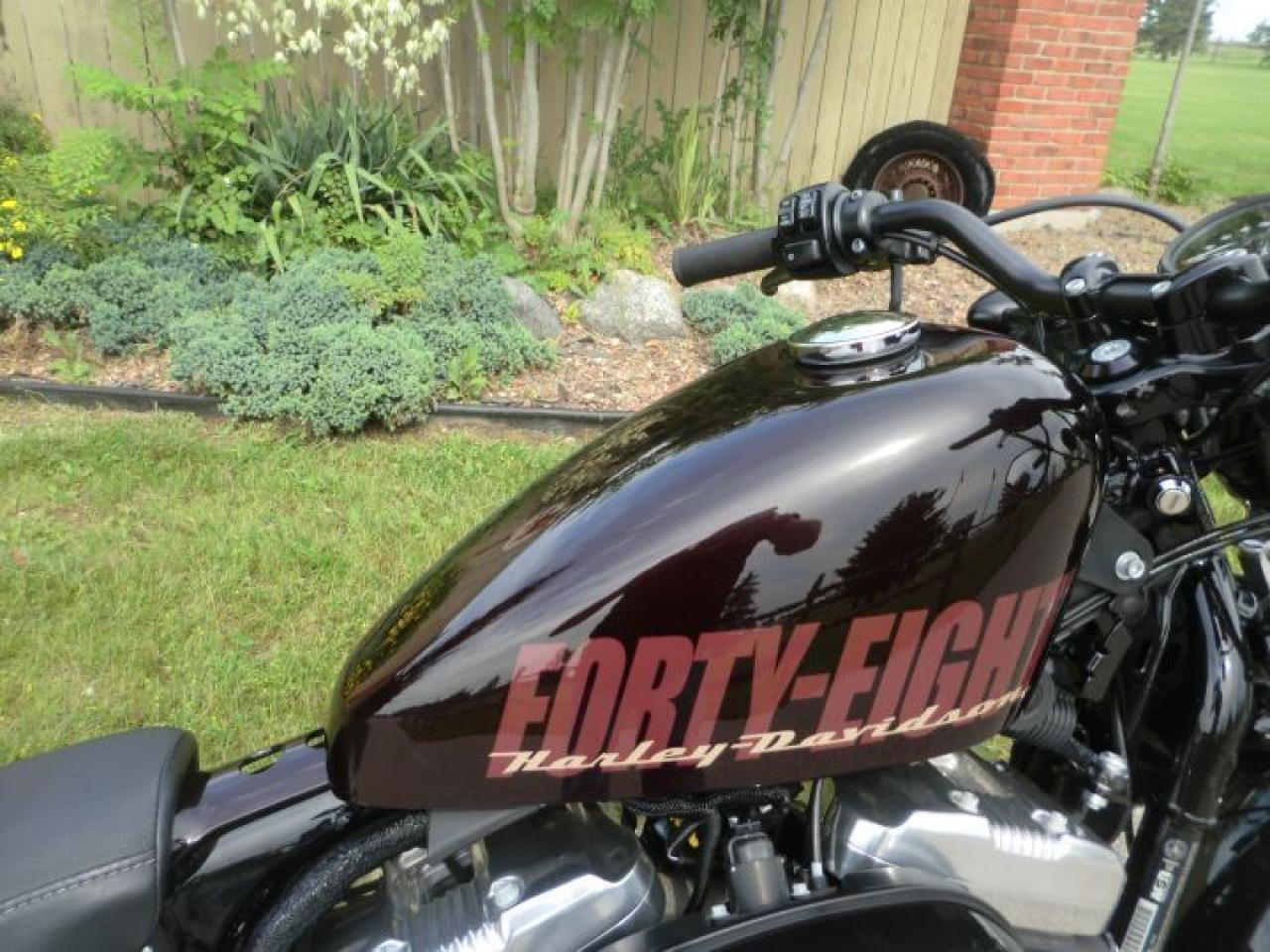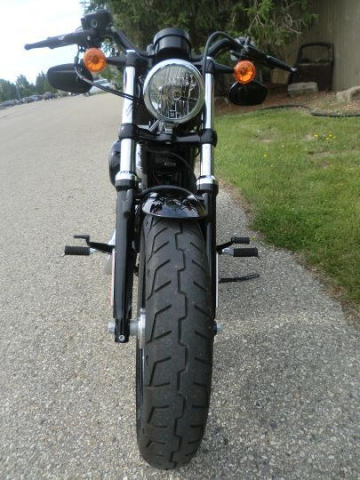 A beefy front end with a tall, fat MT90 tire gives the Forty-Eight® model a grounding visual equal to that of a 1950 Mercury. Custom rubber reminiscent of the lead-sled culture. A dominating presence up front that provides a smooth ride and solid handling.The slammed black drag-style handlebar with speedo and under mount mirrors adds to the stripped down minimal look of the 48.H-D LOW INTEREST RATES OUR PRICES FOLLOW THE OMVIC REGULATIONS OF FULL DISCLOSURE IN PRICING NO HIDDEN COSTS OR FEES PRICE SHOWN INCLUDES THE BASIC BIKE PRICE AND OPTIONS, TIRE FEE,OMVIC FEE,ADMINISTRATION