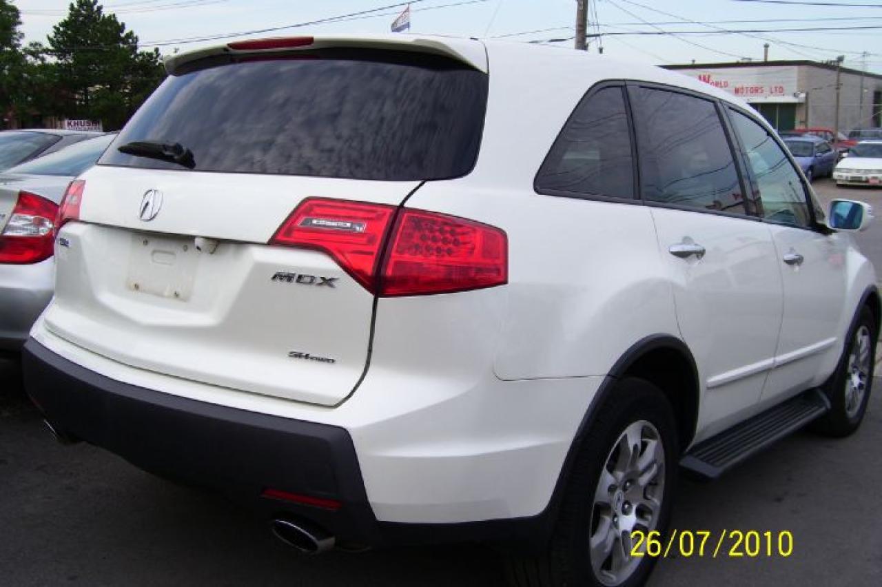 YEAR 07 MDX WITH TECH PACKAGE,DVD,BACK-UP CAMERA,DUAL EXHAUST,LEATHER,SUN-ROOF,RUNNING BOARDS,ALLOY WHEELS,BEAUTIFUL PEARL WHITE EXT,2 YEARS WARRANTY WITH SAFETY & EMMISON. HST NOT IN THE PRICE.
