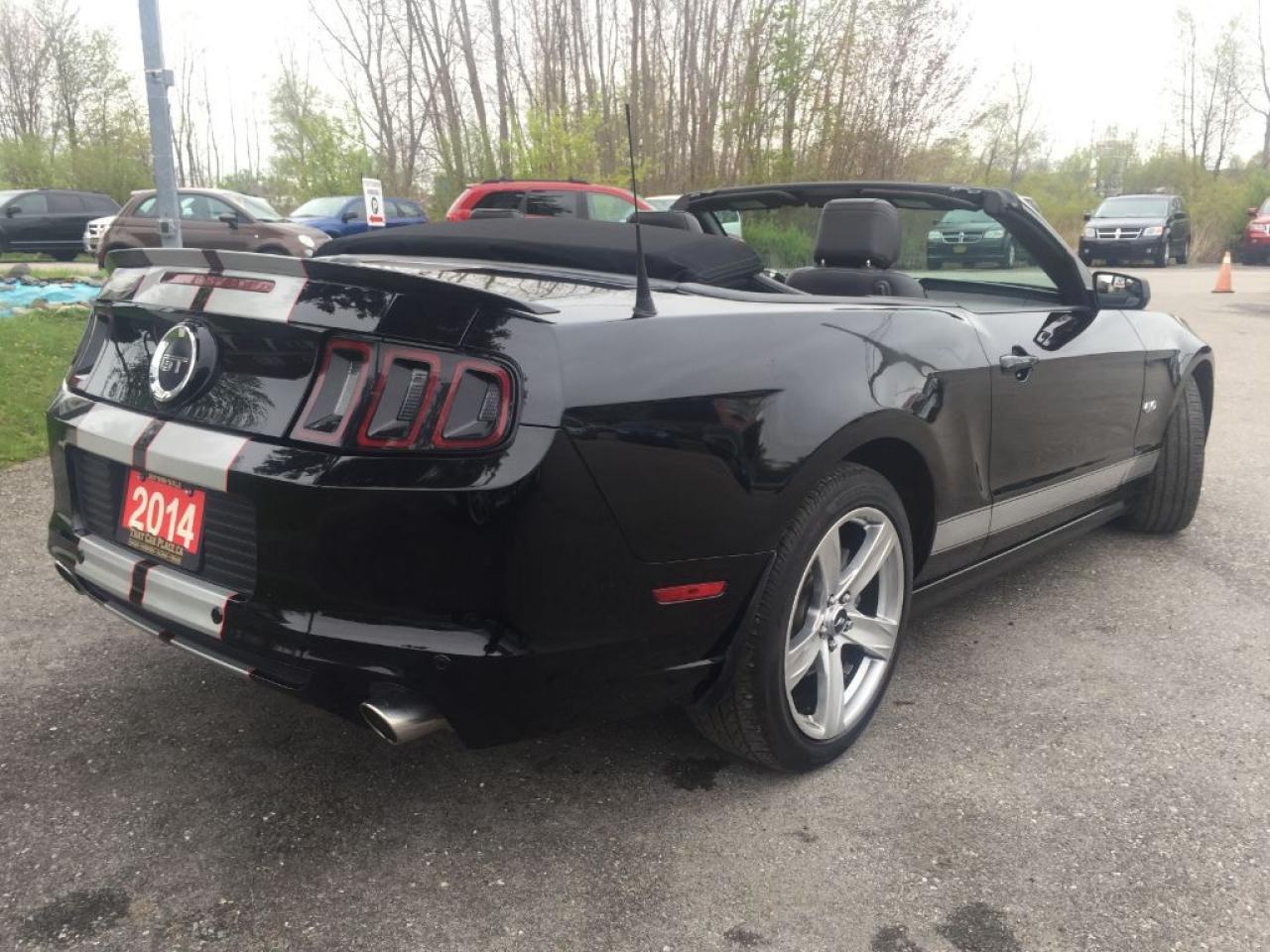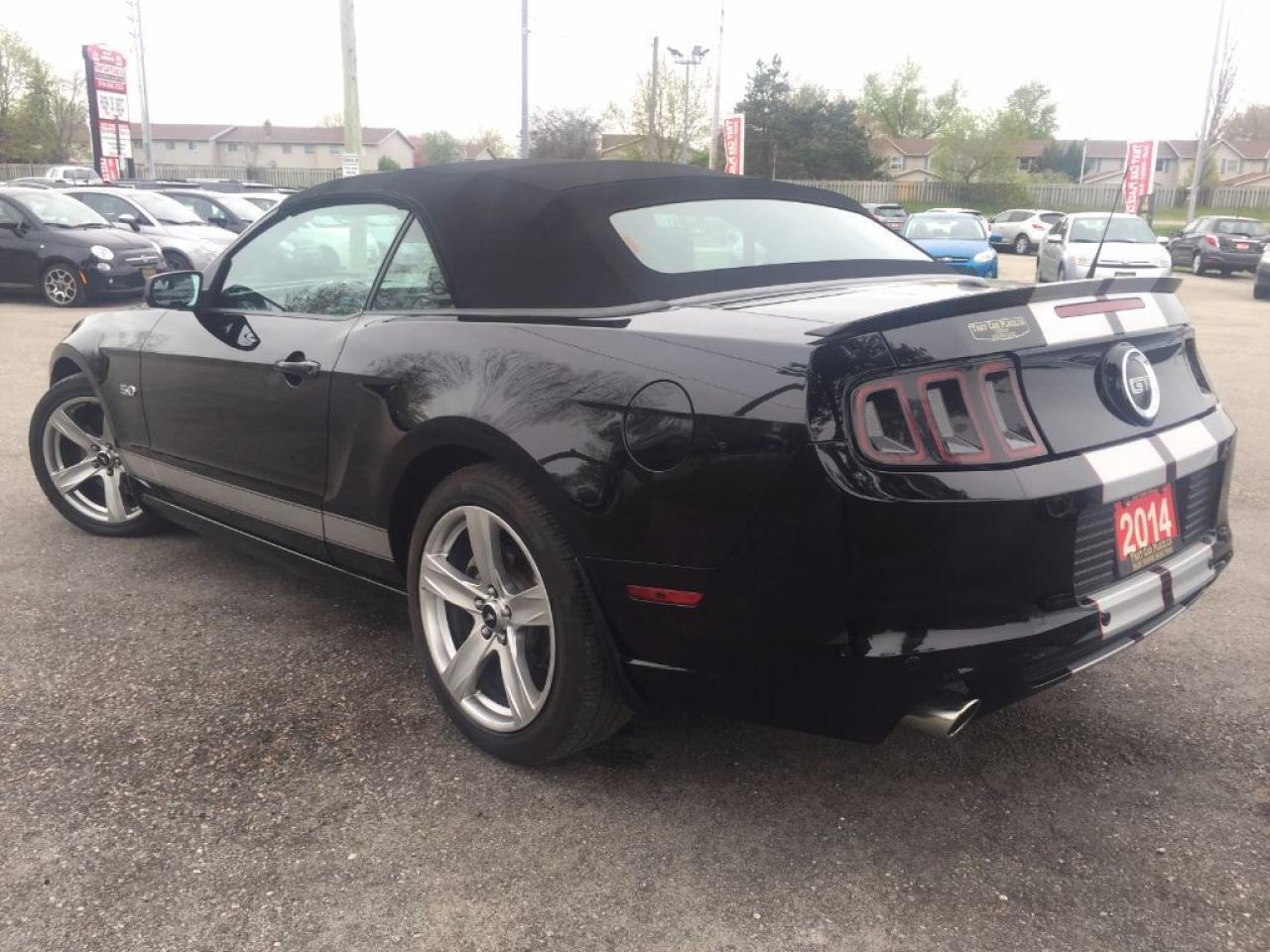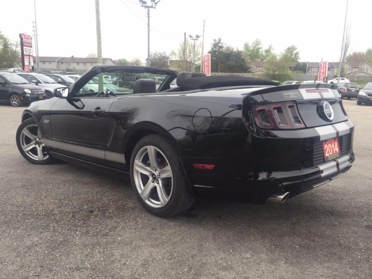 This 2014 Ford Mustang GT Convertible is one sweet V8. Comes with HEATED LEATHER SEATS, BLUETOOTH, Microsoft Sync, STRIPE PACKAGE, HID headlights, STEERING WHEEL AUDIO CONTROLS, AUX connectivity for your IPHONE/IPOD or ANDROID music playing device and much more. WON'T LAST LONG!!! This vehicle was previously used as a daily rental. Call 1-519-686-7253 or Visit 443 Exeter Rd. That Car Place.