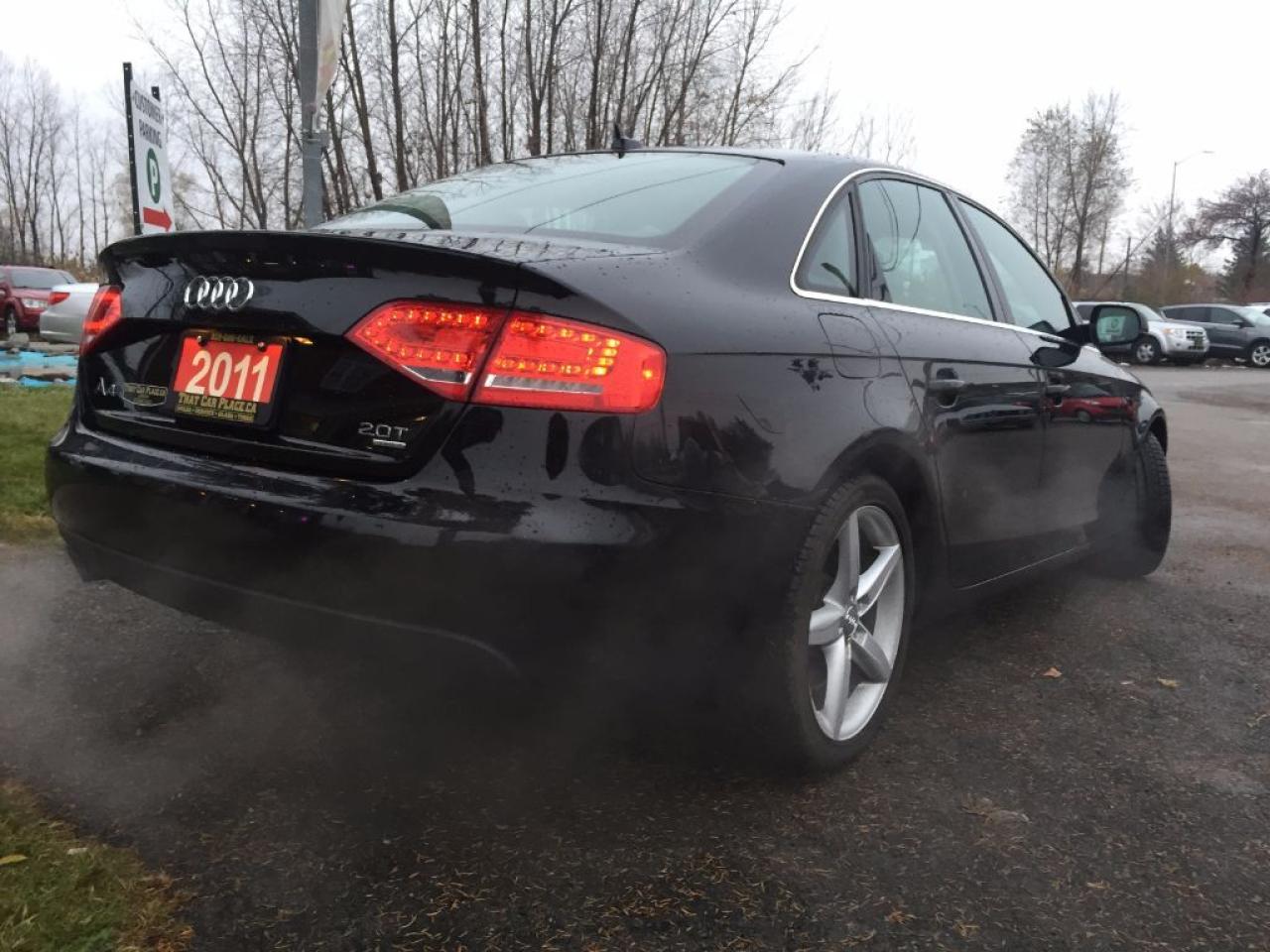 This Turbo Charged 2011 Audi A4 Quattro Premium is LOADED and comes with BLUETOOTH, HEATED FRONT LEATHER SEATS, SUNROOF, HID Lights, AUX/CD/MP3 connectivity for your IPOD/IPHONE or ANDROID music playing device. Call 1-519-686-7253 or Visit 443 Exeter Rd. That Car Place.Â