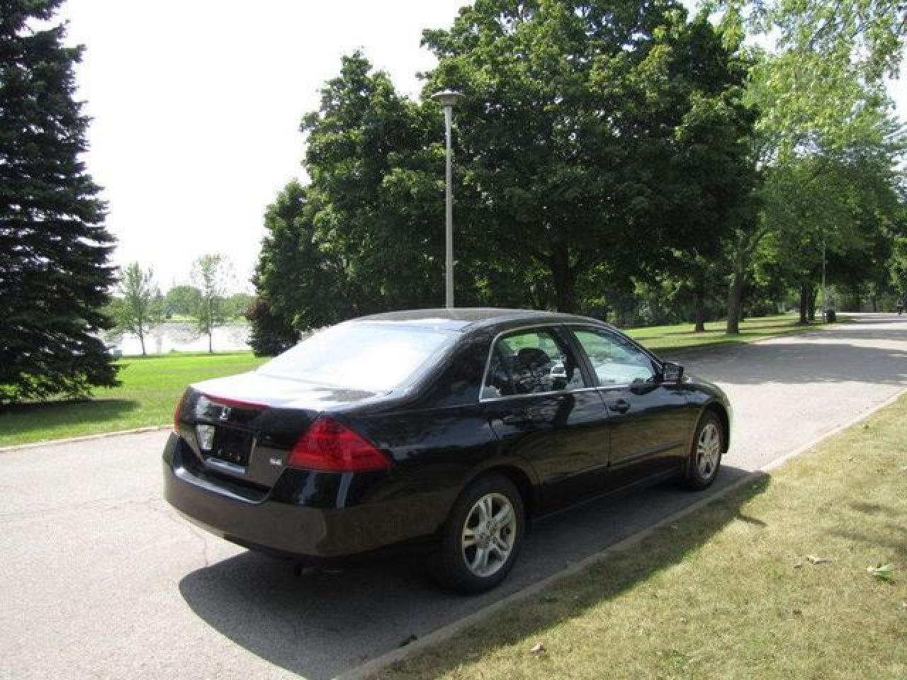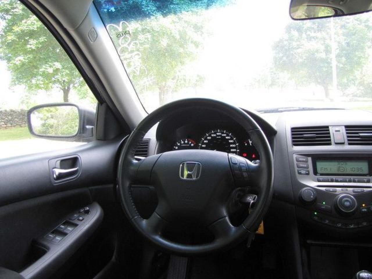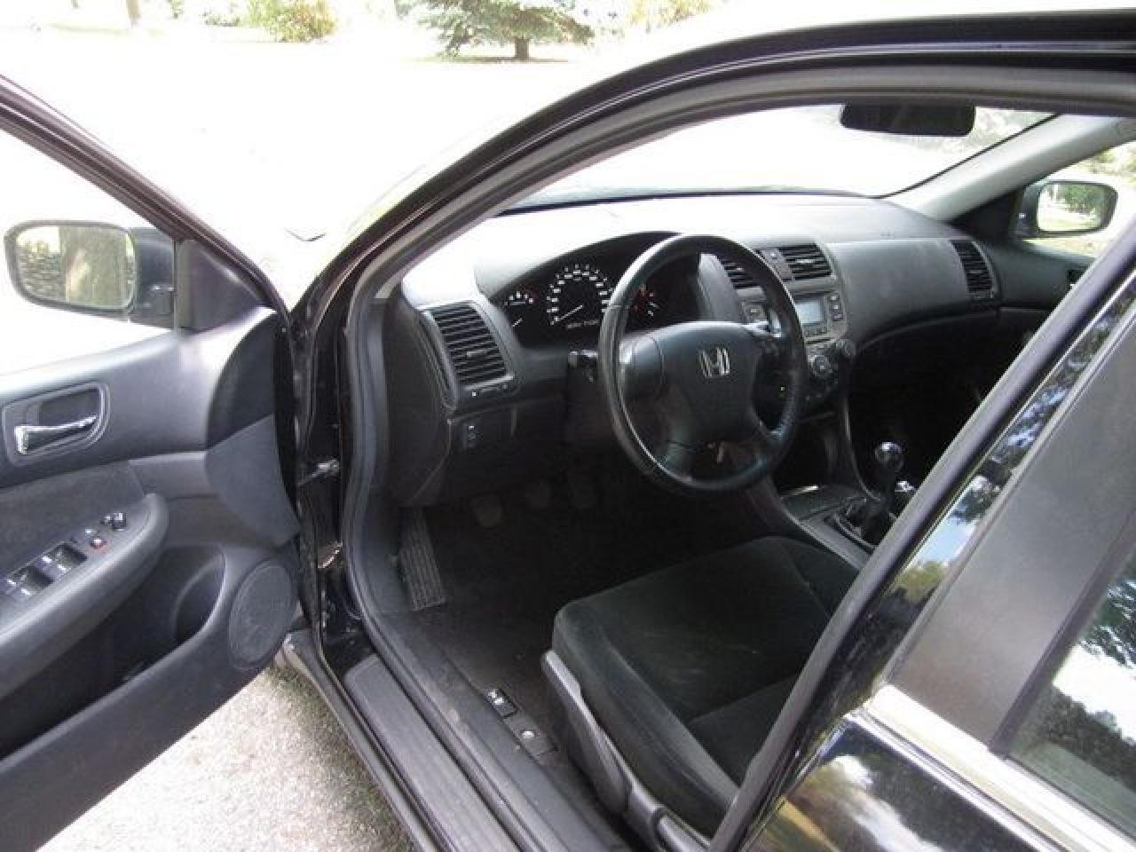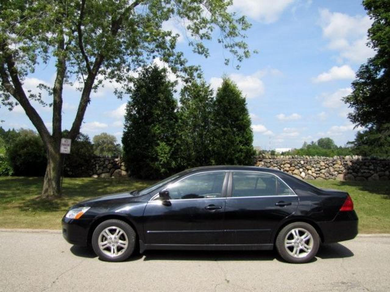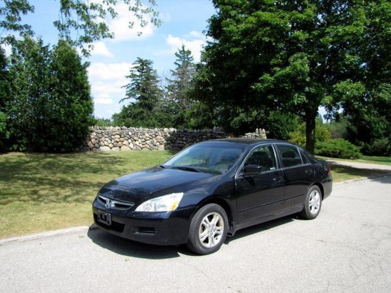 This 2006 Honda Accord 4dr SE SUNROOF!! 4 NEW TIRES!! HONDA LEASE RETN! Sedan features a 2.4L L4 PFI DOHC 16V 4 cyl Gasoline engine. It is equipped with a 5 Speed Manual transmission. The vehicle is Black with a Black Cloth interior. It is offered with the remaining factory warranty. Over 400 BETTER used cars in stock!! PLEASE CALL 1-866-348-8146 5.99% Financing + no payments up to 6 months available on approved credit!! Free Trial Exchange!! A+ Better Business Bureau rating!! Voted Guelph's Favourite dealer 2004-2009!! Since 1961. Taxes, licensing, and $5.00 OMVIC fee are extra. Call for details on our Free Trial Exchange! Thank you for considering Wilsons!!! Please call 1-866-348-8146. - This Honda is in Excellent overall exterior condition, Excellent overall interior condition, Cloth seats - Air Conditioning, Cruise Control, Power Steering, Power Windows, Power Door Locks, Power Mirrors, Clock, Tachometer, Digital Info Center, Tilt Steering Wheel, Telescoping Steering Wheel, Sunroof, Driver Airbag, Passenger Airbag, Keyless Entry, ABS Brakes, Rear Defogger, Intermittent Wipers, AM-FM, CD Player, Alloy Wheels, Cloth Interior Surface - Contact The Internet Department at 866-738-6045 or leads@markwilsonsbetterusedcarstc.dealer.com for more information. -