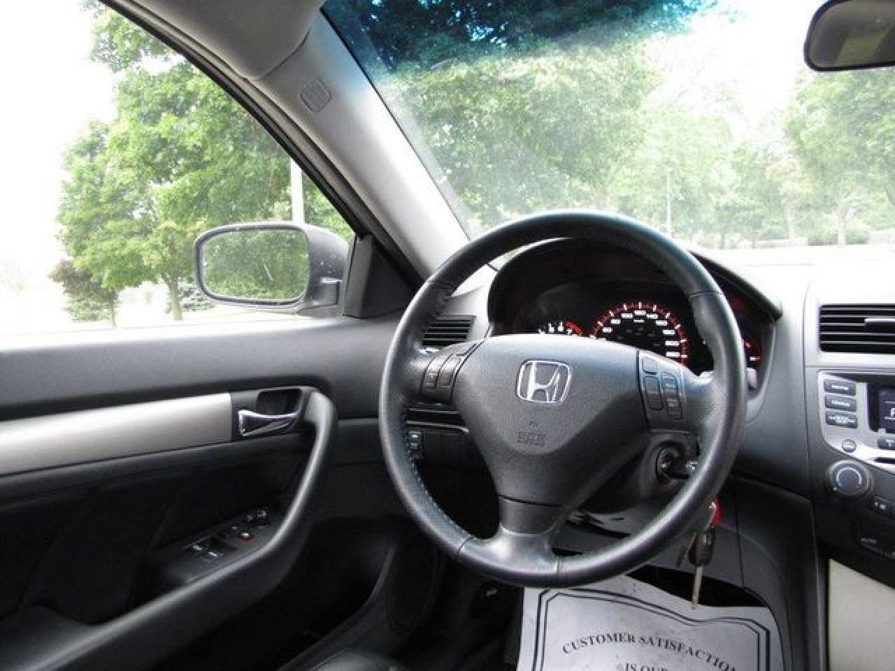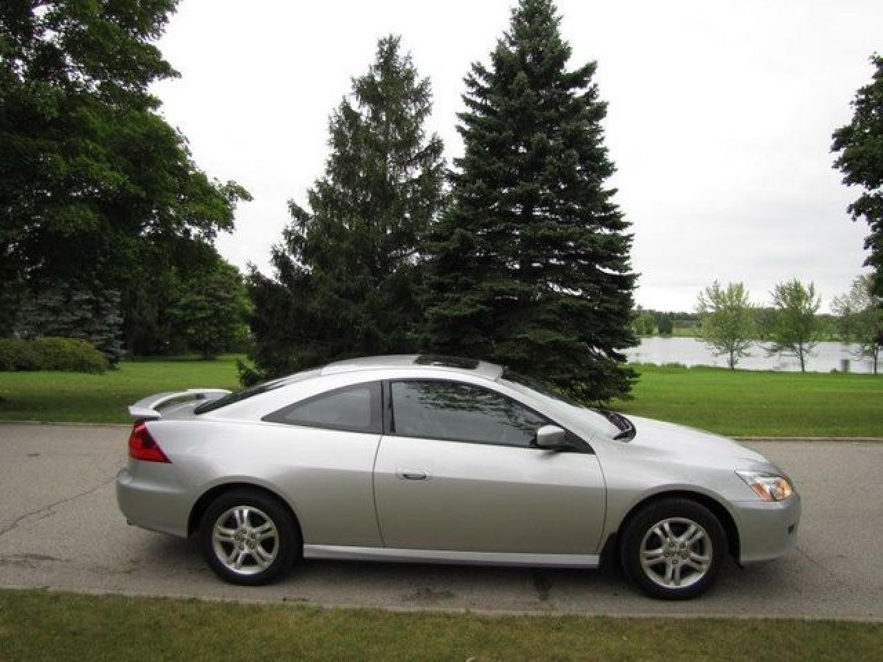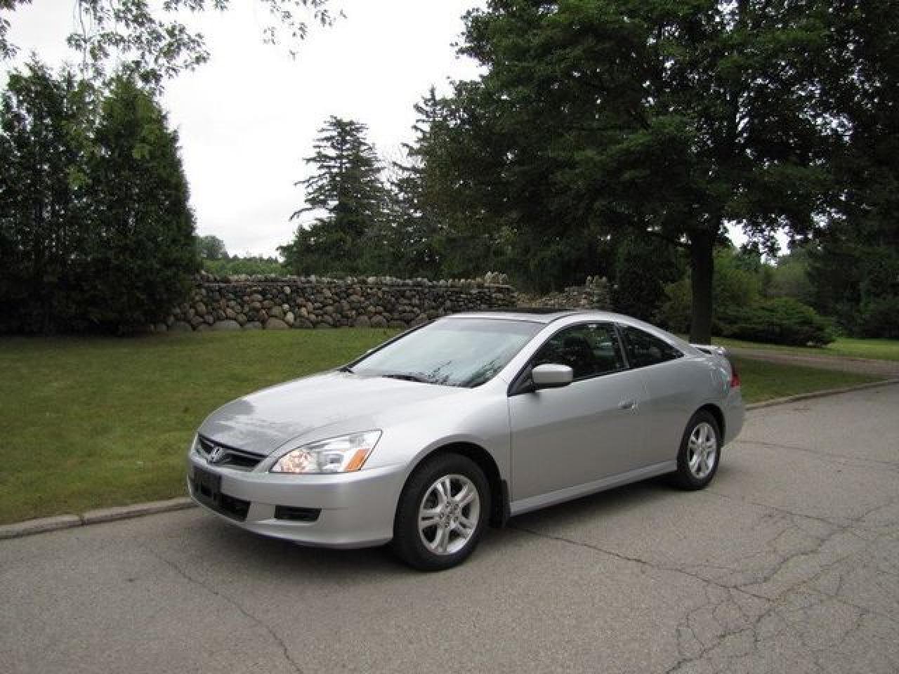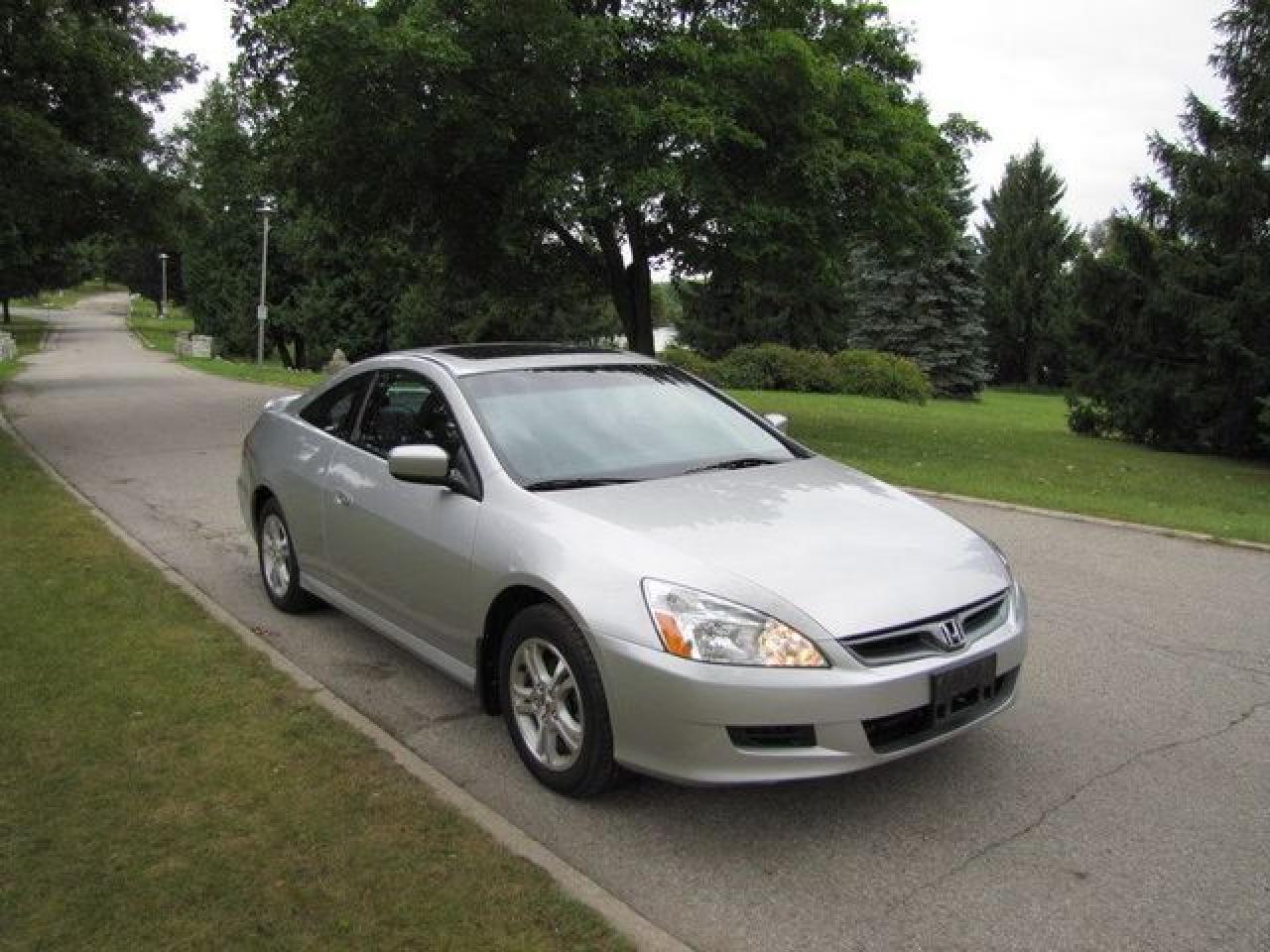 This 2006 Honda Accord 2dr EX-L LEATHER!! SUNROOF!! SPOILER!! Coupe features a 2.4L L4 MPI DOHC 16V 4 cyl Gasoline engine. It is equipped with a Automatic transmission. The vehicle is SILVER with a Black Leather interior. It is offered with the remaining factory warranty. Over 400 BETTER used cars in stock!! PLEASE CALL 1-866-348-8146 5.99% Financing + no payments up to 6 months available on approved credit!! Free Trial Exchange!! A+ Better Business Bureau rating!! Voted Guelph's Favourite dealer 2004-2009!! Since 1961. Taxes, licensing, and $5.00 OMVIC fee are extra. Call for details on our Free Trial Exchange! Thank you for considering Wilsons!!! Please call 1-866-348-8146. - This Honda is in Excellent overall exterior condition, Excellent overall interior condition, Leather seats - Air Conditioning, Cruise Control, Power Steering, Power Windows, Power Door Locks, Power Mirrors, Leather Steering Wheel, Power Drivers Seat, Heated Seat, Clock, Tachometer, Digital Info Center, Tilt Steering Wheel, Telescoping Steering Wheel, Steering Wheel Radio Controls, Sunroof, Driver Airbag, Passenger Airbag, Keyless Entry, ABS Brakes, Rear Defogger, Intermittent Wipers, AM-FM, CD Player, Alloy Wheels, Leather Interior Surface - Contact The Internet Department at 866-738-6045 or leads@markwilsonsbetterusedcarstc.dealer.com for more information. -
