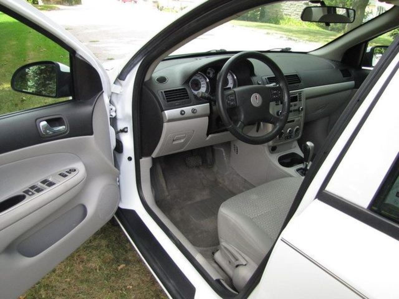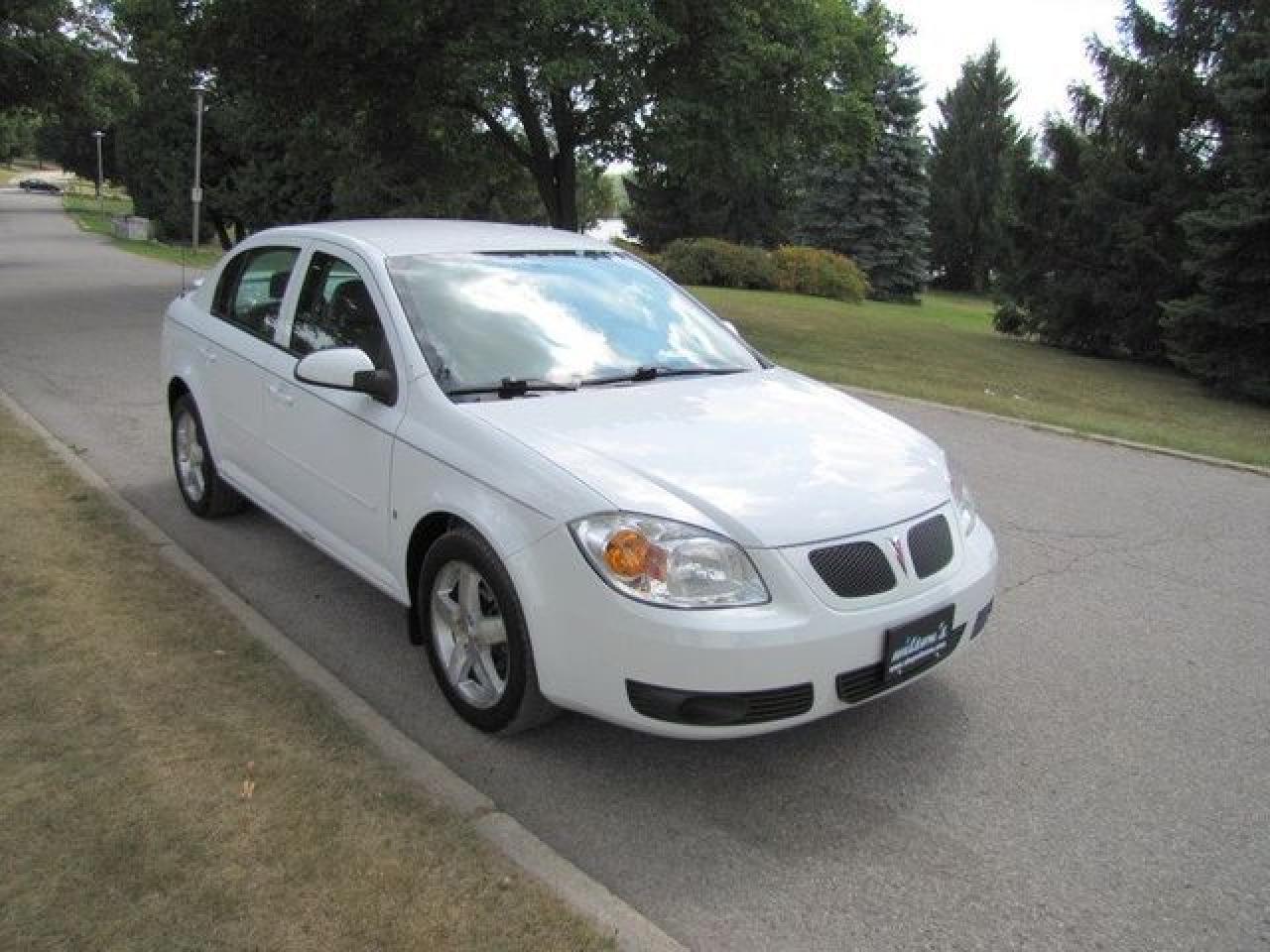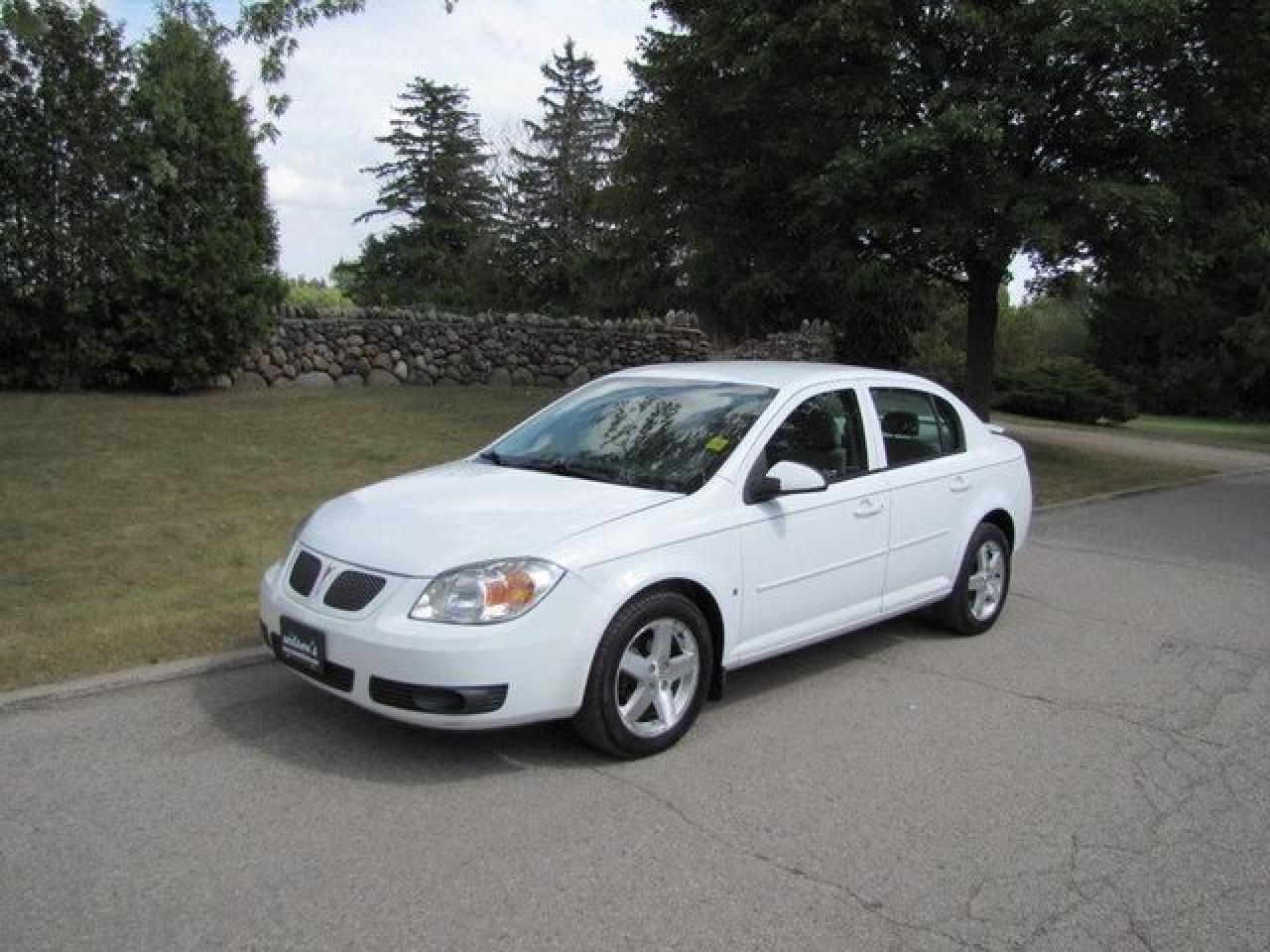 This 2006 Pontiac Pursuit 4dr ALLOYS!! SPOILER!! GM LEASE RETURN!! Sedan features a 2.2L L4 SFI 4cyl Gasoline engine. It is equipped with a Automatic transmission. The vehicle is White with a Grey interior. It is offered with the remaining factory warranty. Over 400 BETTER used cars in stock!! PLEASE CALL 1-866-348-8146 5.99% Financing + no payments up to 6 months available on approved credit!! Free Trial Exchange!! A+ Better Business Bureau rating!! Voted Guelph's Favourite dealer 2004-2009!! Since 1961. Taxes, licensing, and $5.00 OMVIC fee are extra. Call for details on our Free Trial Exchange! Thank you for considering Wilsons!!! Please call 1-866-348-8146. - This Pontiac is in Excellent overall exterior condition, Excellent overall interior condition, seats - Air Conditioning, Cruise Control, Power Steering, Power Door Locks, Clock, Tachometer, Tilt Steering Wheel, Driver Airbag, Passenger Airbag, Keyless Entry, Rear Defogger, Intermittent Wipers, AM-FM, CD Player, Wheels - Contact The Internet Department at 866-738-6045 or leads@markwilsonsbetterusedcarstc.dealer.com for more information. -