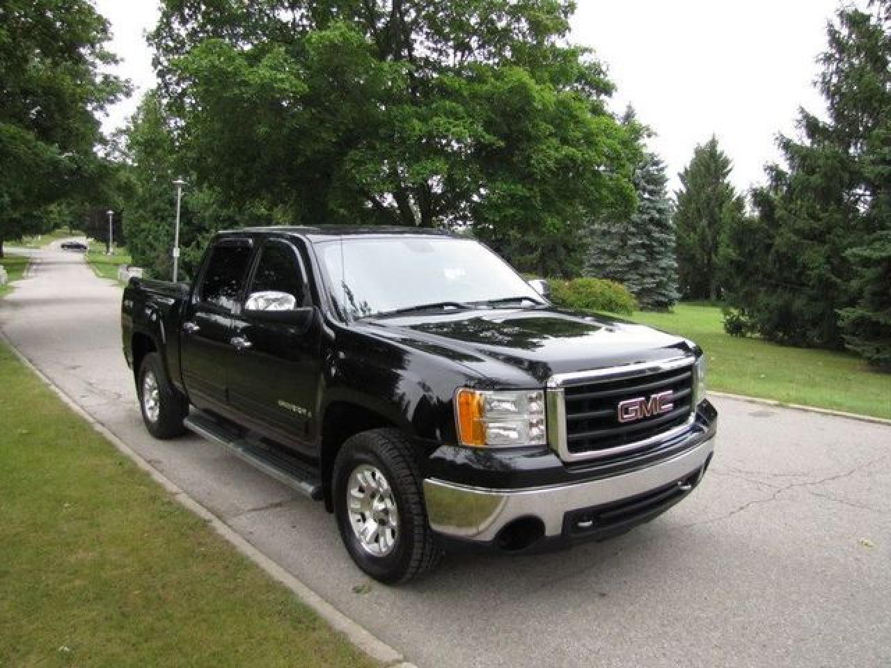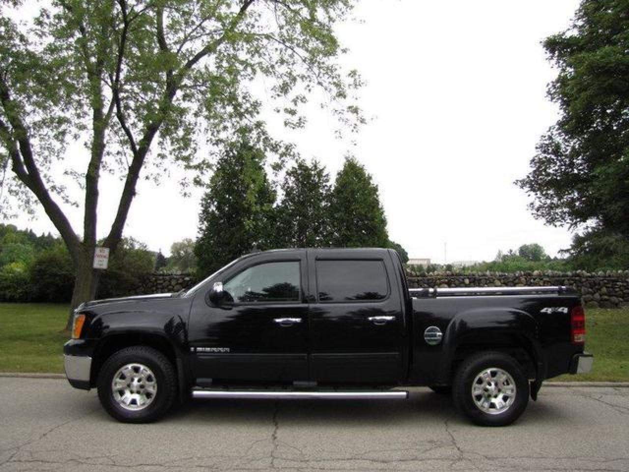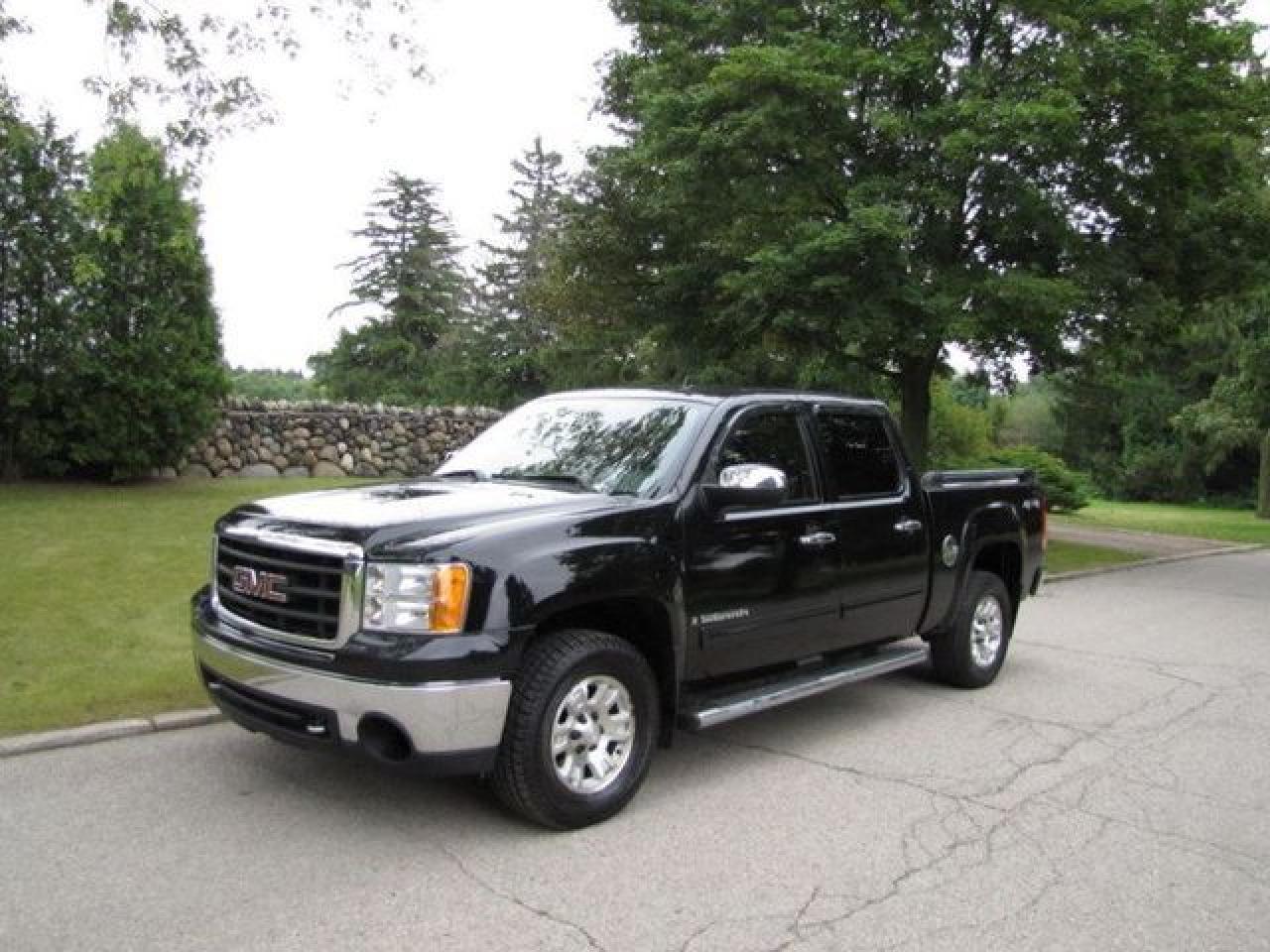 This 2007 GMC Sierra 1500 SLE 4 BRAND NEW YOKOHAMA TIRES!! GM LEASE RETURN!! 4x4 Truck features a 4.8L V8 SFI 8 cyl Gasoline engine. It is equipped with a Automatic transmission. The vehicle is Black with a Black Cloth interior. It is offered with the remaining factory warranty. Over 400 BETTER used cars in stock!! PLEASE CALL 1-866-348-8146 5.99% Financing + no payments up to 6 months available on approved credit!! Free Trial Exchange!! A+ Better Business Bureau rating!! Voted Guelph's Favourite dealer 2004-2009!! Since 1961. Taxes, licensing, and $5.00 OMVIC fee are extra. Call for details on our Free Trial Exchange! Thank you for considering Wilsons!!! Please call 1-866-348-8146. - This GMC is in Excellent overall exterior condition, Excellent overall interior condition, Cloth seats - Air Conditioning, Cruise Control, Power Steering, Power Windows, Power Door Locks, Power Mirrors, Leather Steering Wheel, Power Passenger Seat, Tow Package, Clock, Tachometer, Tilt Steering Wheel, Driver Airbag, Passenger Airbag, Keyless Entry, ABS Brakes, Traction Control, Intermittent Wipers, AM-FM, CD Player, Aluminum Wheels, Cloth Interior Surface, Four Wheel Drive, Aux. Audio Input - Contact The Internet Department at 866-738-6045 or leads@markwilsonsbetterusedcarstc.dealer.com for more information. -
