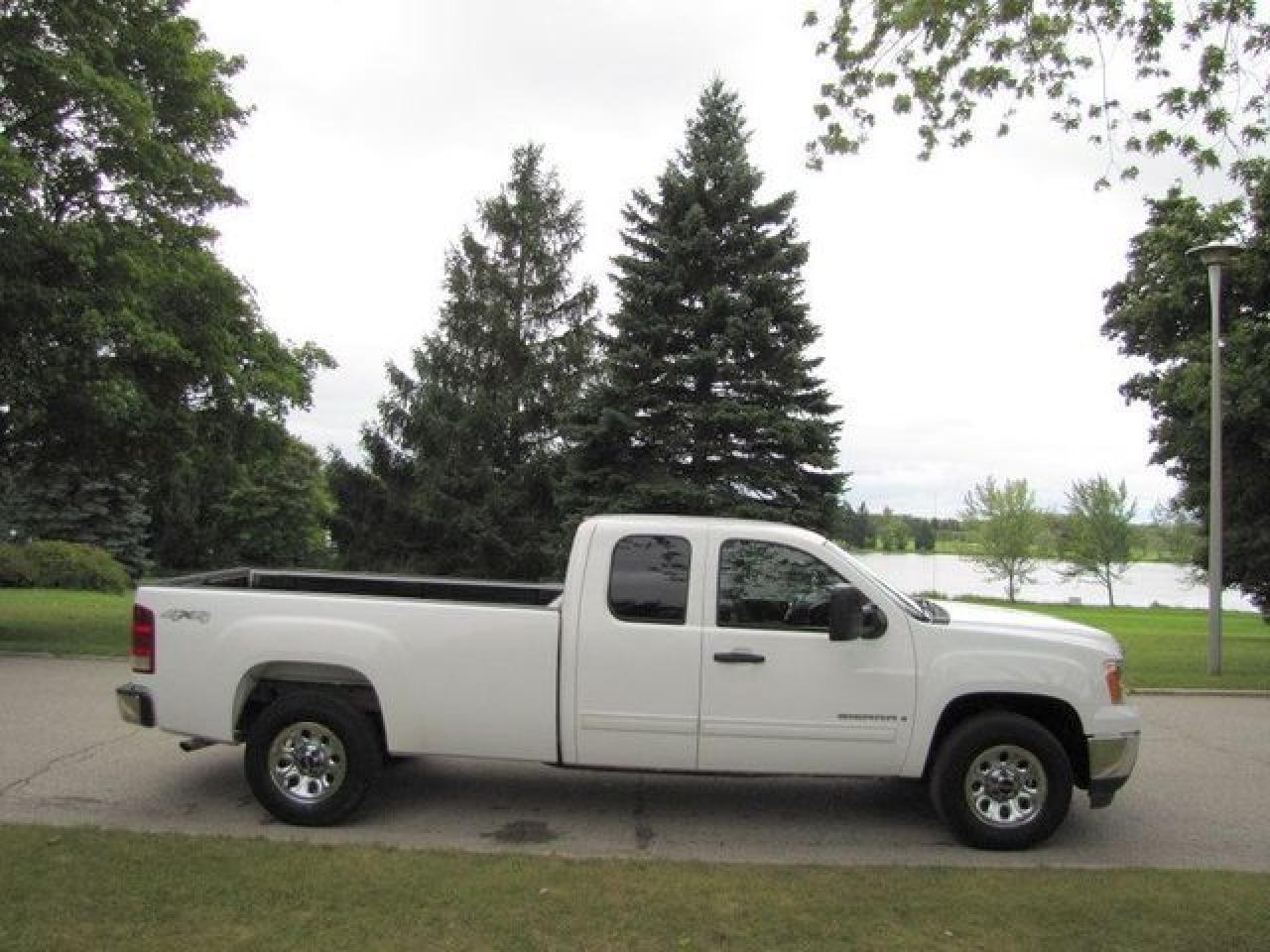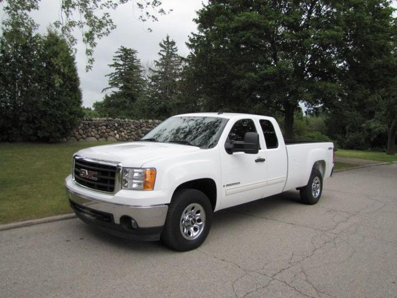 This 2007 GMC Sierra 1500 SLE LONG BOX !! NEW TIRES!! GM LEASE RETURN! 4x4 Truck features a 5.3L V8 SFI 8 cyl Gasoline engine. It is equipped with a Automatic transmission. The vehicle is White with a Black Cloth interior. It is offered with the remaining factory warranty. Over 400 BETTER used cars in stock!! PLEASE CALL 1-866-348-8146 5.99% Financing + no payments up to 6 months available on approved credit!! Free Trial Exchange!! A+ Better Business Bureau rating!! Voted Guelph's Favourite dealer 2004-2009!! Since 1961. Taxes, licensing, and $5.00 OMVIC fee are extra. Call for details on our Free Trial Exchange! Thank you for considering Wilsons!!! Please call 1-866-348-8146. - This GMC is in Excellent overall exterior condition, Excellent overall interior condition, Cloth seats - Air Conditioning, Cruise Control, Power Steering, Power Windows, Power Door Locks, Power Mirrors, Leather Steering Wheel, Tow Package, Clock, Tachometer, Digital Info Center, Tilt Steering Wheel, Driver Airbag, Passenger Airbag, Keyless Entry, ABS Brakes, Traction Control, Intermittent Wipers, AM-FM, CD Player, 17 inch Wheels, Cloth Interior Surface, Four Wheel Drive - Contact The Internet Department at 866-738-6045 or leads@markwilsonsbetterusedcarstc.dealer.com for more information. -