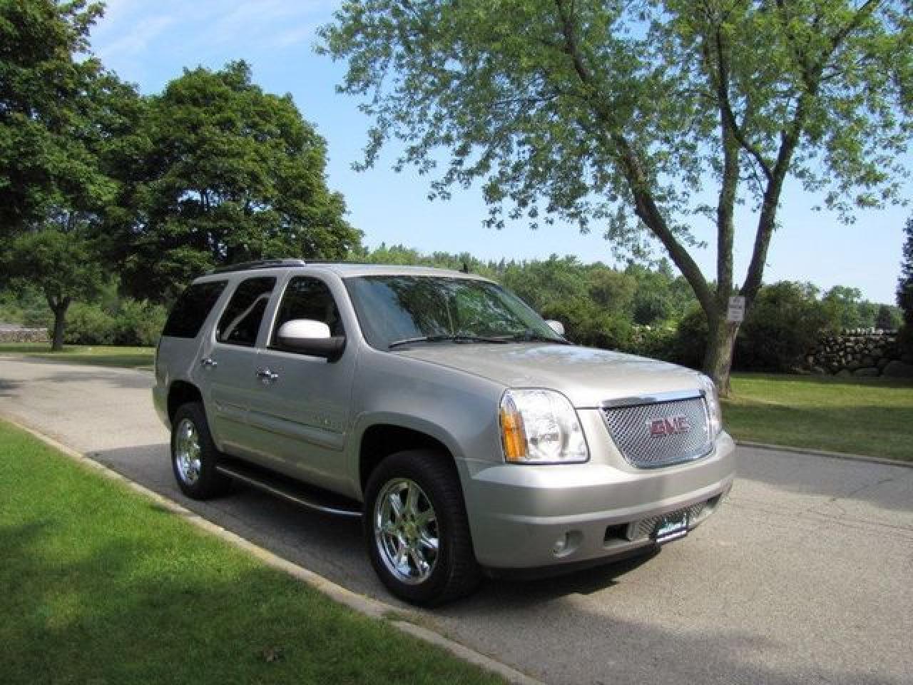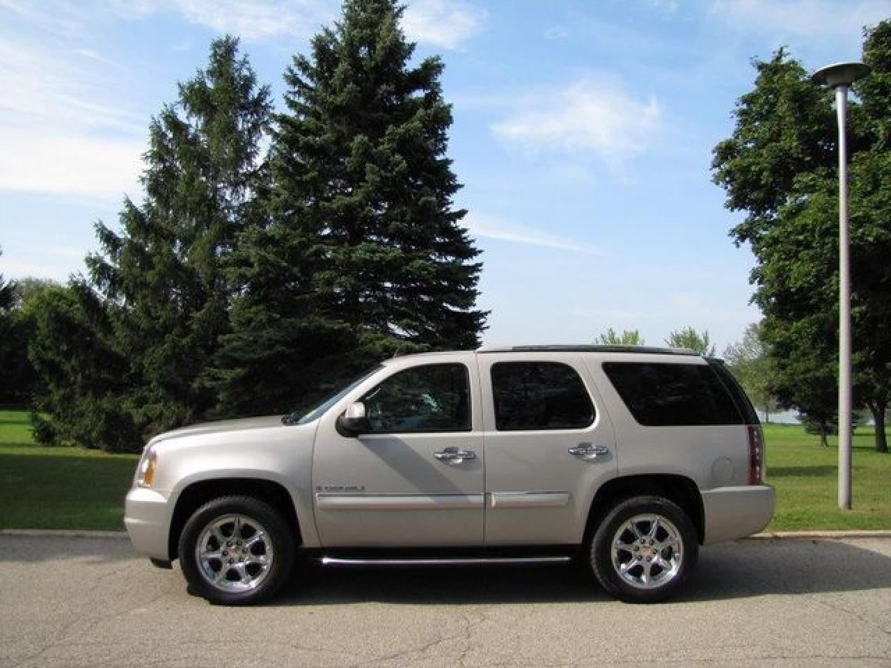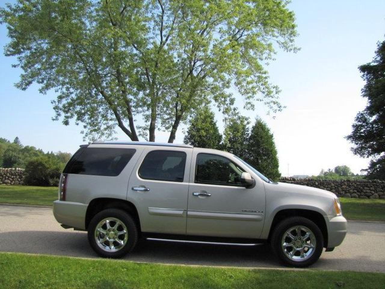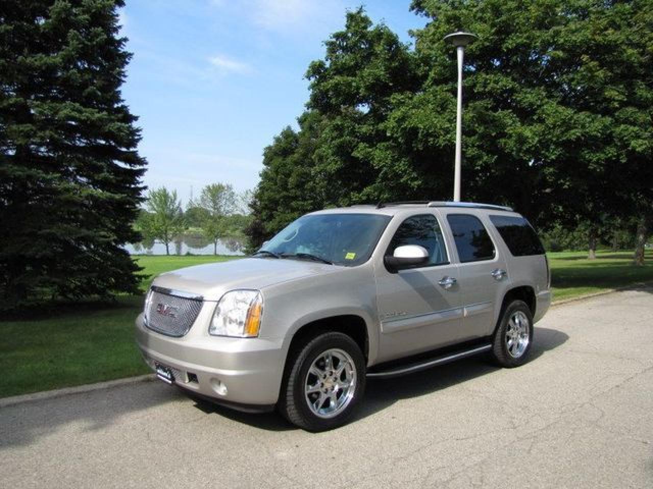 This 2007 GMC Yukon Denali 4dr LUXURY!! NAVIGATION!! TV-DVD!! REAR CAMERA!! AWD SUV features a 6.2L V8 SFI 8 cyl Gasoline engine. It is equipped with a 6 Speed Automatic transmission. The vehicle is Silver with a Grey Leather interior. It is offered with the remaining factory warranty. Over 400 BETTER used cars in stock!! PLEASE CALL 1-866-348-8146 5.99% Financing + no payments up to 6 months available on approved credit!! Free Trial Exchange!! A+ Better Business Bureau rating!! Voted Guelph's Favourite dealer 2004-2009!! Since 1961. Taxes, licensing, and $5.00 OMVIC fee are extra. Call for details on our Free Trial Exchange! Thank you for considering Wilsons!!! Please call 1-866-348-8146. - This GMC is in Excellent overall exterior condition, Excellent overall interior condition, Leather seats - Air Conditioning, Climate Control, Dual Zone Climate Control, Cruise Control, Tinted Windows, Power Steering, Power Windows, Power Door Locks, Power Mirrors, Leather Steering Wheel, Power Drivers Seat, Power Passenger Seat, Memory Seat Position, Heated Seat, Tow Package, Roof Rack, Rear Air Conditioning, Clock, Tachometer, Digital Info Center, Homelink System, Tilt Steering Wheel, Telescoping Steering Wheel, Steering Wheel Radio Controls, Sunroof, Driver Airbag, Passenger Airbag, Keyless Entry, ABS Brakes, Traction Control, Rear Defogger, Fog Lights, Intermittent Wipers, AM-FM, CD Player, 20 inch Chrome Wheels, Leather Interior Surface, Navigation System, Reverse Camera - Contact The Internet Department at 866-738-6045 or leads@markwilsonsbetterusedcarstc.dealer.com for more information. -