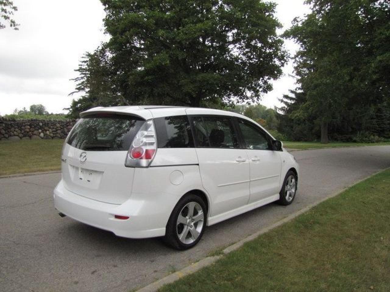 This 2007 Mazda MAZDA5 4dr Ron GS SUNROOF!! ALLOYS!! MAZDA LEASE RETURN!! Wagon features a 2.3L L4 DOHC 16V 4 cyl Gasoline engine. It is equipped with a 5 Speed Manual transmission. The vehicle is White with a Black Cloth interior. It is offered with the remaining factory warranty. Over 400 BETTER used cars in stock!! PLEASE CALL 1-866-348-8146 5.99% Financing + no payments up to 6 months available on approved credit!! Free Trial Exchange!! A+ Better Business Bureau rating!! Voted Guelph's Favorite dealer 2004-2009!! Since 1961. Taxes, licensing, and $5.00 OMVIC fee are extra. Call for details on our Free Trial Exchange! Thank you for considering Wilsons!!! Please call 1-866-348-8146 - This Mazda is in Excellent overall exterior condition, Excellent overall interior condition, Cloth seats - Air Conditioning, Cruise Control, Power Steering, Power Windows, Power Door Locks, Power Mirrors, Clock, Tachometer, Digital Info Center, Tilt Steering Wheel, Telescoping Steering Wheel, Steering Wheel Radio Controls, Sunroof, Driver Airbag, Passenger Airbag, Keyless Entry, ABS Brakes, Rear Defogger, Fog Lights, Intermittent Wipers, AM-FM, CD Player, Alloy Wheels, Cloth Interior Surface - Contact The Internet Department at 866-738-6045 or leads@markwilsonsbetterusedcarstc.dealer.com for more information. -