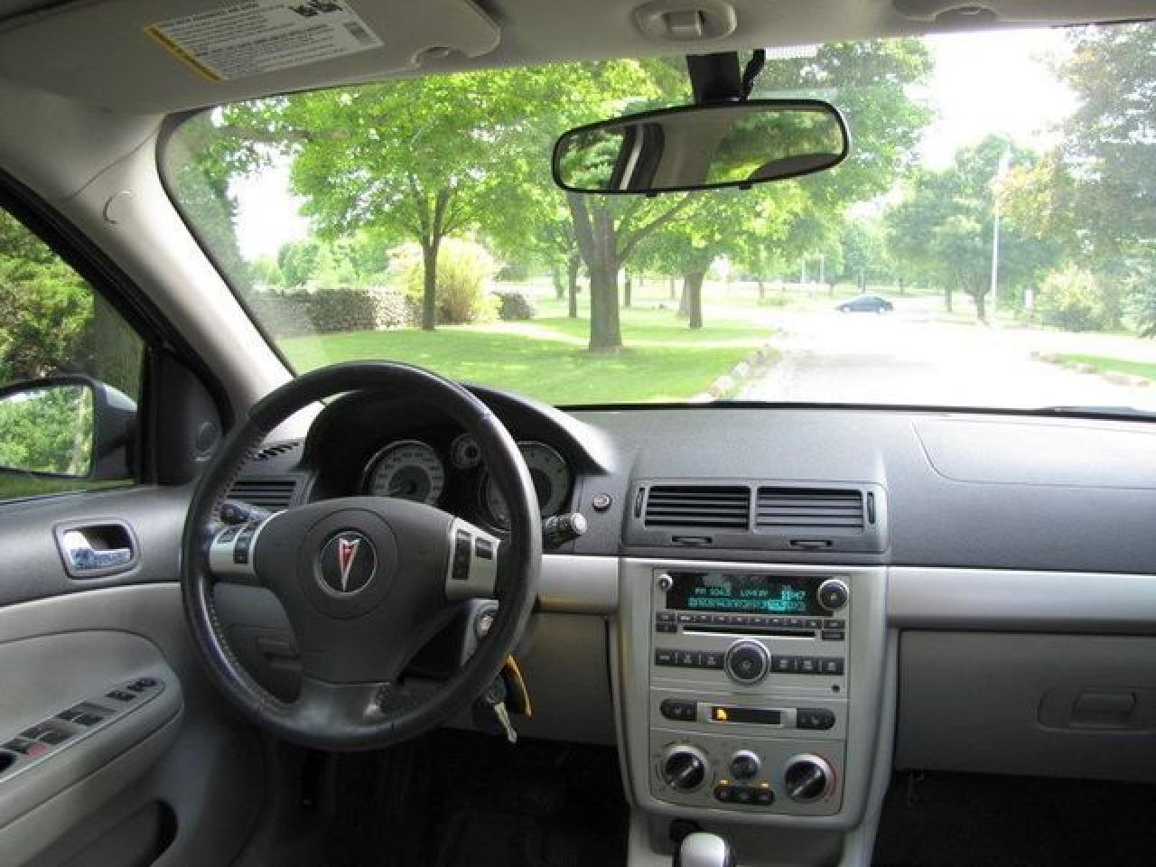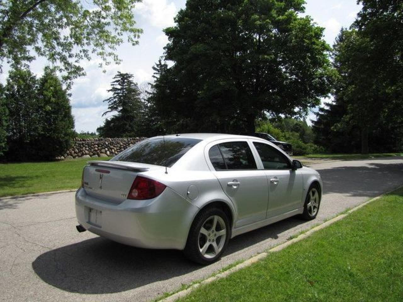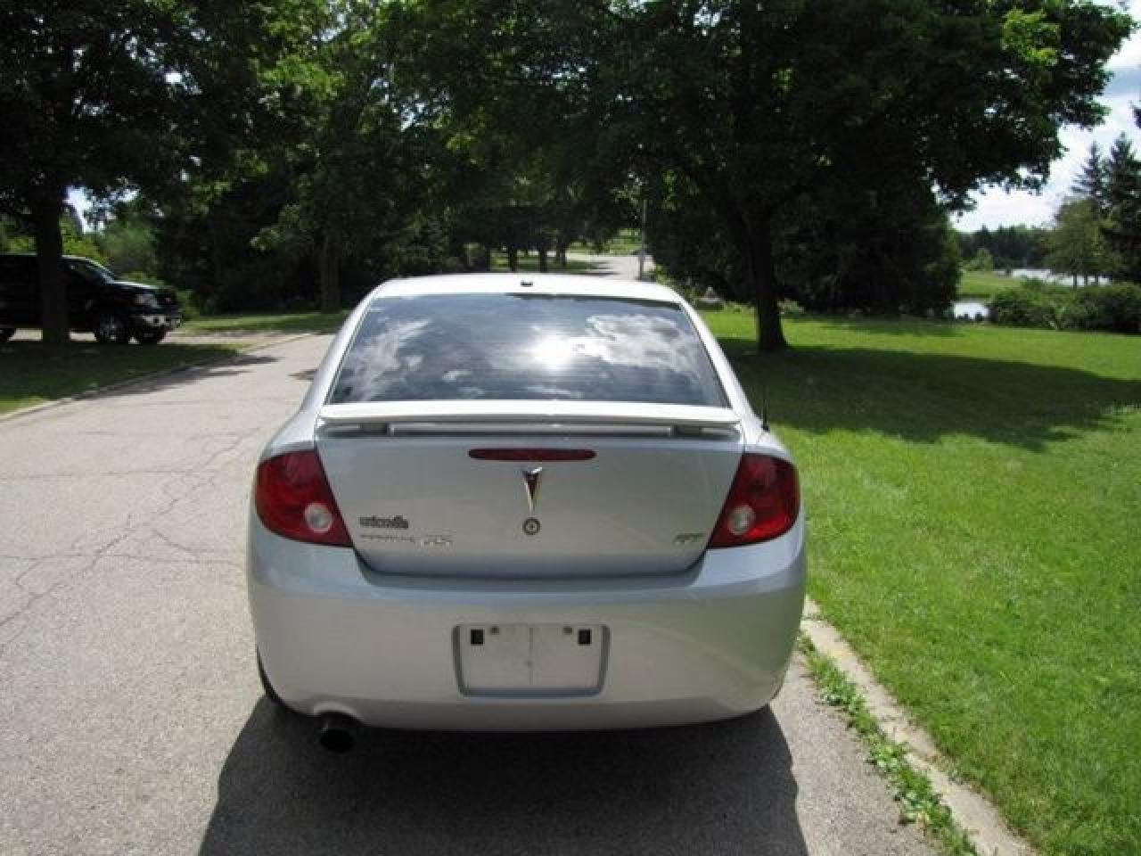 This 2007 Pontiac G5 4dr GT LEATHER!! SUNROOF!! SPOILER! ALLOYS! Sedan features a 2.4L L4 SFI 4 cyl Gasoline engine. It is equipped with a Automatic transmission. The vehicle is Silver with a Grey Leather interior. It is offered with the remaining factory warranty. Over 400 BETTER used cars in stock!! PLEASE CALL 1-866-348-8146 5.99% Financing + no payments up to 6 months available on approved credit!! Free Trial Exchange!! A+ Better Business Bureau rating!! Voted Guelph's Favourite dealer 2004-2009!! Since 1961. Taxes, licensing, and $5.00 OMVIC fee are extra. Call for details on our Free Trial Exchange! Thank you for considering Wilsons!!! Please call 1-866-348-8146. - This Pontiac is in Excellent overall exterior condition, Excellent overall interior condition, Leather seats - Air Conditioning, Cruise Control, Power Steering, Power Windows, Power Door Locks, Power Mirrors, Leather Steering Wheel, Heated Seat, Clock, Digital Info Center, Tilt Steering Wheel, Steering Wheel Radio Controls, Sunroof, Driver Airbag, Passenger Airbag, Keyless Entry, ABS Brakes, Rear Defogger, Intermittent Wipers, AM-FM, CD Player, Alloy Wheels, Leather Interior Surface - Contact The Internet Department at 866-738-6045 or leads@markwilsonsbetterusedcarstc.dealer.com for more information. -