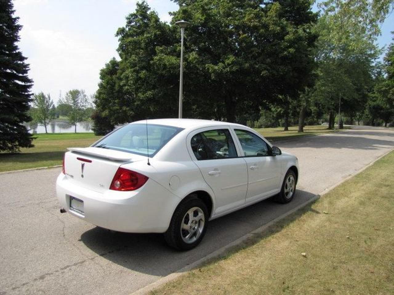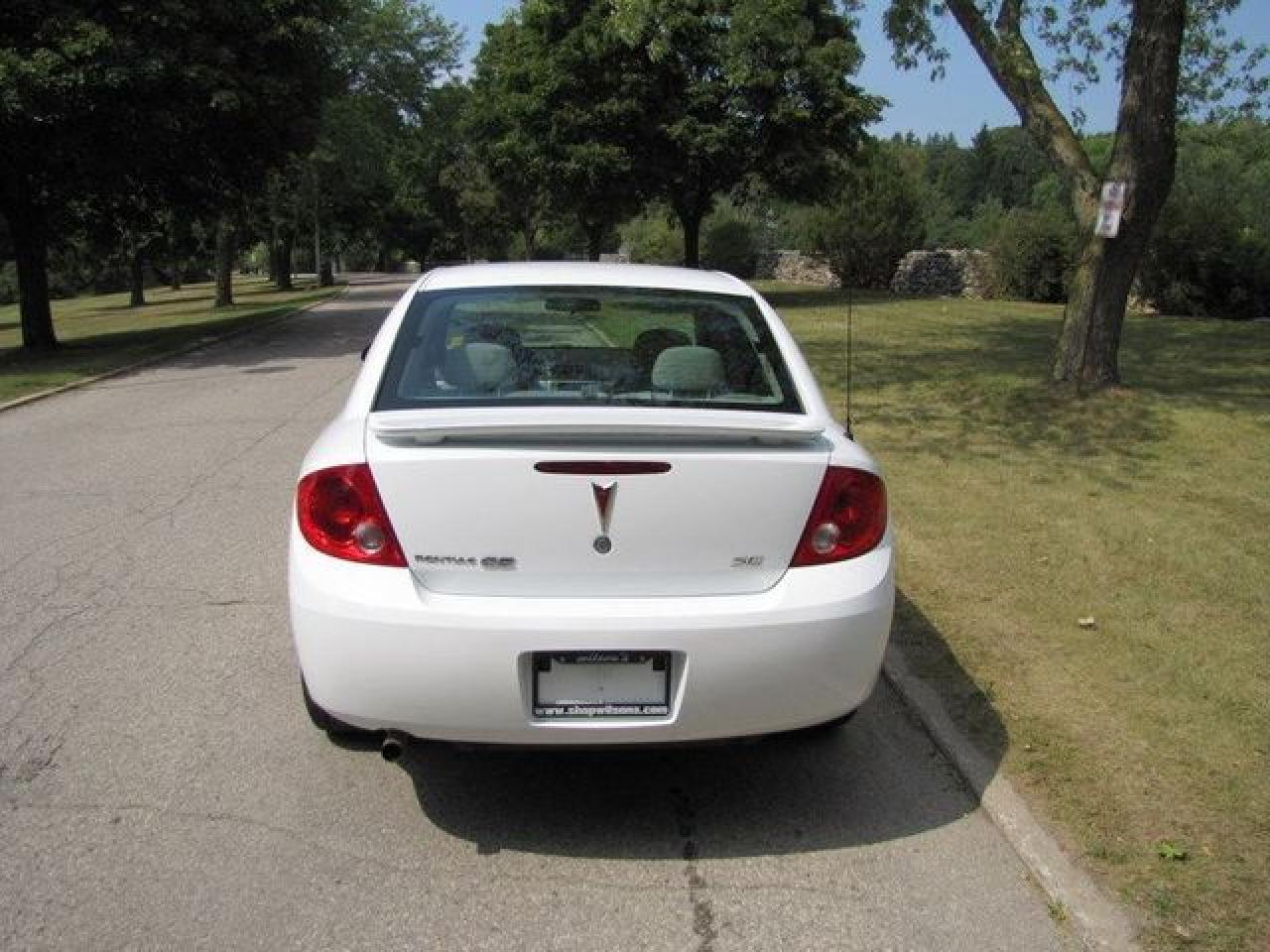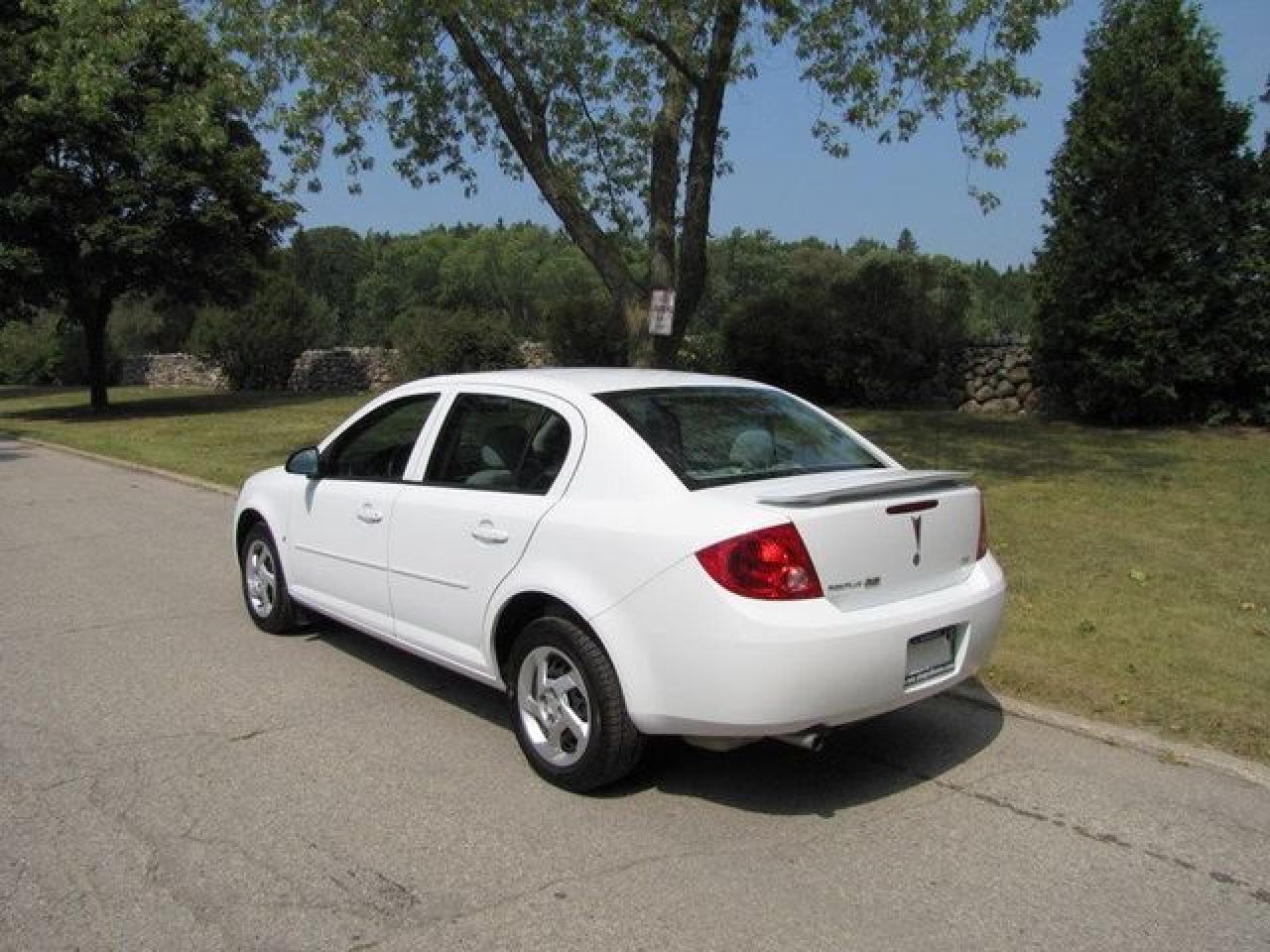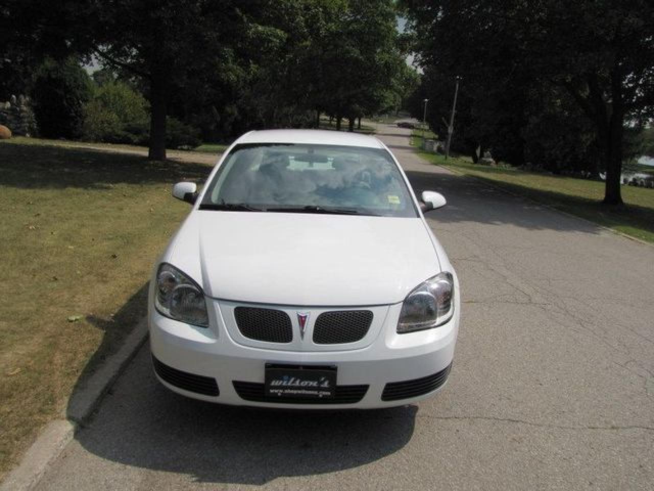 This 2007 Pontiac G5 4dr LOADED!! SPOILER!! GM LEASE RETURN!! Sedan features a 2.2L L4 MPI 4 cyl Gasoline engine. It is equipped with a Automatic transmission. The vehicle is White with a Grey interior. It is offered with the remaining factory warranty. Over 400 BETTER used cars in stock!! PLEASE CALL 1-866-348-8146 5.99% Financing + no payments up to 6 months available on approved credit!! Free Trial Exchange!! A+ Better Business Bureau rating!! Voted Guelph's Favourite dealer 2004-2009!! Since 1961. Taxes, licensing, and $5.00 OMVIC fee are extra. Call for details on our Free Trial Exchange! Thank you for considering Wilsons!!! Please call 1-866-348-8146. - This Pontiac is in Excellent overall exterior condition, Excellent overall interior condition, seats - Air Conditioning, Cruise Control, Power Steering, Power Windows, Power Door Locks, Clock, Tachometer, Tilt Steering Wheel, Driver Airbag, Passenger Airbag, Keyless Entry, Rear Defogger, Intermittent Wipers, AM-FM, CD Player, Anti-Theft, Wheels - Contact The Internet Department at 866-738-6045 or leads@markwilsonsbetterusedcarstc.dealer.com for more information. -