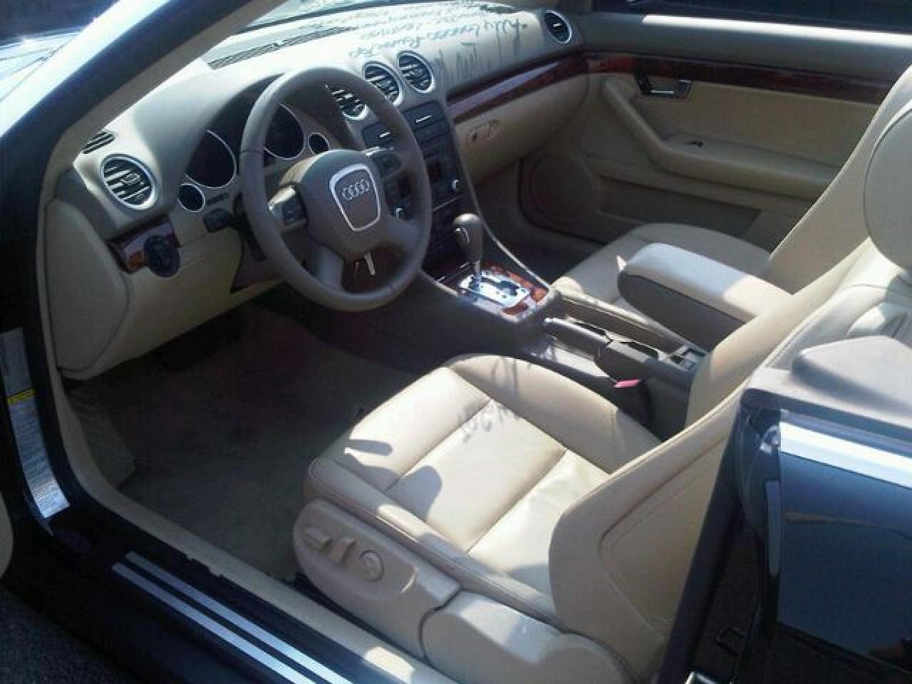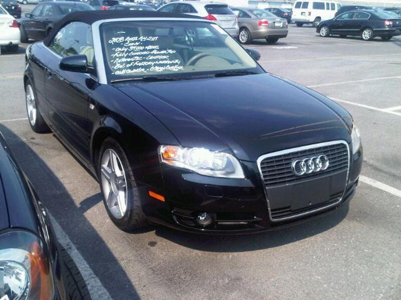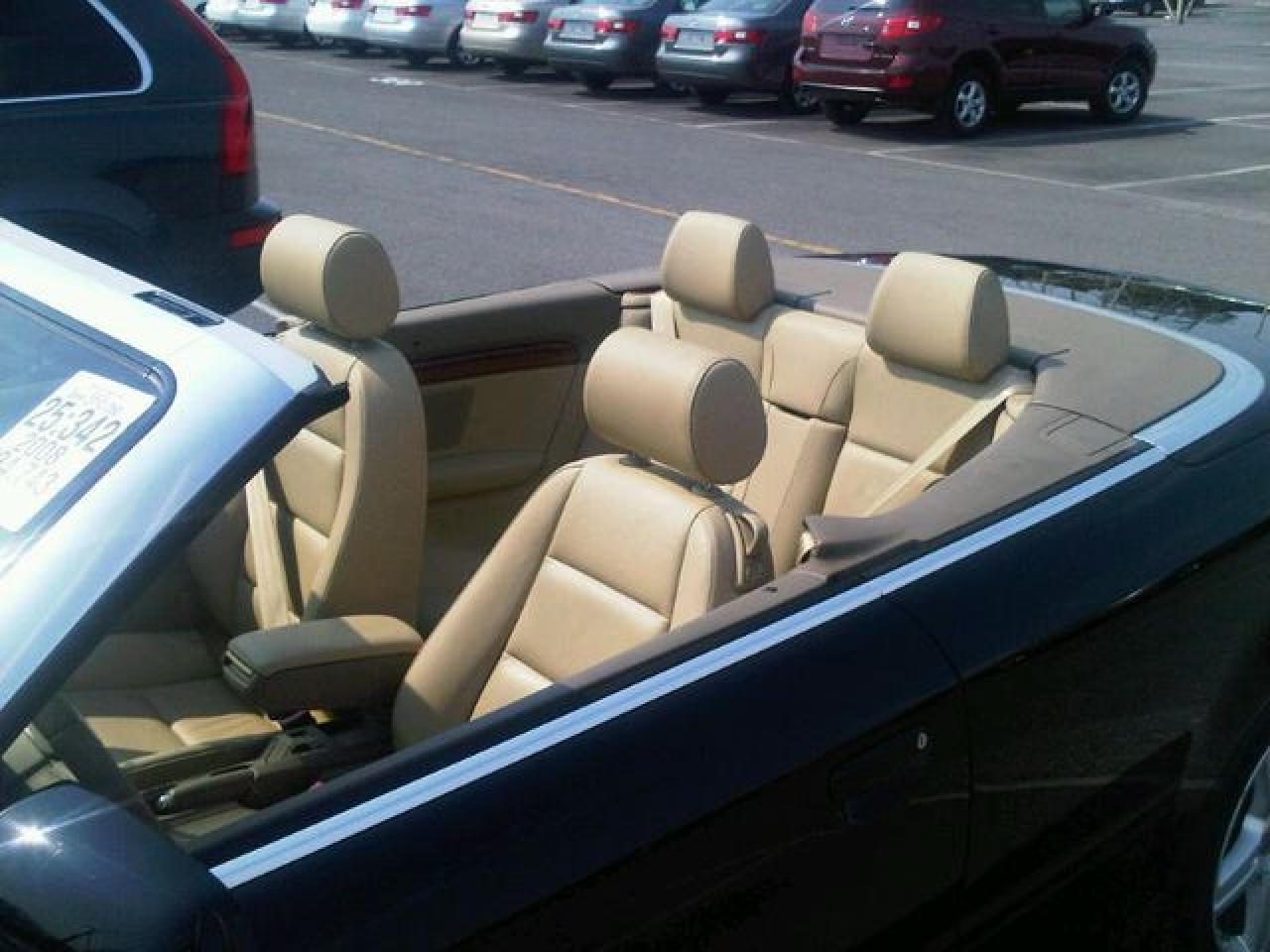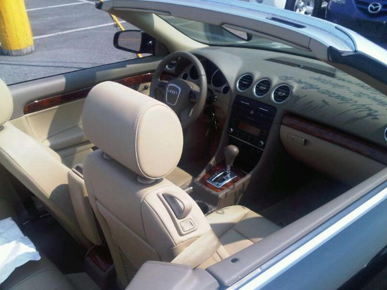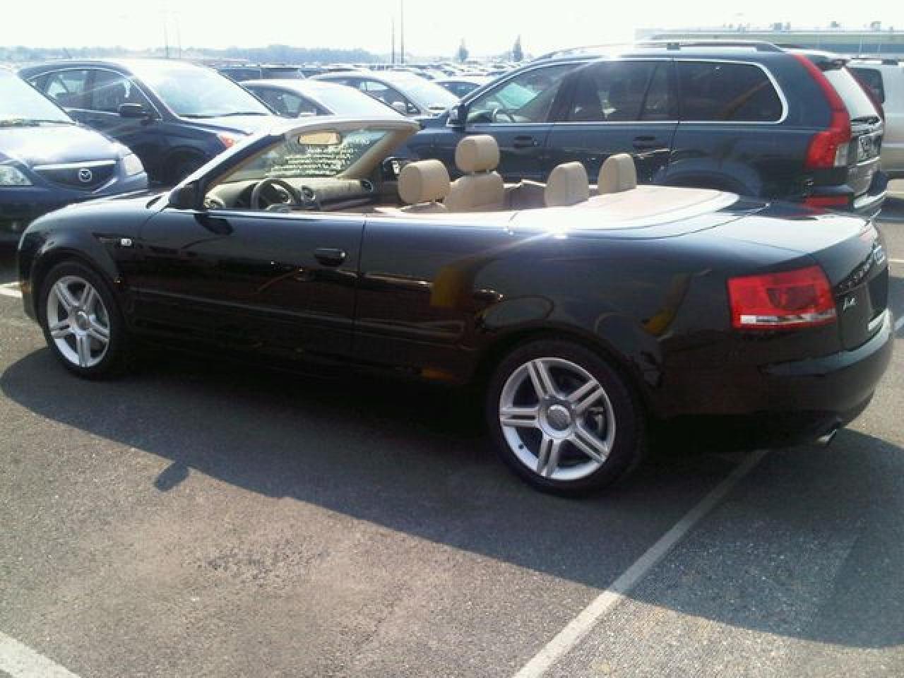 This 2008 Audi A4 2dr 2.0T Cabriolet LEATHER!! NEW TIRES!! PWR SEATS!! Convertible features a 2.0L L4 DIR DOHC 16V Turbo 4 cyl Gasoline engine. It is equipped with a Automatic transmission. The vehicle is BLACK with a LIGHT DOE SKIN Leather interior. It is offered with the remaining factory warranty. Over 400 BETTER used cars in stock!! PLEASE CALL 1-866-348-8146 5.99% Financing + no payments up to 6 months available on approved credit!! Free Trial Exchange!! A+ Better Business Bureau rating!! Voted Guelph's Favourite dealer 2004-2009!! Since 1961. Taxes, licensing, and $5.00 OMVIC fee are extra. Call for details on our Free Trial Exchange! Thank you for considering Wilsons!!! Please call 1-866-348-8146. - This Audi is in Excellent overall exterior condition, Excellent overall interior condition, Leather seats - Air Conditioning, Climate Control, Dual Zone Climate Control, Cruise Control, Power Steering, Power Windows, Power Door Locks, Power Mirrors, Leather Steering Wheel, Power Drivers Seat, Power Passenger Seat, Clock, Tachometer, Digital Info Center, Tilt Steering Wheel, Telescoping Steering Wheel, Steering Wheel Radio Controls, Driver Airbag, Passenger Airbag, Keyless Entry, ABS Brakes, Traction Control, Rear Defogger, Fog Lights, Intermittent Wipers, AM-FM, CD Player, Factory Premium Sound System, Alloy Wheels, Leather Interior Surface - Contact The Internet Department at 866-738-6045 or leads@markwilsonsbetterusedcarstc.dealer.com for more information. -