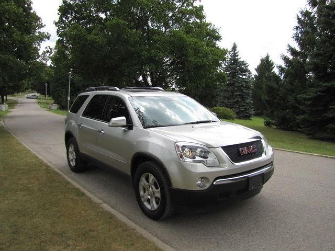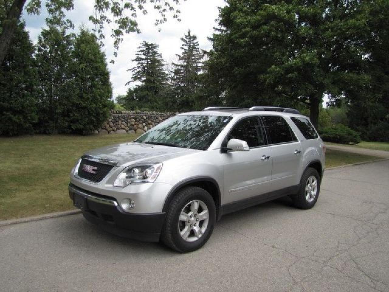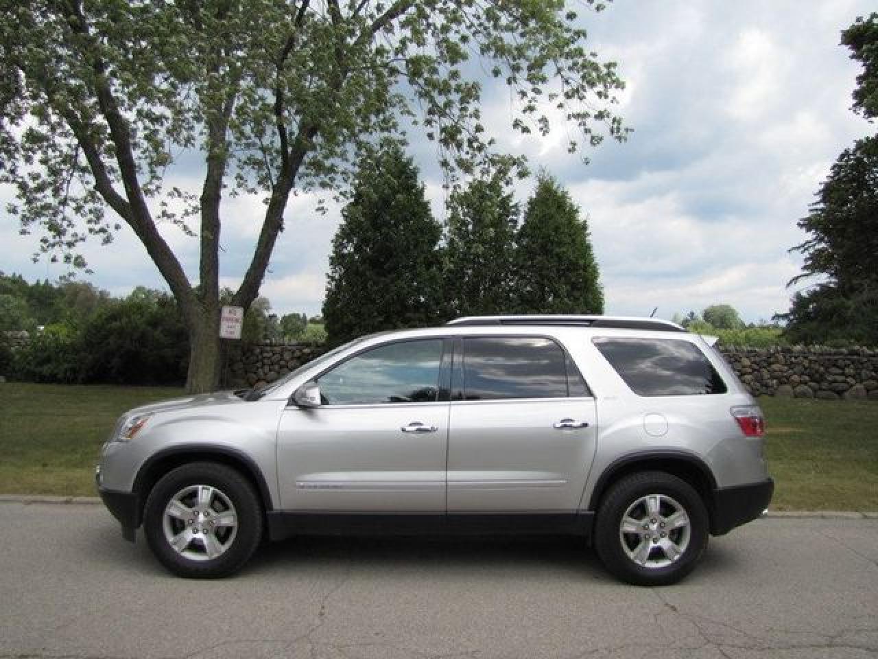 This 2008 GMC Acadia 4dr SLT TV-DVD!! LTHR- TWIN ROOFS!! NEW TIRES! GM LEASE RTN AWD SUV features a 3.6L V6 MPI 6 cyl Gasoline engine. It is equipped with a Automatic transmission. The vehicle is Silver with a Grey Leather interior. It is offered with the remaining factory warranty. Over 400 BETTER used cars in stock!! PLEASE CALL 1-866-348-8146 5.99% Financing + no payments up to 6 months available on approved credit!! Free Trial Exchange!! A+ Better Business Bureau rating!! Voted Guelph's Favourite dealer 2004-2009!! Since 1961. Taxes, licensing, and $5.00 OMVIC fee are extra. Call for details on our Free Trial Exchange! Thank you for considering Wilsons!!! Please call 1-866-348-8146. 4 BRAND NEW HANKOOK TIRES INCLUDED! - This GMC is in Excellent overall exterior condition, Excellent overall interior condition, Leather seats - Air Conditioning, Climate Control, Dual Zone Climate Control, Cruise Control, Tinted Windows, Power Steering, Power Windows, Power Door Locks, Power Mirrors, Leather Steering Wheel, Power Drivers Seat, Power Passenger Seat, Heated Seat, Roof Rack, Rear Air Conditioning, Clock, Tachometer, Digital Info Center, Homelink System, Tilt Steering Wheel, Steering Wheel Radio Controls, Sunroof, Driver Airbag, Passenger Airbag, Keyless Entry, ABS Brakes, Traction Control, Rear Defogger, Intermittent Wipers, AM-FM, CD Player, 18 inch Alloy Wheels, Leather Interior Surface, PARKING SENSORS! PWR SUNSHADE, OnStar, Power Lift Gate - Contact The Internet Department at 866-738-6045 or leads@markwilsonsbetterusedcarstc.dealer.com for more information. -