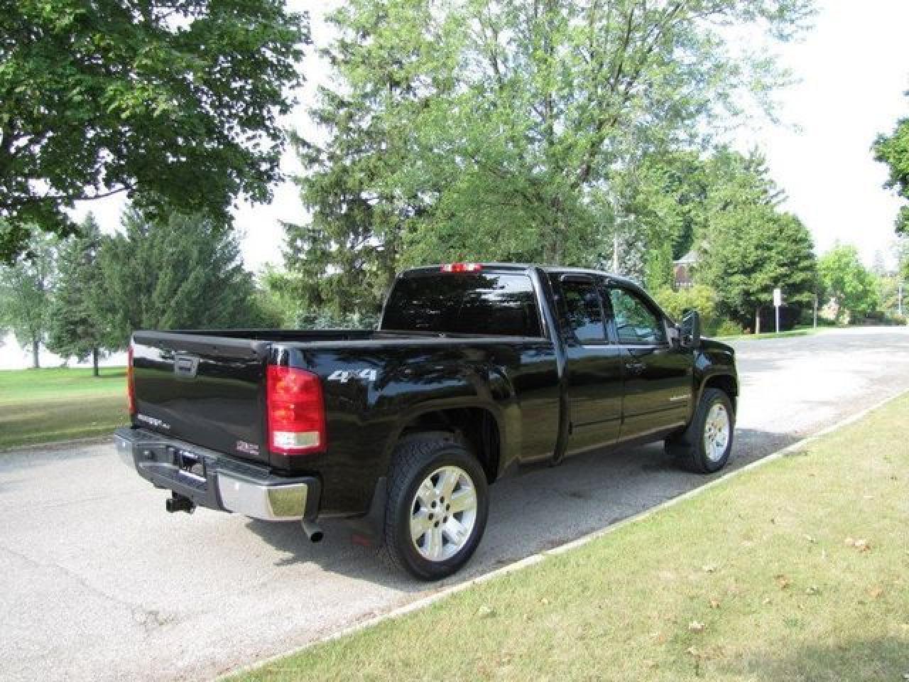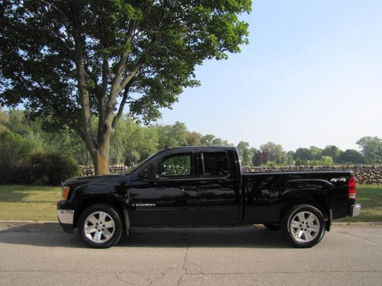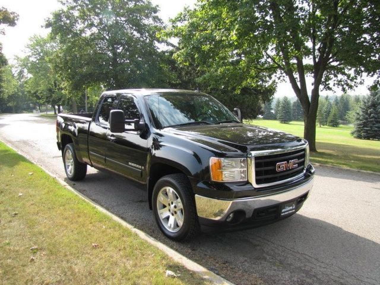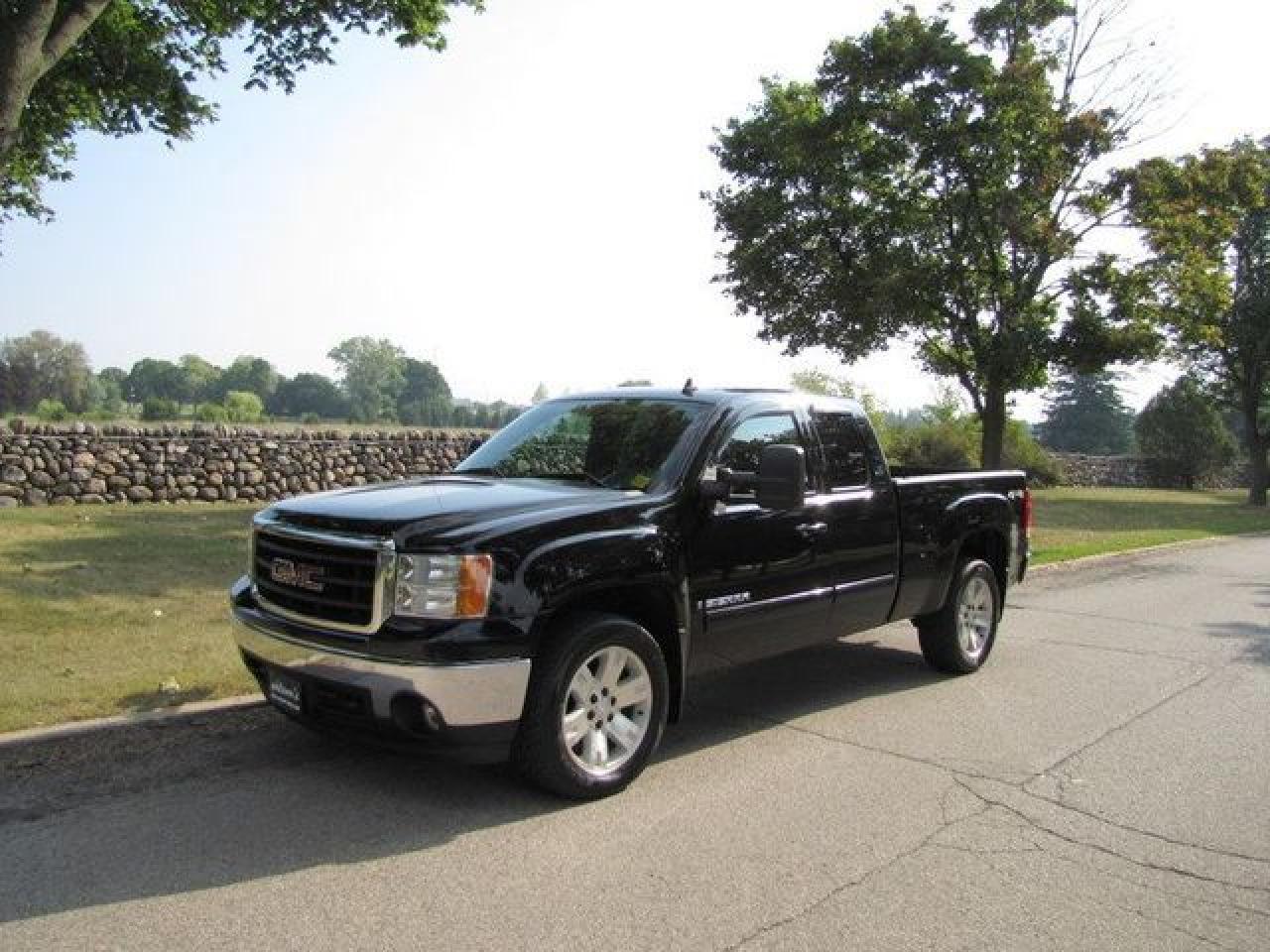 This 2008 GMC Sierra 1500 SLT LEATHER!! LOW KMS!! NEW TIRES!! GM LEASE RETN!! 4x4 Truck features a 5.3L V8 MPI 8 cyl Gasoline engine. It is equipped with a Automatic transmission. The vehicle is Black with a Black Leather interior. It is offered with the remaining factory warranty. Over 400 BETTER used cars in stock!! PLEASE CALL 1-866-348-8146 5.99% Financing + no payments up to 6 months available on approved credit!! Free Trial Exchange!! A+ Better Business Bureau rating!! Voted Guelph's Favourite dealer 2004-2009!! Since 1961. Taxes, licensing, and $5.00 OMVIC fee are extra. Call for details on our Free Trial Exchange! Thank you for considering Wilsons!!! Please call 1-866-348-8146. - This GMC is in Excellent overall exterior condition, Excellent overall interior condition, Leather seats - Air Conditioning, Cruise Control, Tinted Windows, Power Steering, Power Windows, Power Door Locks, Power Mirrors, Leather Steering Wheel, Power Drivers Seat, Heated Seat, Tow Package, Clock, Tachometer, Tilt Steering Wheel, Steering Wheel Radio Controls, Driver Airbag, Passenger Airbag, Keyless Entry, ABS Brakes, Fog Lights, Intermittent Wipers, AM-FM, CD Player, 20 inch Aluminum Wheels, Leather Interior Surface, Four Wheel Drive, OnStar - Contact The Internet Department at 866-738-6045 or leads@markwilsonsbetterusedcarstc.dealer.com for more information. -