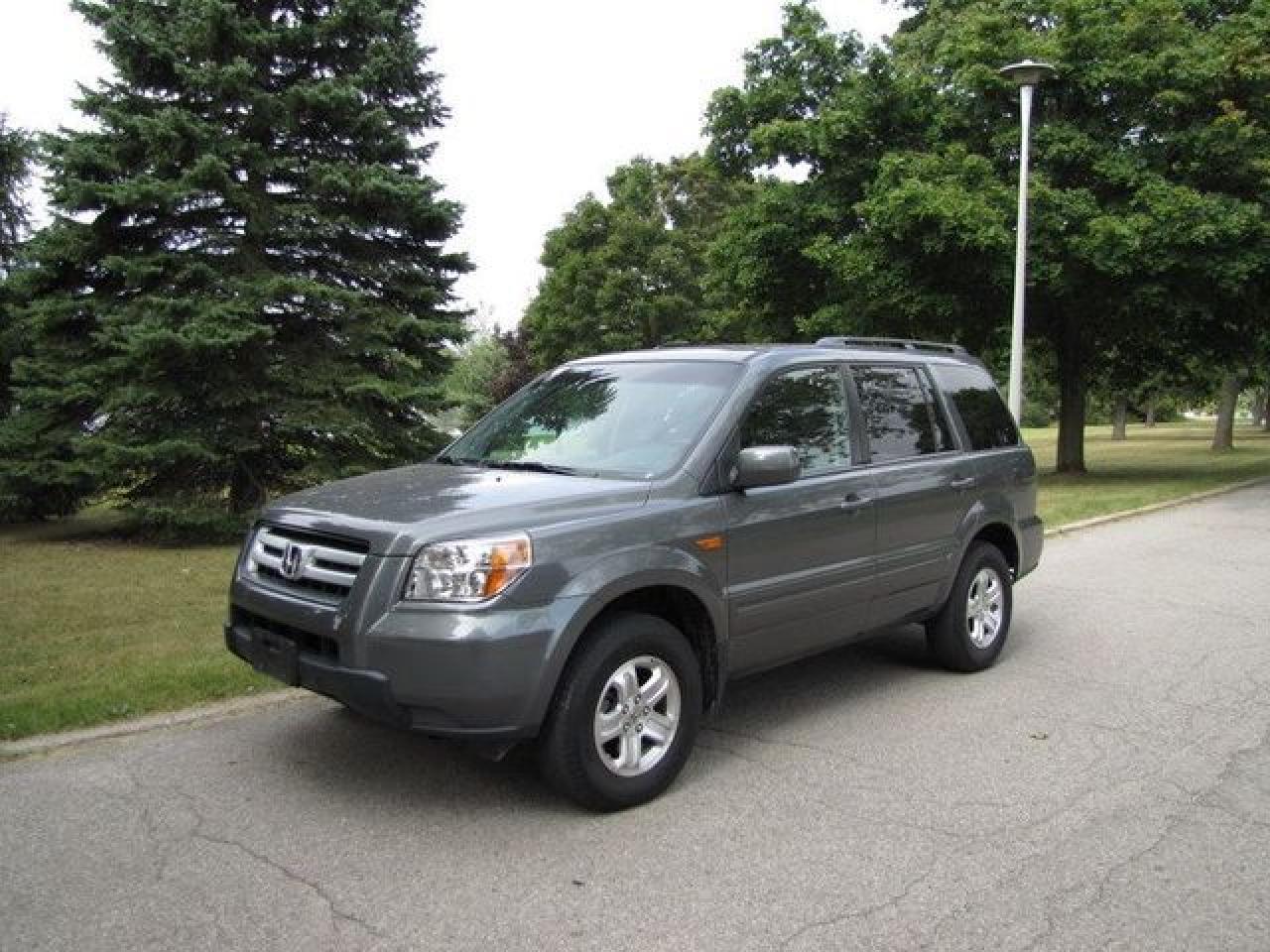 This 2008 Honda Pilot 4dr 4WD LEATHER!! HONDA LEASE RETURN!! 4x4 SUV features a 3.5L V6 MPI SOHC 24V 6 cyl Gasoline engine. It is equipped with a Automatic transmission. The vehicle is Grey with a Grey Leather interior. Over 400 BETTER used cars in stock!! PLEASE CALL 1-866-348-8146 5.99% Financing + no payments up to 6 months available on approved credit!! Free Trial Exchange!! A+ Better Business Bureau rating!! Voted Guelph's Favourite dealer 2004-2009!! Since 1961. Taxes, licensing, and $5.00 OMVIC fee are extra. Call for details on our Free Trial Exchange! Thank you for considering Wilsons!!! Please call 1-866-348-8146. - This Honda is in Excellent overall exterior condition, Excellent overall interior condition, Leather seats - Air Conditioning, Cruise Control, Power Steering, Power Windows, Power Door Locks, Power Mirrors, Clock, Tachometer, Digital Info Center, Tilt Steering Wheel, Driver Airbag, Passenger Airbag, Keyless Entry, ABS Brakes, Traction Control, Intermittent Wipers, AM-FM, CD Player, Alloy Wheels, Leather Interior Surface, Four Wheel Drive - Contact The Internet Department at 866-738-6045 or leads@markwilsonsbetterusedcarstc.dealer.com for more information. -
