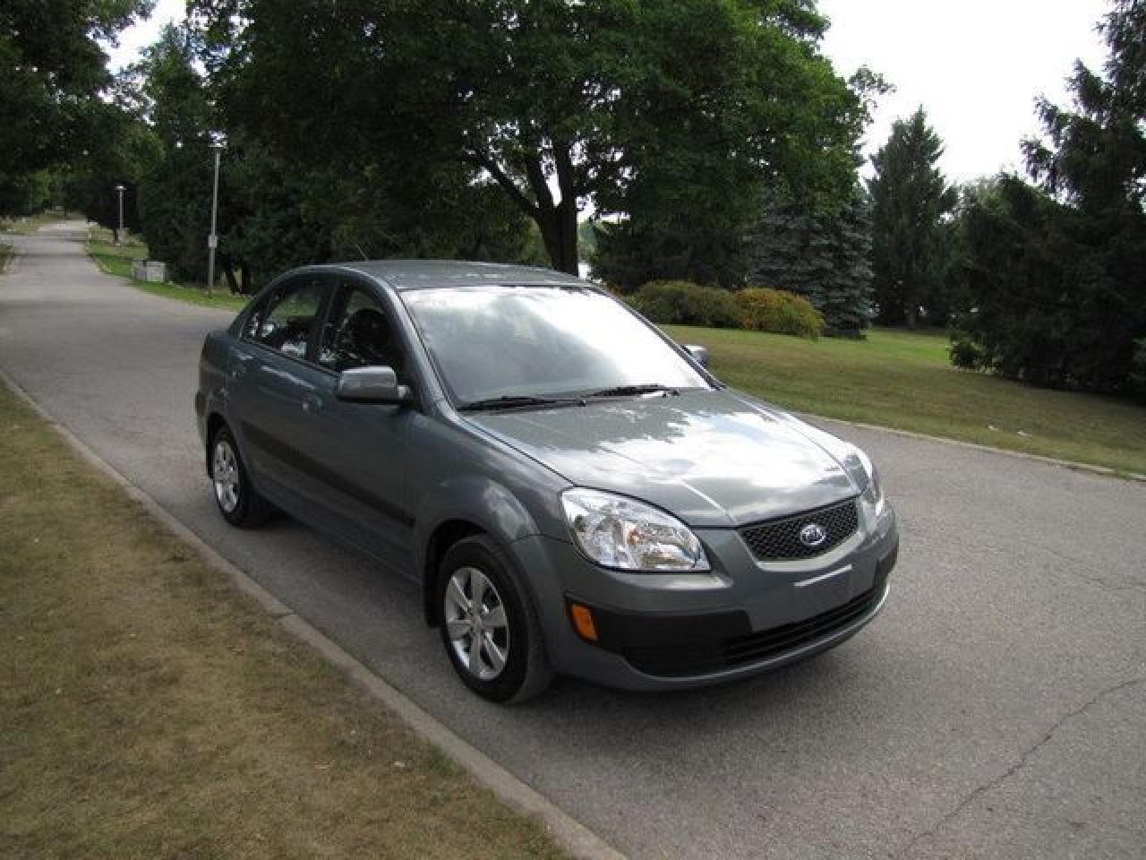 This 2009 Kia Rio 4dr EX HEATED SEATS!! LOADED!! Sedan features a 1.6L I4 CVVT DOHC 16V 4 cyl Gasoline engine. It is equipped with a Automatic transmission. The vehicle is Blue with a Grey Cloth interior. It is offered with the remaining factory warranty. Over 400 BETTER used cars in stock!! PLEASE CALL 1-866-348-8146 5.99% Financing + no payments up to 6 months available on approved credit!! Free Trial Exchange!! A+ Better Business Bureau rating!! Voted Guelph's Favourite dealer 2004-2009!! Since 1961. Taxes, licensing and $5.00 OMVIC fee are extra. Former daily rental. Call for details on our Free Trial Exchange! Thank you for considering Wilsons!!! Please call 1-866-348-8146. - This Kia is in Excellent overall exterior condition, Excellent overall interior condition, Cloth seats - Air Conditioning, Cruise Control, Power Steering, Power Windows, Power Door Locks, Power Mirrors, Heated Seat, Clock, Tachometer, Digital Info Center, Tilt Steering Wheel, Driver Airbag, Passenger Airbag, Keyless Entry, ABS Brakes, Rear Defogger, Intermittent Wipers, AM-FM, CD Player, Wheels, Cloth Interior Surface - Contact The Internet Department at 866-738-6045 or leads@markwilsonsbetterusedcarstc.dealer.com for more information. -