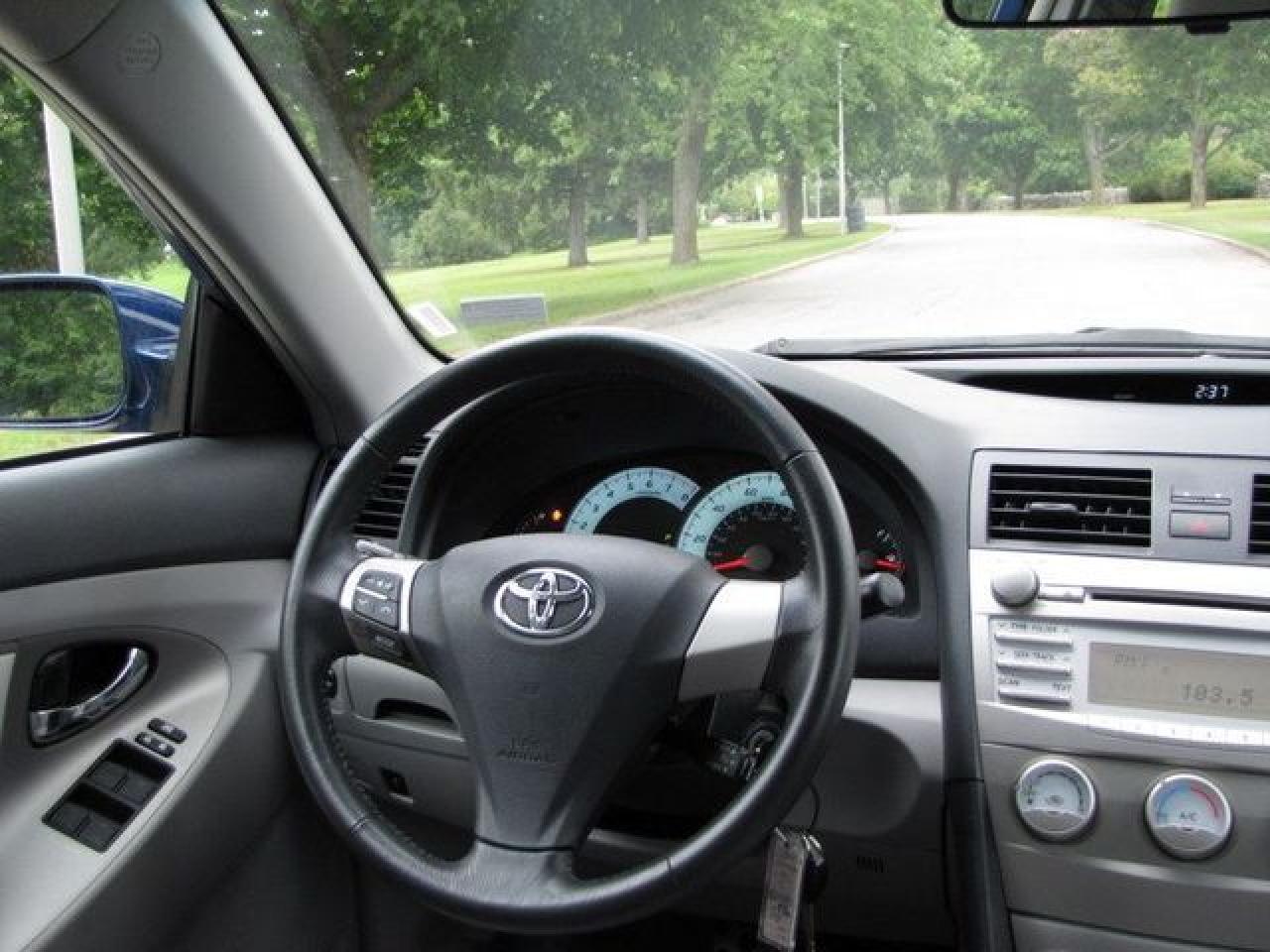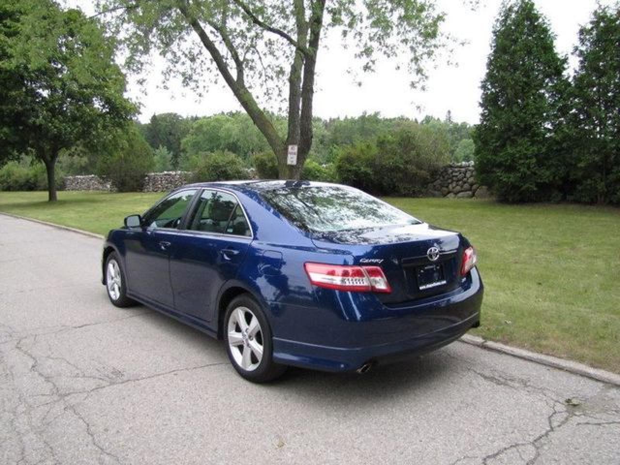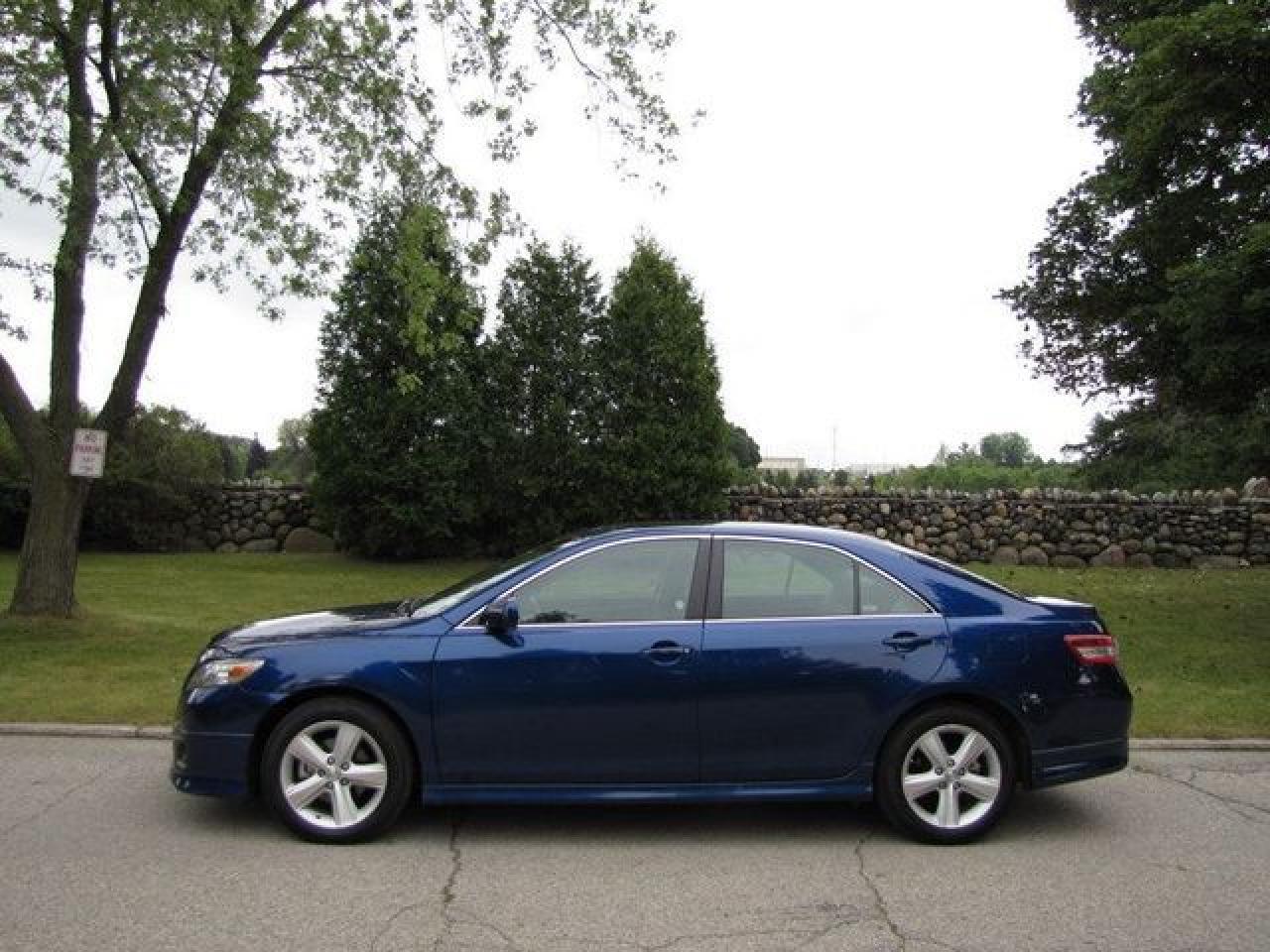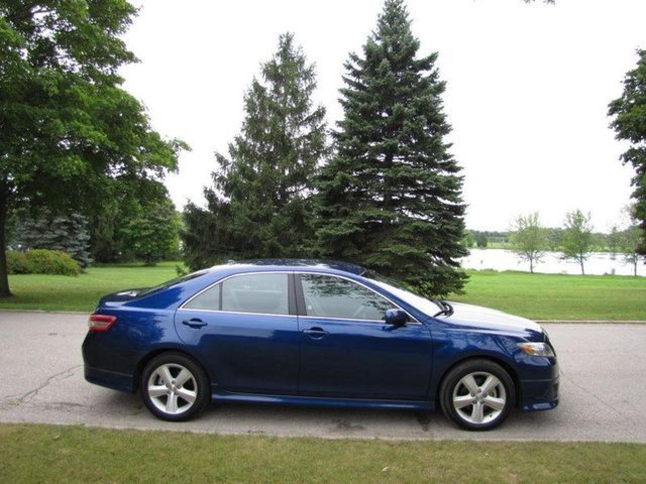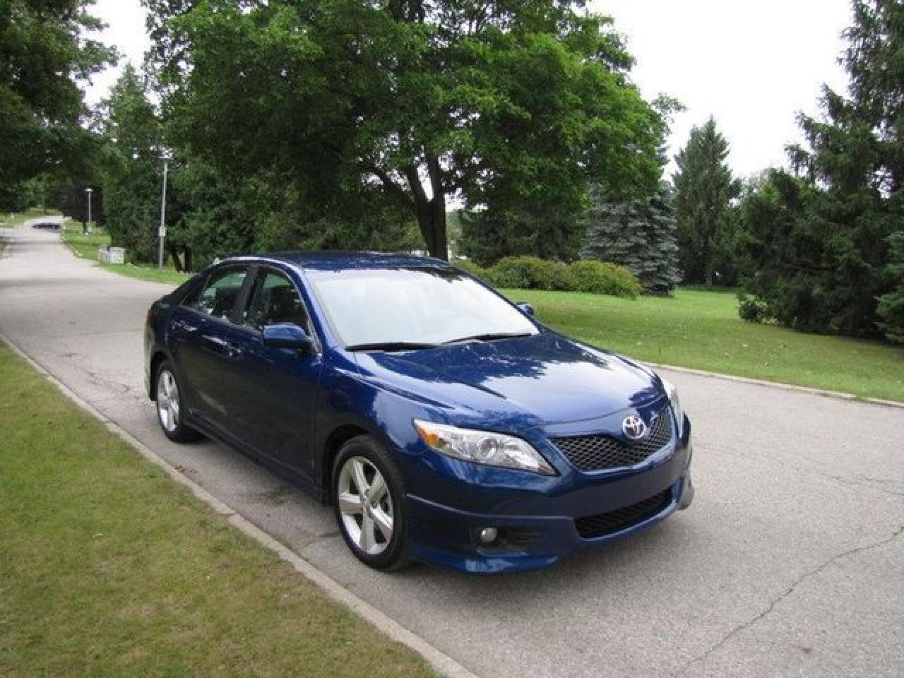This 2010 Toyota Camry 4dr SE POWER SEAT! NEW TIRES!! Sedan features a 2.5L L4 FI DOHC 16V 4 cyl Gasoline engine. It is equipped with a Automatic transmission. The vehicle is Blue with a Grey Cloth interior. It is offered with the remaining factory warranty. Over 400 BETTER used cars in stock!! PLEASE CALL 1-866-348-8146 5.99% Financing + no payments up to 6 months available on approved credit!! Free Trial Exchange!! A+ Better Business Bureau rating!! Voted Guelph's Favourite dealer 2004-2009!! Since 1961. Taxes, licensing and $5.00 OMVIC fee are extra. Better pictures at www.shopwilsons.com Former daily rental. Call for details on our Free Trial Exchange! Thank you for considering Wilsons!!! Please call 1-866-348-8146. - This Toyota is in Excellent overall exterior condition, Excellent overall interior condition, Cloth seats - Air Conditioning, Climate Control, Cruise Control, Power Steering, Power Windows, Power Door Locks, Power Mirrors, Leather Steering Wheel, Power Drivers Seat, Clock, Tachometer, Digital Info Center, Tilt Steering Wheel, Telescoping Steering Wheel, Steering Wheel Radio Controls, Driver Airbag, Passenger Airbag, Keyless Entry, ABS Brakes, Traction Control, Rear Defogger, Intermittent Wipers, AM-FM, CD Player, 17 inch Aluminum Wheels, Cloth Interior Surface - Contact The Internet Department at 866-738-6045 or leads@markwilsonsbetterusedcarstc.dealer.com for more information. -