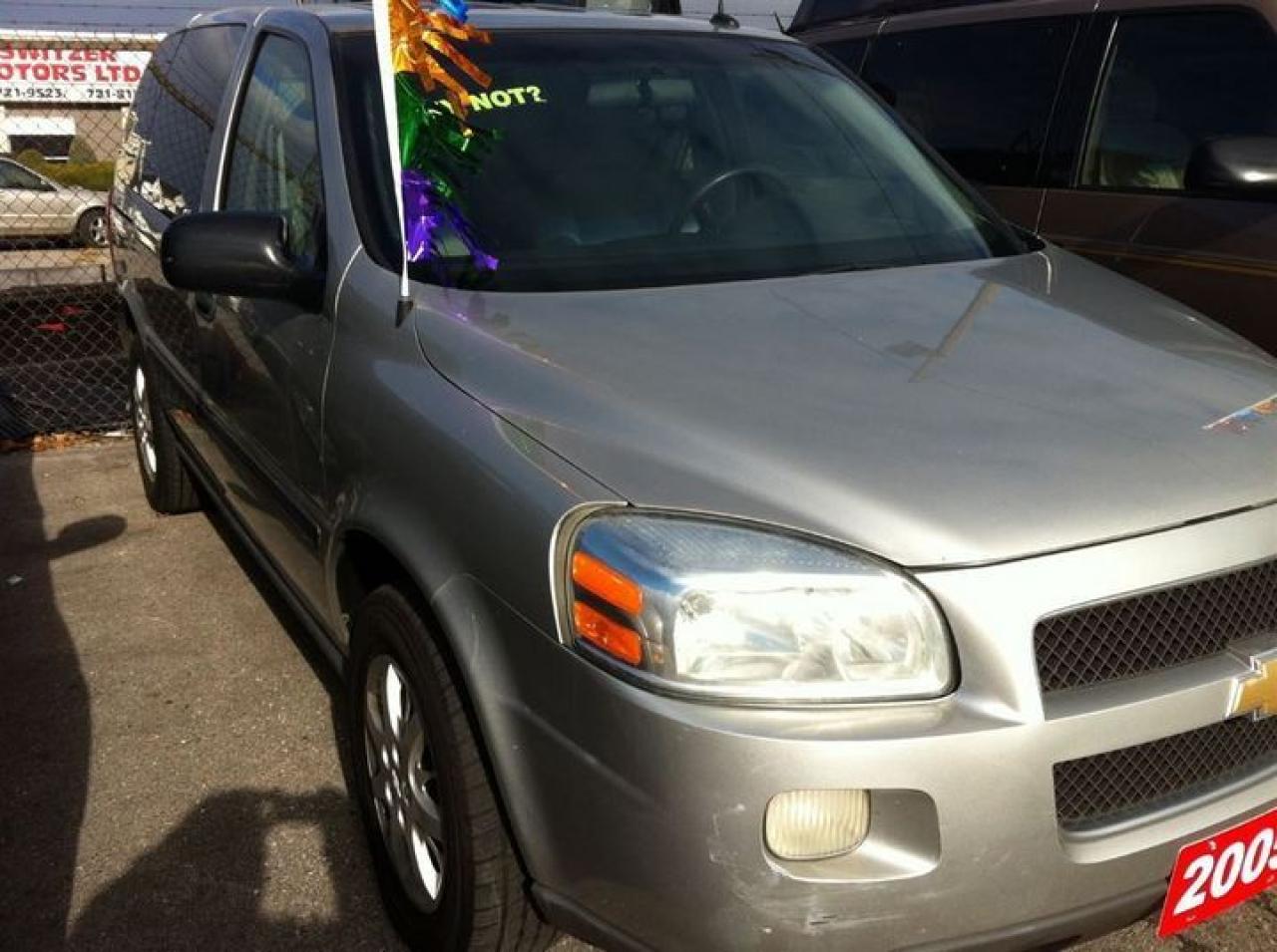 Used 2005 Chevy Uplander LS, 4-speed automatic, passenger van, silver/grey exterior with grey cloth interior, 4 doors, V6, 3.5L engine, with leather trim on the front doors, remote keyless entry, intermittent wipers, power locks, power windows, certified and e-tested for your family to use! TO VIEW ALL OF OUR INVENTORY PLEASE VISIT OUR ON-LINE SHOWROOM AT www.switzermotors.ca OR CALL US TOLL FREE AT 1888-410-4654 SO WE CAN ANSWER ALL OF YOUR QUESTIONS REGARDING THIS VEHICLE TO GET THE BEST PRICES ON OUR VEHICLES PLEASE CALL THE OWNER ON HIS CELL 905-718-1028 OR IF YOU HAVE A TRADE PLEASE CALL BOB