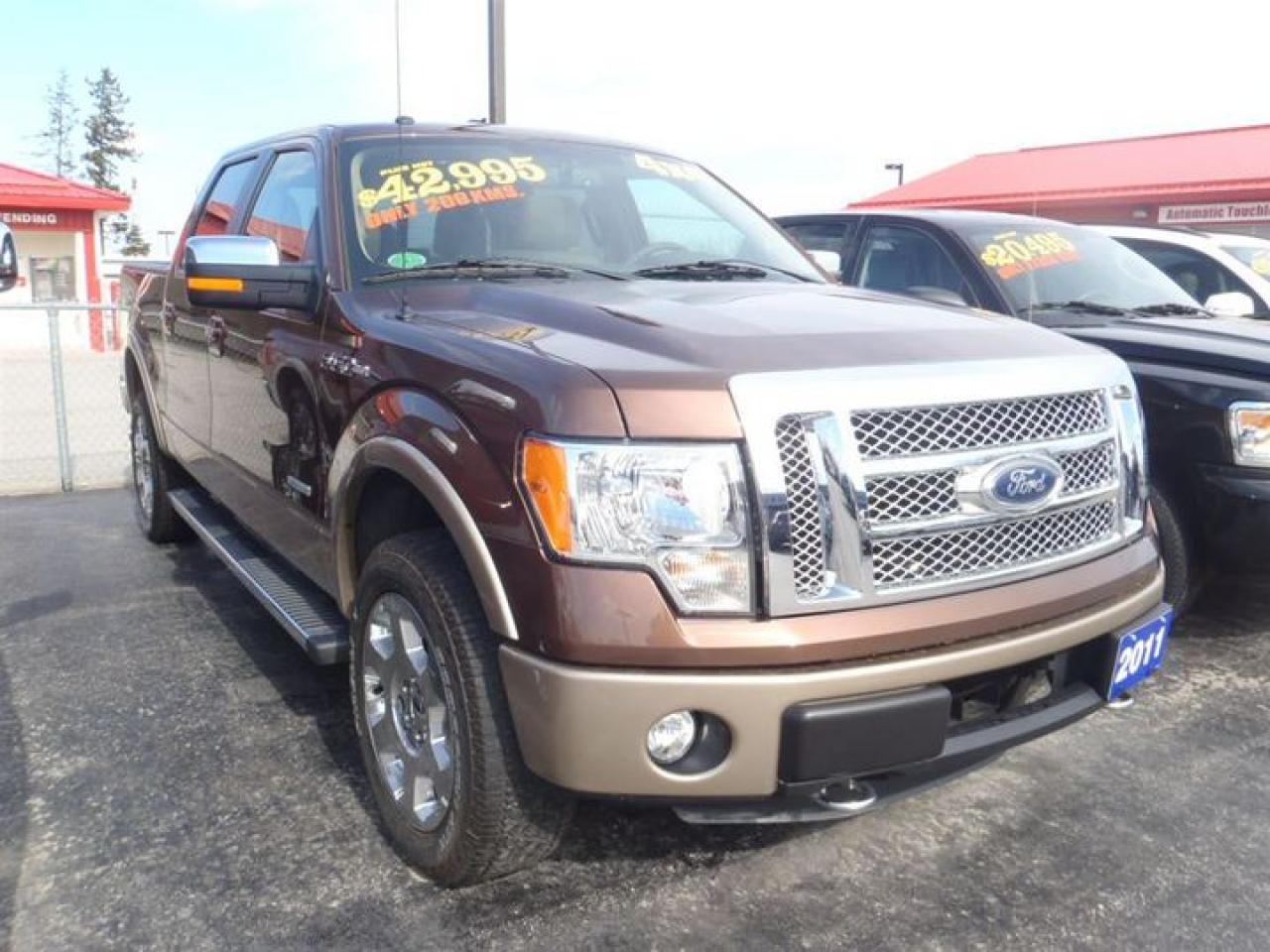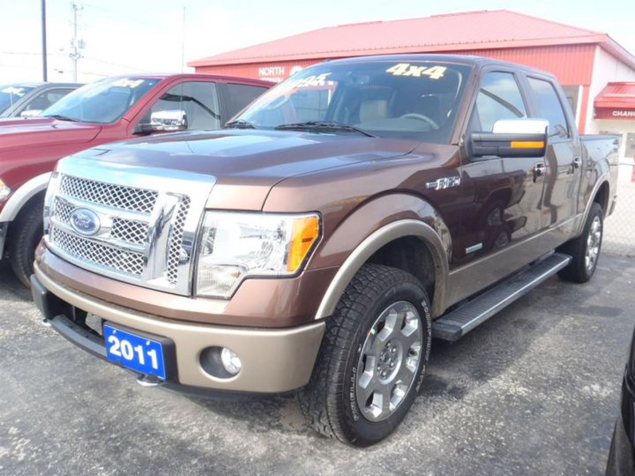 3.5L. V6 2011 GEORGOUS GOLDEN BRONZE METALLIC ON ADOBE TAN LEATHER TRIMMED SEATS,F-150 SUPERCREW 4X4 COMES WITH SHIFT ON THE FLY,TRAILER SWAY CONTROL,TRAILER TOWING SYSTEM,RUNNING BOARDS,MICROSOFT SYNC,KEYPAD ENTRY,LEATHER WRAPPED STEERING WHEEL WITH CONTROLS,MEMORY HEATED AND COOLED SEATS,4.2 LCD SCREEN,FRONT TOW HOOKS,FOG LIGHTS,POWER SLIDING REAR WINDOW,ANGULAR STEP BAR,CHROME POWER HEATED SIGNAL MIRRORS,POWER MOONROOF,SHORT BOX. LOADED!!!! 30 Years in business, A+ BBB rated company, 200 units in stock, 2 locations. Home of the Warranty for Life, full service department, on the spot financing. Bad credit welcomed. Winner of Reader Choice Award for the best dealer in the Listowel area. Winner Of Business Of The Year Award from the North Perth Chamber Of Commerce! Free carproof or carfax. No extra fees no extra costs. All prices + HST & Licensing. Save money! (Thanks for shopping at STOP23 AUTO SALES LTD).