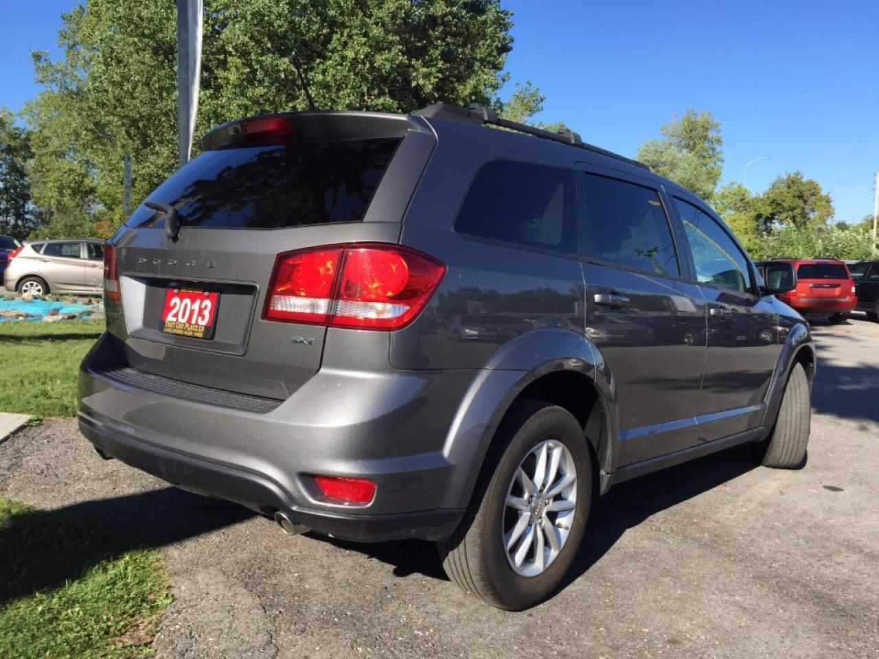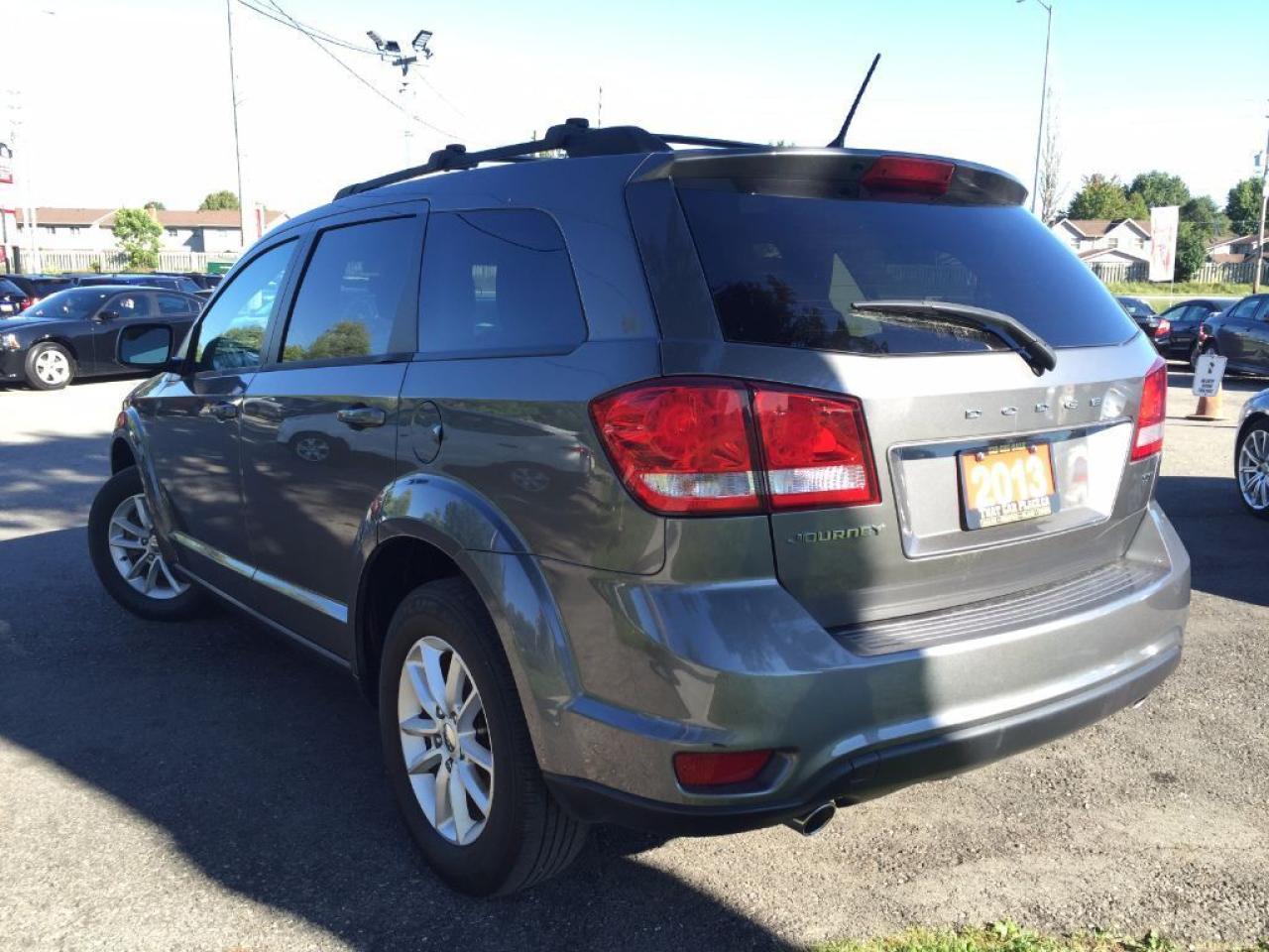 This 2013 Dodge Journey SXT has a CLEAN CARPROOF and comes loaded with Bluetooth, Tinted Windows, USB/AUX/CD/Mp3 connectivity for your iPod, iPhone or Android music playing device, Push Button Start, Spacious Hidden Rear Floor Compartments, Rear Privacy/Retractable Trunk Cover and is Extremely Clean both Inside & Out. Call 1-519-686-7253 or Visit 443 Exeter Rd.