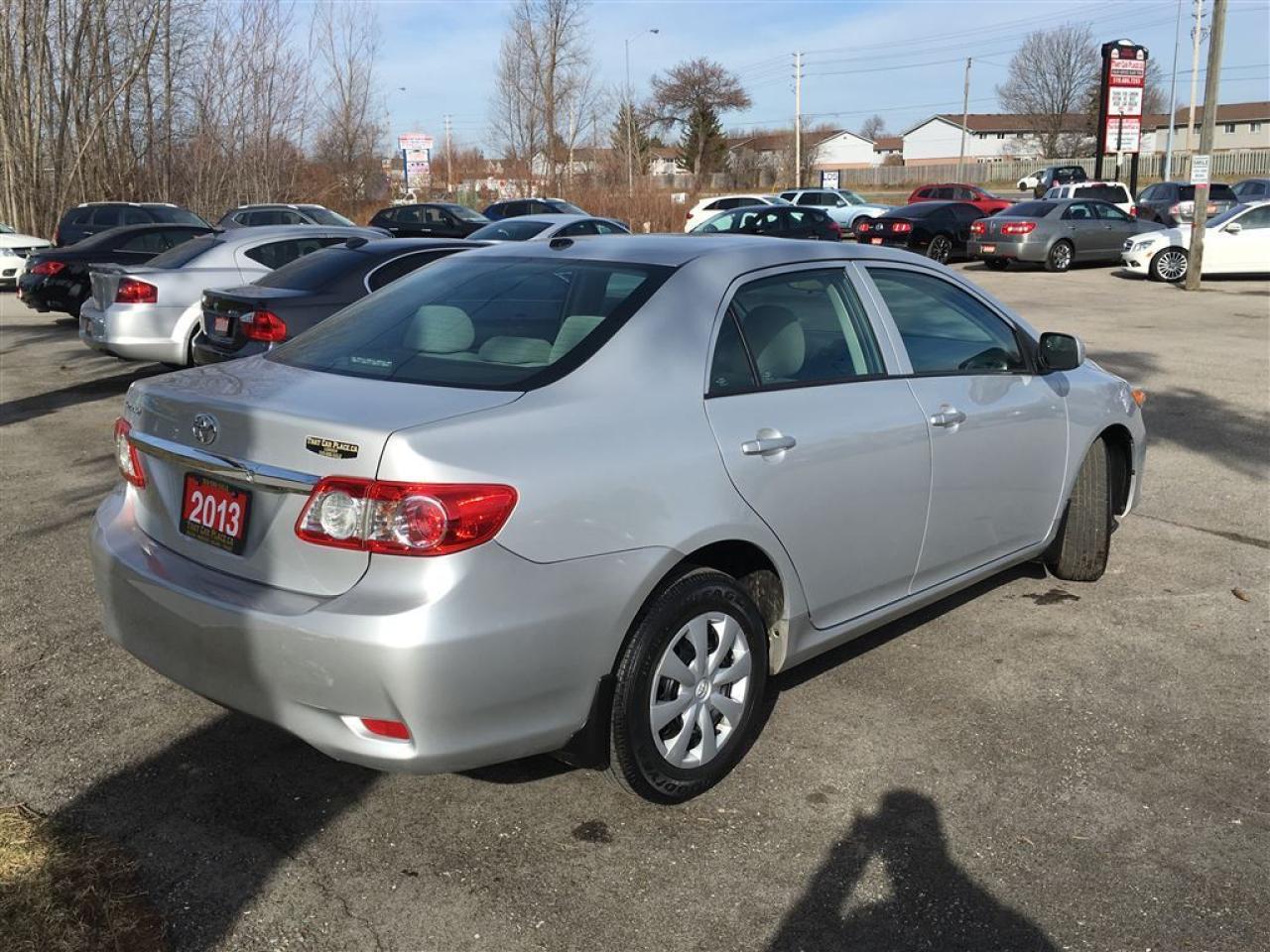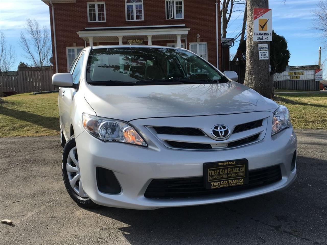 Step into the 2013 Toyota Corolla with only 49.000 kilometers and a 1.8 litre engine. This compact beauty has alloy wheels antilock brakes cruise control tinted windows and a traction control system. Commercial free satellite radio w the option of a entertainment package Bluetooth w phone connect hands free and always in touch as well as CD player w USB input. All power door locks mirrors windows and power sunroof. So come on in and test drive one before its gone or apply online at www.@thatcarplace.caVehicle is sold Safety and Emission Tested. HST and Licensing is extra.That Car Place in business for over 27 years since 1989 Voted #1 Best Used Car Dealership in London Ontario for 2014 & 2015 & 2016 Top Choice Award for 2015 & 2016 as well as Londons Readers Choice Award 2014 & 2015. That Car Place holds a solid A Better Business Bureau rating and achieved the most likes on all Social Media ever in the used car dealership industry.That Car Place uses an exclusive third party tool that accurately prices and monitors vehicle prices competitively to guarantee customers best value. That is right NO NEED FOR HAGGLING! No Hidden admin fees. No gimmicks just honesty and integrity at no additional charge.We make the buying process Simple and StressFree our reviews speak for themselves. Google httpswww.google.cawebhpsourcedchromeinstant&ion1&espv2&ieUTF8#qthat%20car%20place&lrd0x882ef3f1a412803b0x4ac067228e36535c1Dealer Rater httpwww.dealerrater.cadealerThatCarPlacereview43090N49.com httpswww.n49.combiz108920thatcarplaceonlondon443exeterrdBBB httpwww.bbb.orgwesternontariobusinessreviewsautodealersusedcarsthatcarplaceinlondonon17190customerreviewscachetyAll vehicles go under an extensive inspection Receive a SemiSynthetic Oillubefilter. Any vehicle with below 50% brakes will be replaced! A detailed Free Car Proof Report is including with every vehicle to present the vehicles history or accidents. Full Safety inspection with 30 days 100% safety related items warranty done by That Car Place along with an Emission test and to top it off with a Full cleanup and Detailing. Our Finance Specialists provides same day approvals and work hard 247 to ensure achieving the lowest interest rate possible best terms and fully open end loans.Minimum qualifications. Whether it's Good credit Bad credit No Credit Bankruptcy Proposal Divorce Repossessions $0 down or simply low affordable payments we can get it done for you. Apply securely with confidence at httpthatcarplace.caapplyVisit us ThatCarPlace.ca 443 Exeter Road London Ontario Or call us 519686SALE (7253) Or toll free 18669691999 Or by email sales@thatcarplace.ca**Payments are based off qualifying monthly term $0 down & 4.9% interest. Qualifying term and rate of borrowing varies by lender. Example The cost of borrowing on a vehicle with a purchase price of $10000 at 4.9% over 60 month term is $1499.78. Rates are subject to change without notice.