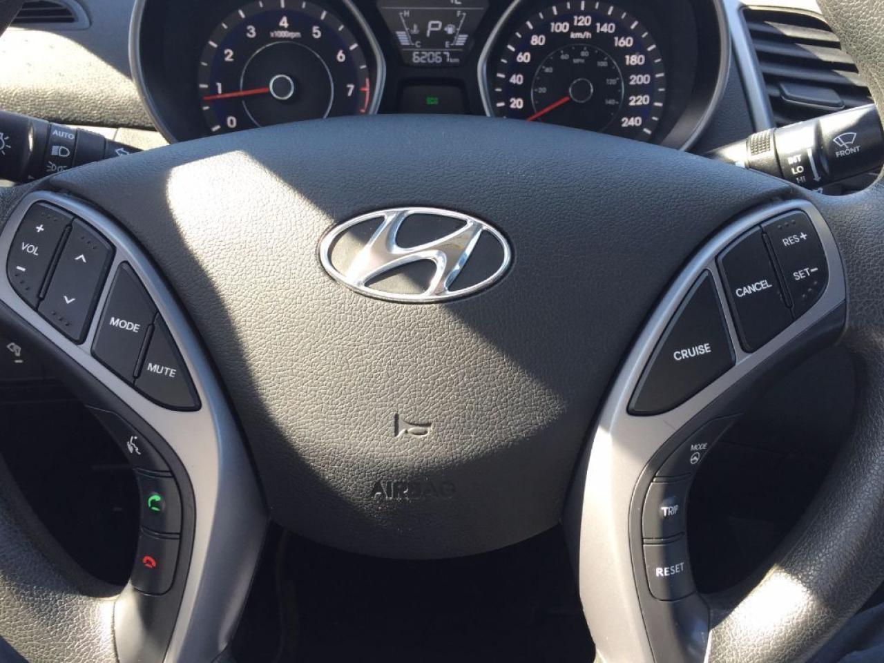 This 2015 Hyundai Elantra GL has a CLEAN CARPROOF and is LOADED!!! Comes with BLUETOOTH, HEATED FRONT ROW SEATS, USB/AUX/MP3/CD connectivity for your IPHONE/IPOD or ANDROID music playing device, Steering Wheel Audio Controls, Comfortable Interior with Spacious Trunk and is Great on Gas. Call 1-519-686-7253 or Visit 443 Exeter Rd.