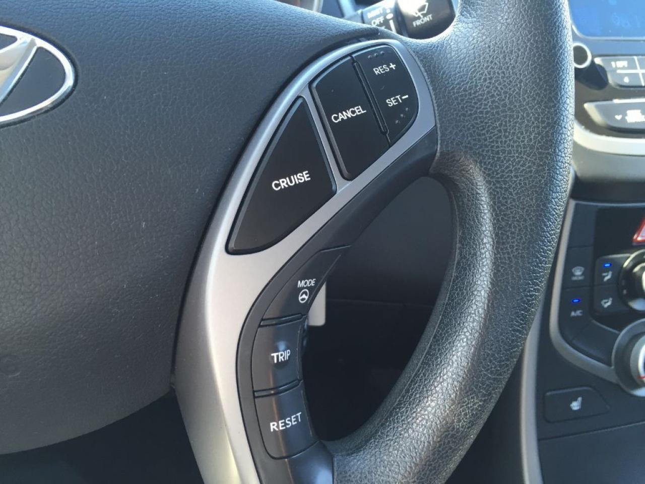 This 2015 Hyundai Elantra GL is LOADED!!! Comes with BLUETOOTH, USB/AUX/CD/MP3 connectivity for your IPOD/IPHONE or ANDROID music playing device, HEATED FRONT ROW SEATS, Cruise Control, Keyless Entry plus many more features. Call 1-519-686-7253 or Visit 443 Exeter Rd.Â