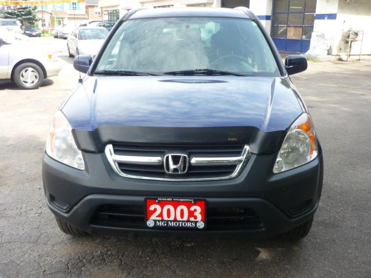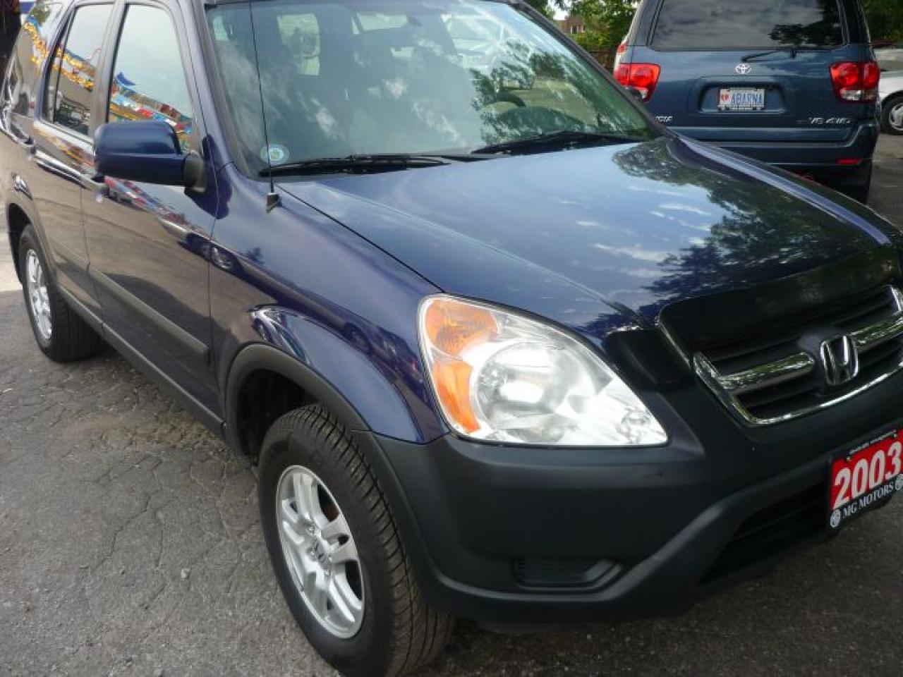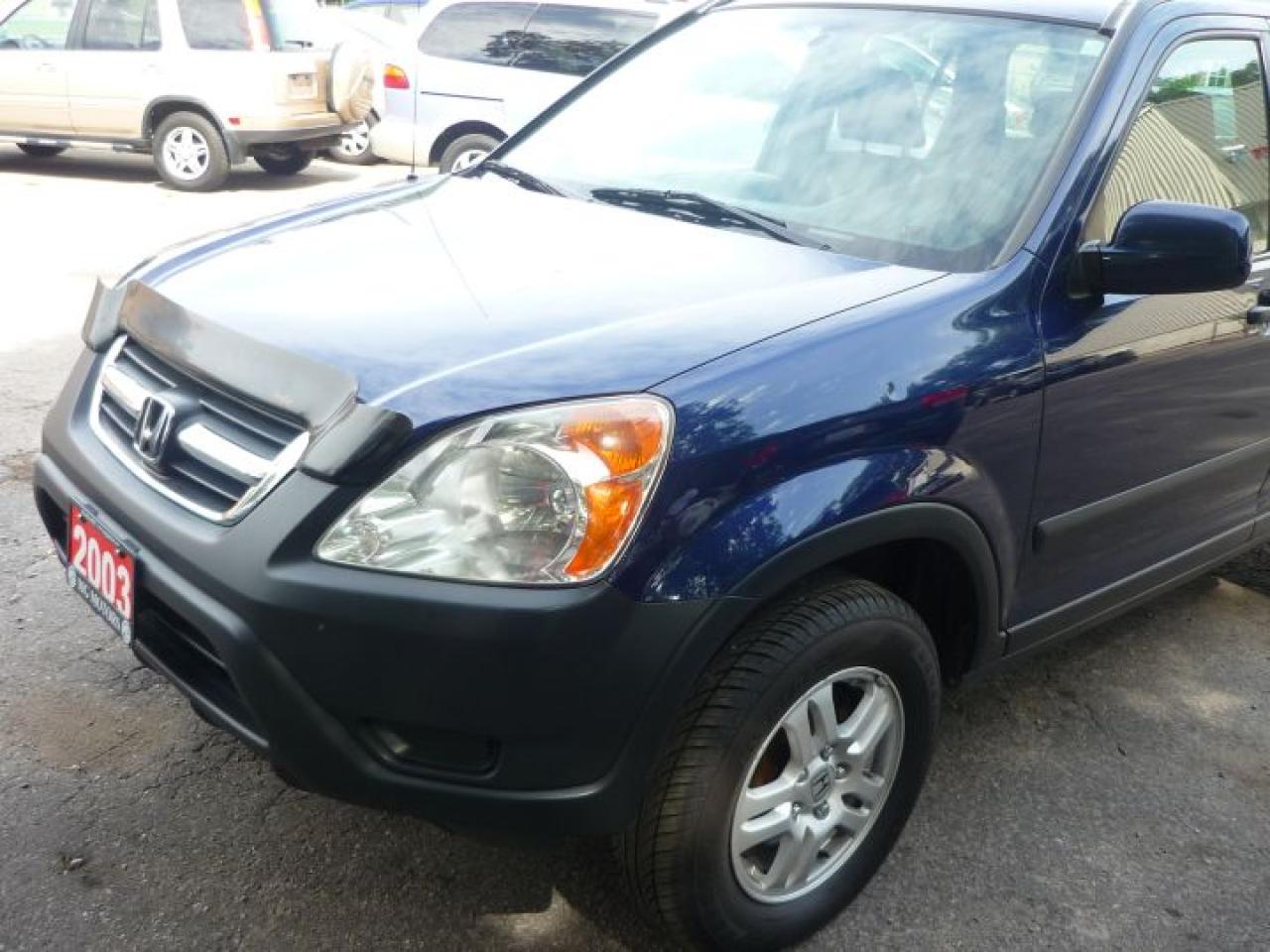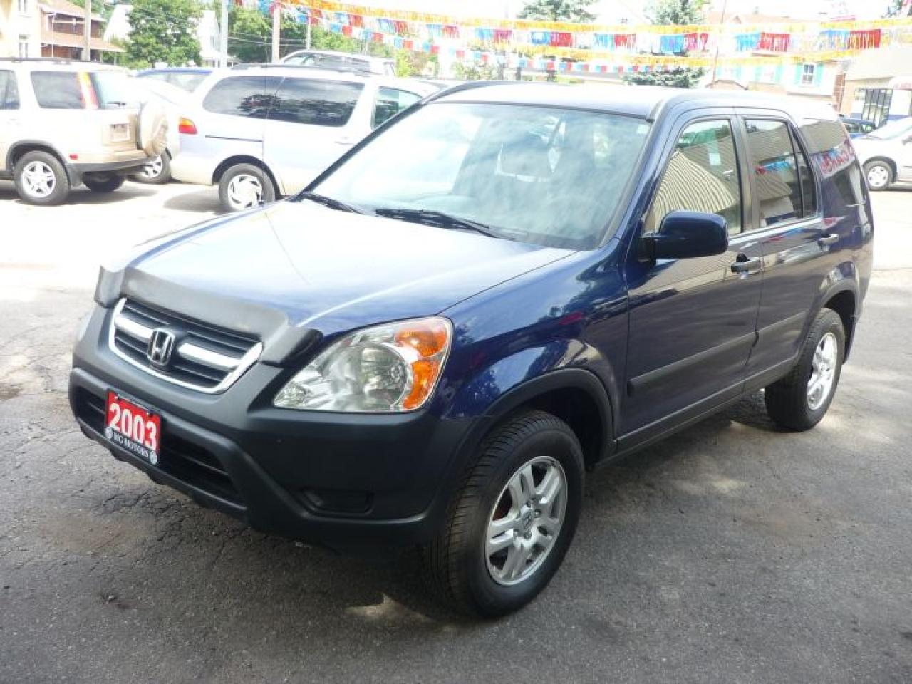 2003 HONDA CR-V EX AWD. extra clean CR-V, economical and responsive 2.4 litre 4 cylinder engine with an automatic transmission. Lots of features including air conditioning, tilt steering column, cruise control, power windows, power door locks, power mirrors, AM/FM cassette with 6 disc CD, alloy wheels, ABS, side air bags, tinted glass and more, Blue with black cloth interior, only $8500.00 plus HST and licensing.