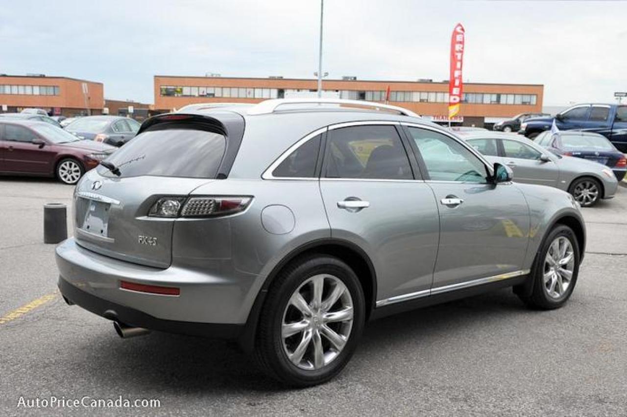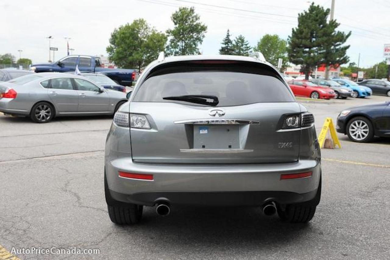 TRUST YOUR DEALER!! Online Credit App, Free CarProof History Reports & 300 vehicles @ www.autopricecanada.com. Certified, safetied & E-tested! Warranty with every vehicle! 06 Infiniti FX45 AWD Tech Pkg,NAVIGATION,Rearview cam,DVD,Leather,Sunroof,cd Changer,power/heated,full power group,d/climate controls,steering controls,,abs,traction,Smart Access key,Alloys...A must see!! CREDIT PROBLEMS? www.autopricecanada.com for 24 Hr Easy, Secure, Online Credit Application?get approved before you shop! REMEMBER, RESEARCHING YOUR DEALER IS AS IMPORTANT AS RESEARCHING YOUR VEHICLE! COMPARE OUR EQUIPMENT, MILEAGE AND PRICING!!!