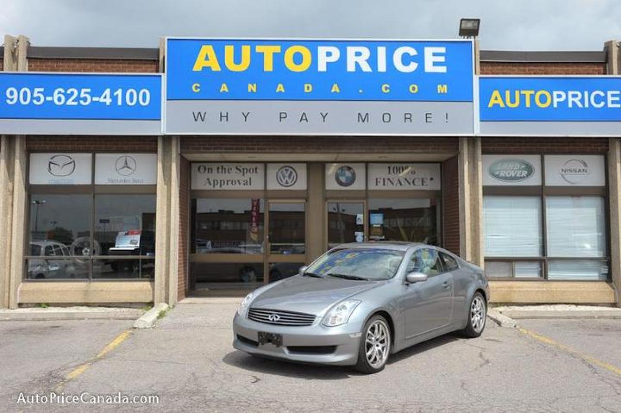 CREDIT PROBLEMS? www.autopricecanada.com for 24 Hr Easy, Secure, Online TRUST YOUR DEALER!! Online Credit App, Free CarProof History Reports & 300 vehicles @ www.autopricecanada.com. Certified, safetied & E-tested! Warranty with every vehicle!!!06 Infiniti G35 coupe,Sport,6-Speed,leather,Sunroof,pwr seat,full power group,bose cd changer ,steering controls,Traction control,abs,keyless entry,Alloy wheels,spoiler,Absolutely Gorgeous!!! All Original Accident free!!! Credit Application?get approved before you shop!REMEMBER, RESEARCHING YOUR DEALER IS AS IMPORTANT AS RESEARCHING YOUR VEHICLE! COMPARE OUR EQUIPMENT, MILEAGE AND PRICING!!!CB1791A52DA51D