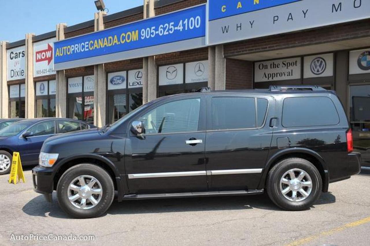 TRUST YOUR DEALER!! Online Credit App, Free CarProof History Reports & 300 vehicles @ www.autopricecanada.com. 1-866-399-7469, safetied & E-tested! Warranty with every vehicle! 06 Infiniti QX56,Navigation,DVD, AWD ,7 Passenger,leather, full power group,Sunroof,p/seat/heated/memory seats,steering controls,Cd Changer,air bags,abs,keyless entry,Alloys,Running Boards & more...!!!CREDIT PROBLEMS? www.autopricecanada.com for 24 Hr Easy, Secure, Online Credit Application?get approved before you shop! REMEMBER, RESEARCHING YOUR DEALER IS AS IMPORTANT AS RESEARCHING YOUR VEHICLE! COMPARE OUR EQUIPMENT, MILEAGE AND PRICING!!!CB149EA12BA61E
