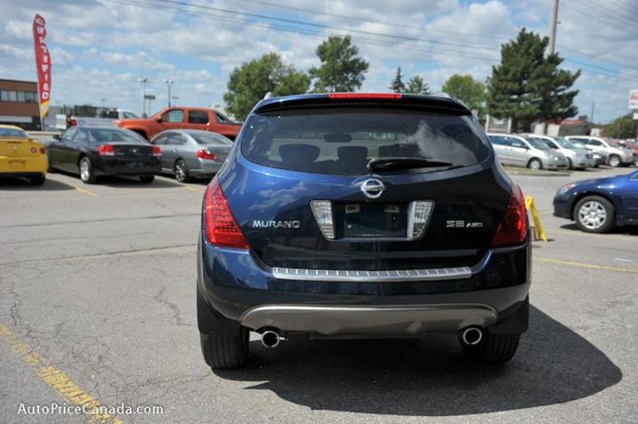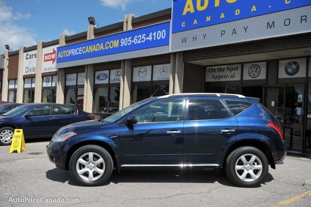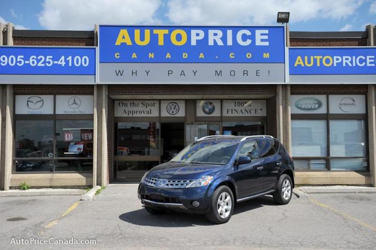 TRUST YOUR DEALER!! Online Credit App, Free CarProof History Reports & 300 vehicles @ www.autopricecanada.com. Certified, safetied & E-tested! Warranty with every vehicle!06 Murano SE PACKAGE,3.5L,Leather,P/glass roof,rearview cam,18in wheels,full power group,p/seat,heated seats,d/climate controls,steering controls,p/adjusting pedals,Bose sound w/6 indash cd/cass,F+S air bags,auto/lights,abs,keyless entry,1 owner,off lease,all original,local(Canadian vehicle),Very sharp!!! CREDIT PROBLEMS? www.autopricecanada.com for 24 Hr Easy, Secure, Online Credit Application?get approved before you shop! REMEMBER, RESEARCHING YOUR DEALER IS AS IMPORTANT AS RESEARCHING YOUR VEHICLE! COMPARE OUR EQUIPMENT, MILEAGE AND PRICING!!!CB149FA52FA21F