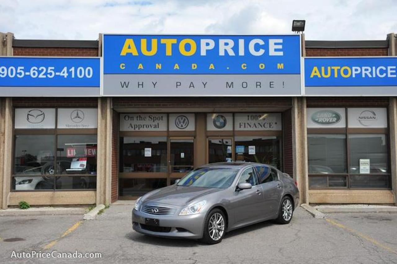 TRUST YOUR DEALER!! Online Credit App, Free CarProof History Reports & 300 vehicles @ www.autopricecanada.com.1-866-399-7469, safetied & E-tested! Warranty with every vehicle!!!07 G35 S,TECH PKG,SPORT,NAVIGATION,REAR CAM,Leather,P/glass roof,6/indash cd,d/power seats w/memory,d/climate controls,heated seats,steering controls,full power group,Spoiler,steering shift controls,F+S air bags,abs,traction,keyless entry,All original accident free,Absolutely Stunning!!CREDIT PROBLEMS? www.autopricecanada.com for 24 Hr Easy, Secure, Online Credit Application?get approved before you shop! REMEMBER, RESEARCHING YOUR DEALER IS AS IMPORTANT AS RESEARCHING YOUR VEHICLE! COMPARE OUR EQUIPMENT, MILEAGE AND PRICING!!!CB1597A928A714