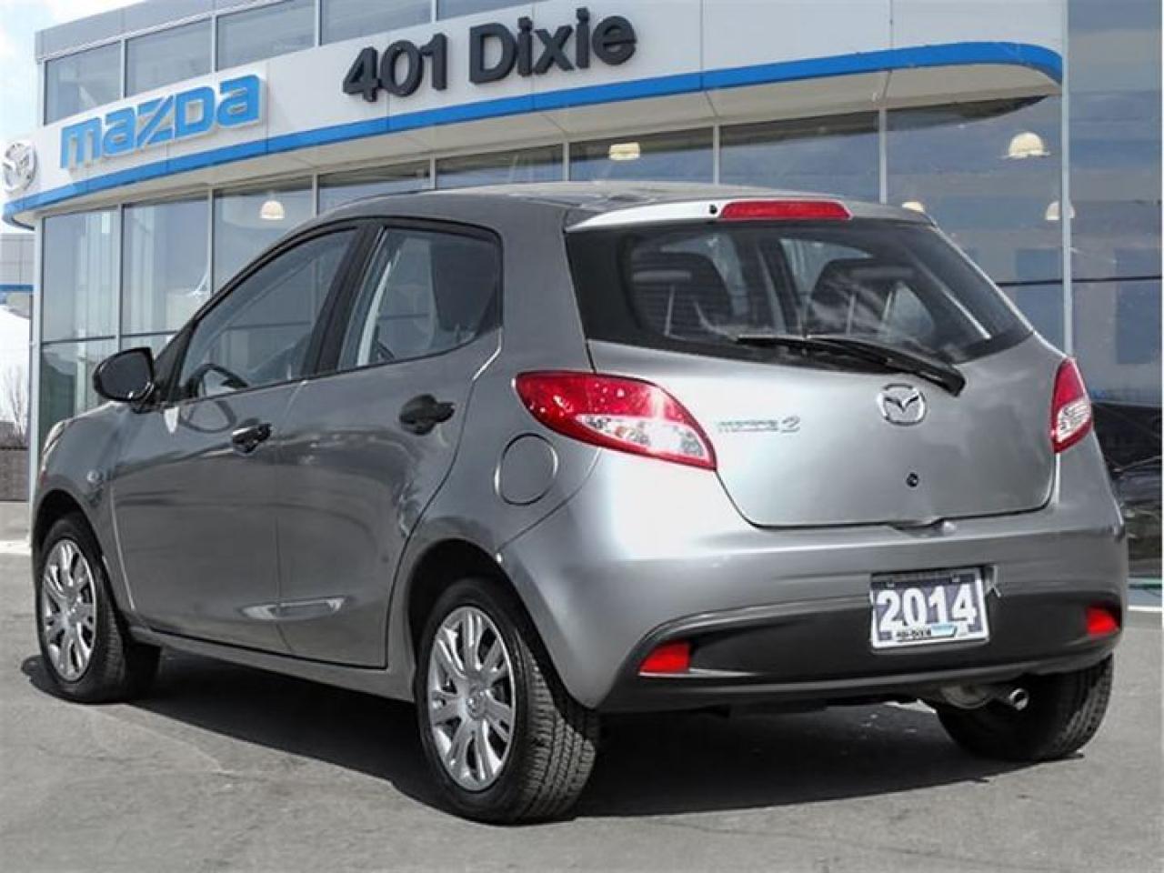 POWER TRAIN WARRANTY FOR 5 YEARS OR 100,000 KM (FROM IN-SERVICE DATE) THREE YEARS OR 80,000 KM COMPREHENSIVE ALONG WITH 24/7 EMERGENCY ROADSIDE ASSISTANCE. Its not about the size; its about how it drives. If youre looking for practical, stylish and economical, our 2014 Mazda2 is the perfect compact car thats value-packed with everything youd expect in a Mazda. If youre a student on a tight budget or a recent grad trying to stretch your dollar, this vehicle will save you a pretty penny every time you fill up. You could say the car has a boxy look to it but theres a sporty-ness about it as well that makes it look a lot pricier than your average compact hatchback. Our Mazda2 comes in a GX trim which means youll be treated to power door locks, power windows, tilt steering, ABS with electronic brake force distribution, dynamic stability control and traction control. In a modern cloth interior youll notice that the Mazda2s features are visible and easy to reach. Remember, our objective is to get you cruising away with a smile on your face and a few extra dollars in your pocket. No credit, bad credit, no problem. Come in today and join the 401-Dixie Mazda Family because were not trying to sell you a car, were selling you a lifestyle. Call in and book your personalized test drive. ***PLEASE NOTE, THIS IS A PREVIOUSLY OWNED RENTAL CAR.***