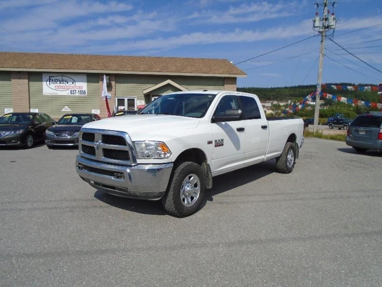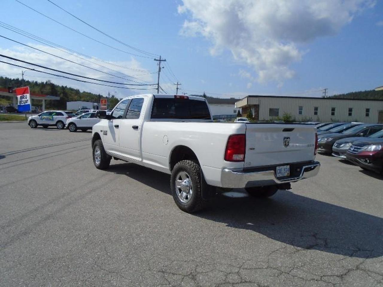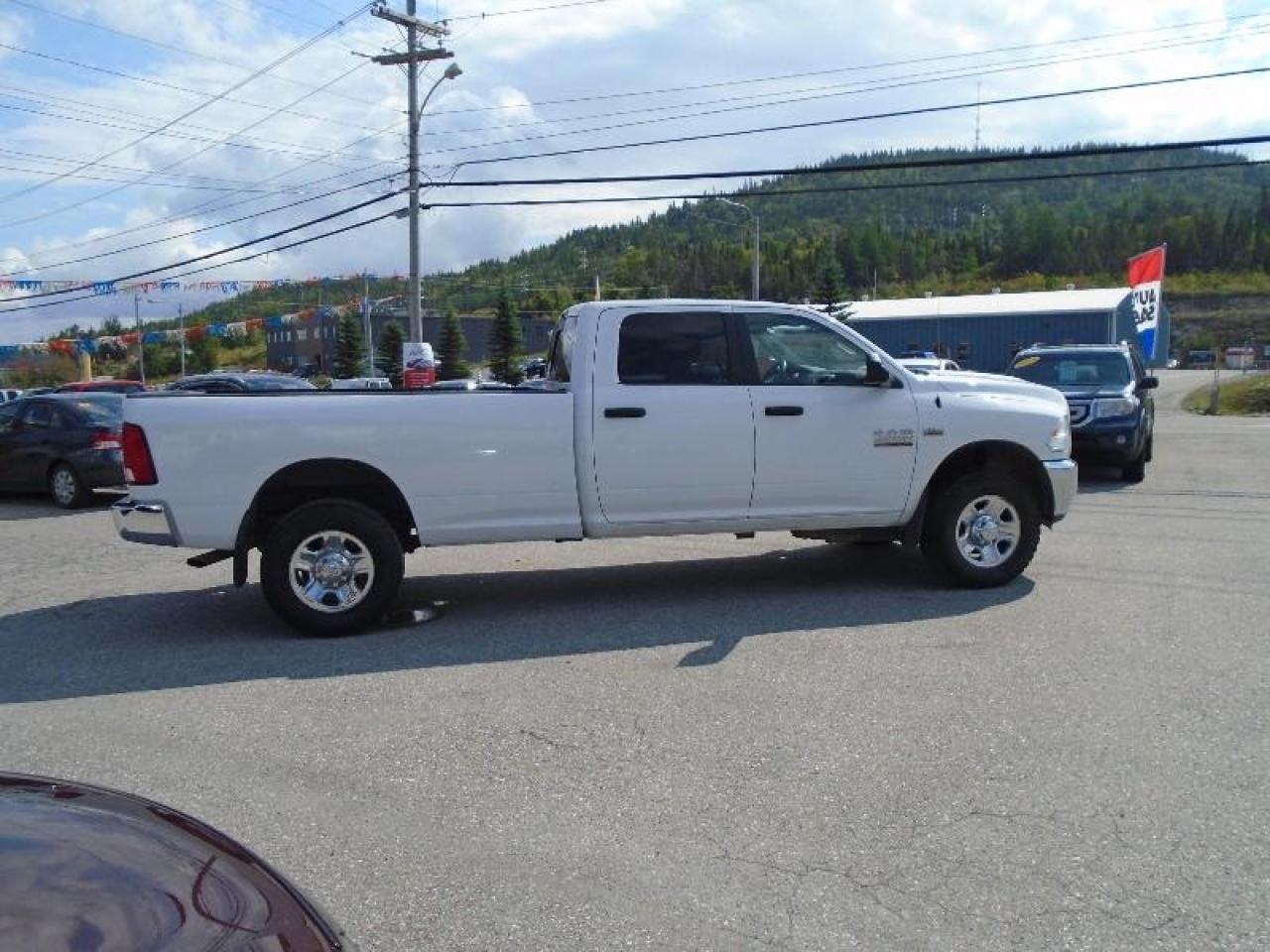 THIS 2015 DODGE RAM 3500 CREW CAB 4X4 HAS THE RARE 8" FOOT BOX AND IS READY TO GO TO WORK WITH LOTS OF ROOM FOR THE WORK TEAM. HAS BEEN FULLY INSPECTED AND COMES EQUIPPED WITH THE POWERFUL 5.7 LITRE V8 HEMI, POWER WINDOWS, LOCKS & MIRRORS, CRUISE CONTROL, AIR CONDITIONING, MP3, BLUETOOTH, BUILT IN FACTORY TRAILER BRAKE CONTROLLER, POWER REAR SLIDER PLUS LOTS MORE!!