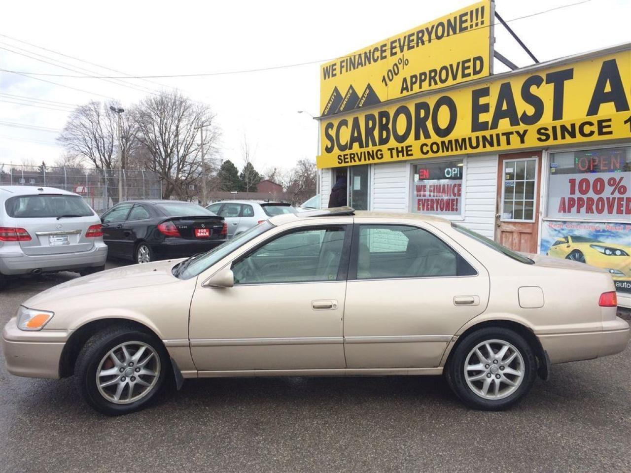 WE FINANCE EVERY ONE , 23 YEARS SERVING THE COMMUNITY,SAME LOCATION, SAME#4162870020 ------------------------------------------------------------------------------------------------------------------------------------ 4D , AUTO , XLE , WITH POWER MOON ROOF AND LEATHER INTERIOR , FULLY LOADED WITH POWER/HEATED SEATS AND ALLOY , EQUIPPED WITH AIR CONDITION , GOLD EXTERIOR ON TAN LEATHER INTERIOR , POWER WINDOWS , POWER DOOR LOCK , CRUISE CONTROL , TILT STEERING , STEERING CONTROL , POWER MIRRORS , INTERIOR TRIMS AND MUCH MORE , FULLY LOADED , LOCAL NEW CAR TRADE , LOOKS AND DRIVES LIKE NEW ------------------------------------------------------------------------------------------------------------------------------------ PLEASE MAKE SURE ALL INFORMATION AND OPTIONS ( AIR CONDITION) ARE CORRECT AND WORKING PRIOR TO PURCHASE , ADVERTISING COULD HAVE MISTAKES (COPY &PAST) PLEASE READ ALL DOCUMENTATION ( HISTORY ) AND BILL OF SALE , DUC FEE $495 WILL APPLY IN FINANCE DEALS ------------------------------------------------------------------------------------------------------------------------------------ ALL FUNDS HAS TO BE CERTIFIED ONLY . *All Prices are unfit prices plus HST. Vehicle is not drivable if not certified and not E-tested. SAFETY AND E TEST ARE AVAILABLE FOR $695 WITH 36 DAYS SAFETY WARRANTY ON ALL THE SAFETY ITEMS ------------------------------------------------------------------------------------------------------------------------------------ At SCARBORO E AUTO LTD we try and make your dreams come true at www.scarboroeauto.ca Good credit, bad credit or no credit at all. Our team of finance managers have worked their magic arranging finance or a lease for many of scarboro e auto?s customers. scarbro e auto, used car and all makes certified used vehicle volume dealer is located in scarborough ( pickering boarder) 4663 Kingston roads. Just 2 lights east of morning side scarborough. Not far from pickering , Ajax, Whitby, Oshawa, Markham, Toronto, New market, Richmond hill, Thorn hill, Agincourt, Milliken, Malvern and much of the greater Toronto area or GTA. if you are looking for a used Honda civic, a used Honda , a used toyota , a used nissan, a used mazda, a used , a used suzuki, a used kia, a used subaru, a used ford,a used chevy,a used gmc, a used pontiac, a used buick, a used bmw , a used mercedes , a used vw , a used audi , a used van or truck. scarboro e auto is waiting for you with one of the largest inventories in the greater Toronto and Pickering area. scarboro e auto has a great selection of certified used vehicles. our certified used vehicles are listed in auto trader, Toronto?s kijiji and our own web site www.scarboroeauto.ca to be eligible as one of the oldest certified used car . scarboro e auto offer preferred finance rates, powertrain warranty, e tested, safety and certified. Come in or call us at 416 287 0020 and ask us about a used car , a used van, a used SUV. Do not wait for a Saturday sale to take advantage of one of the biggest selection of used low price cars, vans and used SUV's in Ontario. scaroboro e auto ltd is your best