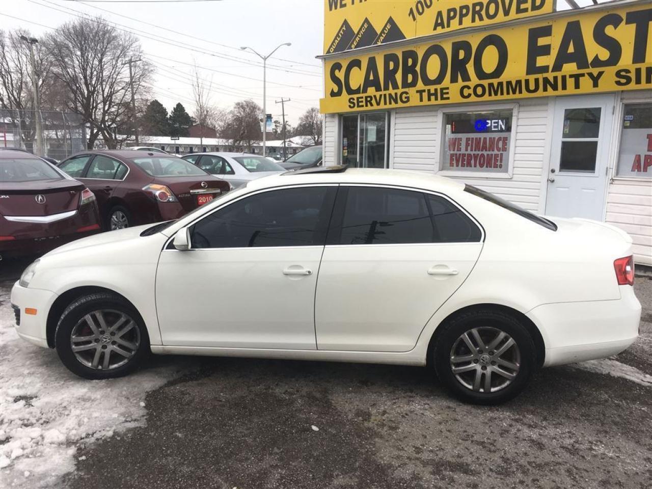 WE FINANCE EVERYONE! 25 YEARS SERVING THE COMMUNITY, SAME LOCATION, SAME PHONE # 416-287-0020. JOIN us on TWITTER @Scarboro_East and LIKE us on FACEBOOK @ScarboroEast for an early lead on upcoming inventory, monthly promotions, tips and advice ------------------------------------------------------------------------------------------------------------------------------------ 4D , 6 SPEED , TDI (DIESEL) WITH POWER MOON ROOF AND GREY CLOTHE INTERIOR , FULLY LOADED WITH ALLOY WHEELS AND FOG LIGHTS , POWER SEAT , EQUIPPED WITH AIR CONDITION, WHITE EXTERIOR , POWER WINDOWS , POWER DOOR LOCK , CRUISE CONTROL , TILT STEERING , POWER STEERING CONTROL , HEATED SEATS , INTERIOR TRIMS AND MUCH MORE ,220000KM , CLEAN CAR PROOF , LOCAL NEW CAR TRADE , LOOKS AND DRIVES LIKE NEW! ------------------------------------------------------------------------------------------------------------------------------------ PLEASE MAKE SURE ALL INFORMATION AND OPTIONS ( AIR CONDITION) ARE CORRECT AND WORKING PRIOR TO PURCHASE , ADVERTISING COULD HAVE MISTAKES (COPY &PAST) PLEASE READ ALL DOCUMENTATION ( HISTORY ) AND BILL OF SALE , DUC FEE $495 WILL APPLY IN FINANCE DEALS ------------------------------------------------------------------------------------------------------------------------------------ ALL FUNDS HAS TO BE CERTIFIED ONLY . *All Prices are unfit prices plus HST. Vehicle is not drivable if not certified and not E-tested. SAFETY AND E TEST ARE AVAILABLE FOR $695 WITH 36 DAYS SAFETY WARRANTY ON ALL THE SAFETY ITEMS , LICENSING AND GAS PLUS $10 OMVIC FEE ARE EXTRA ------------------------------------------------------------------------------------------------------------------------------------ At SCARBORO E AUTO LTD we try and make your dreams come true at www.scarboroeauto.ca Good credit, bad credit or no credit at all. Our team of finance managers have worked their magic arranging finance or a lease for many of scarboro e auto?s customers. scarbro e auto, used car and all makes certified used vehicle volume dealer is located in scarborough ( pickering boarder) 4663 Kingston roads. Just 2 lights east of morning side scarborough. Not far from pickering , Ajax, Whitby, Oshawa, Markham, Toronto, New market, Richmond hill, Thorn hill, Agincourt, Milliken, Malvern and much of the greater Toronto area or GTA. if you are looking for a used Honda civic, a used Honda , a used toyota , a used nissan, a used mazda, a used , a used suzuki, a used kia, a used subaru, a used ford,a used chevy,a used gmc, a used pontiac, a used buick, a used bmw , a used mercedes , a used vw , a used audi , a used van or truck. scarboro e auto is waiting for you with one of the largest inventories in the greater Toronto and Pickering area. scarboro e auto has a great selection of certified used vehicles. our certified used vehicles are listed in auto trader, Toronto?s kijiji and our own web site www.scarboroeauto.ca to be eligible as one of the oldest certified used car . scarboro e auto offer preferred finance rates, powertrain warranty, e tested, safety and certified. Come in or call us at 416 287 0020 and ask us about a used car , a used van, a used SUV. Do not wait for a Saturday sale to take advantage of one of the biggest selection of used low price cars, vans and used SUV's in Ontario. scaroboro e auto ltd is your best