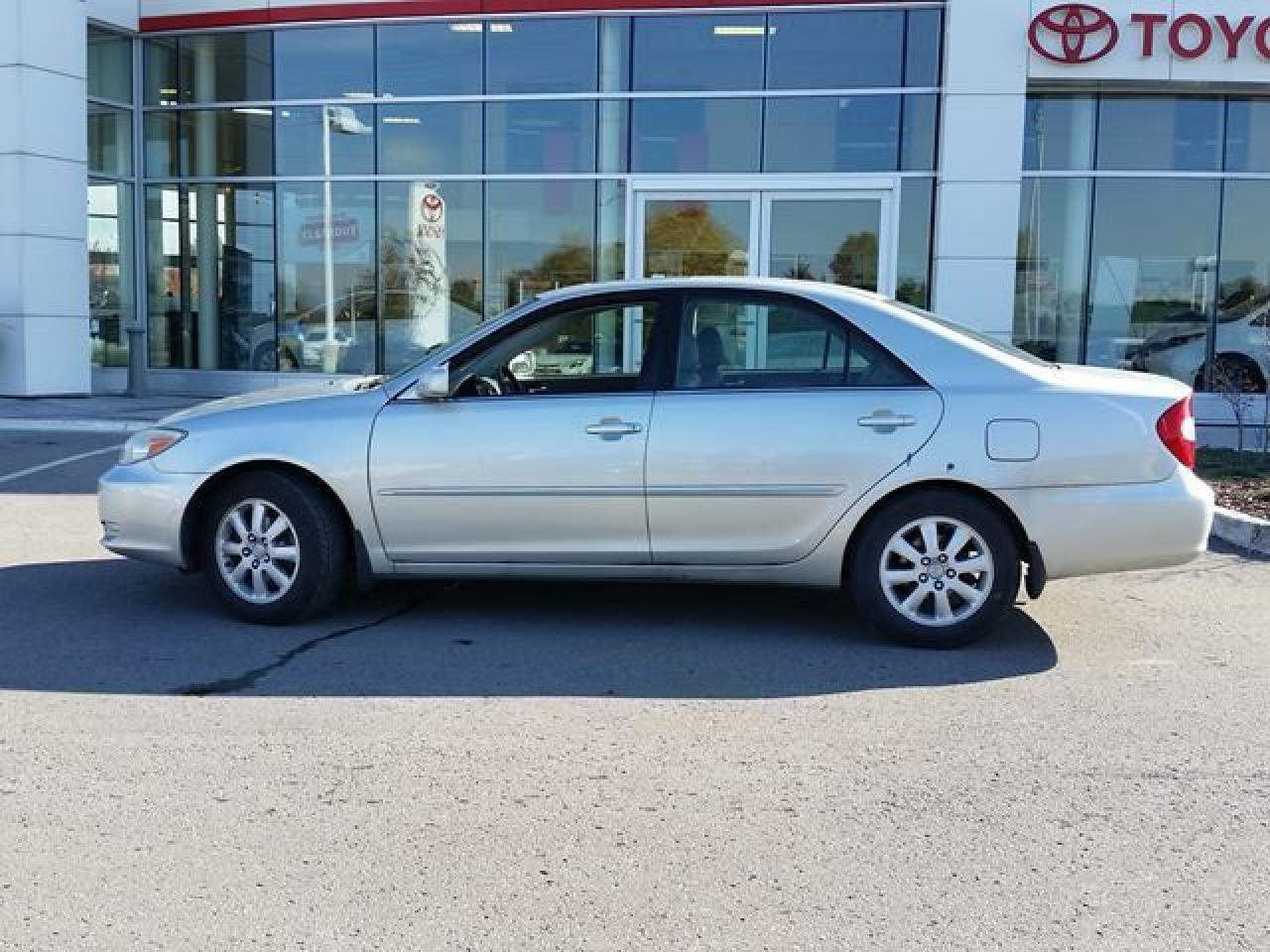 This 2002 Toyota Camry is being offered fully dealer certified and e-tested. This classic sedan is equipped with Leather Seats, MoonRoof, Heated Seats, Cruise Control, Power Windows / Locks / Mirrors and much more! Recent reconditioning on this Camry includes a Front Brake Service, NEW Front Brake rotors, a Rear Brake Service and has over 90% on the front and Rear Brake Pads and over 80% life left on the Tires. Call in for more information and to book your Road Test Today!