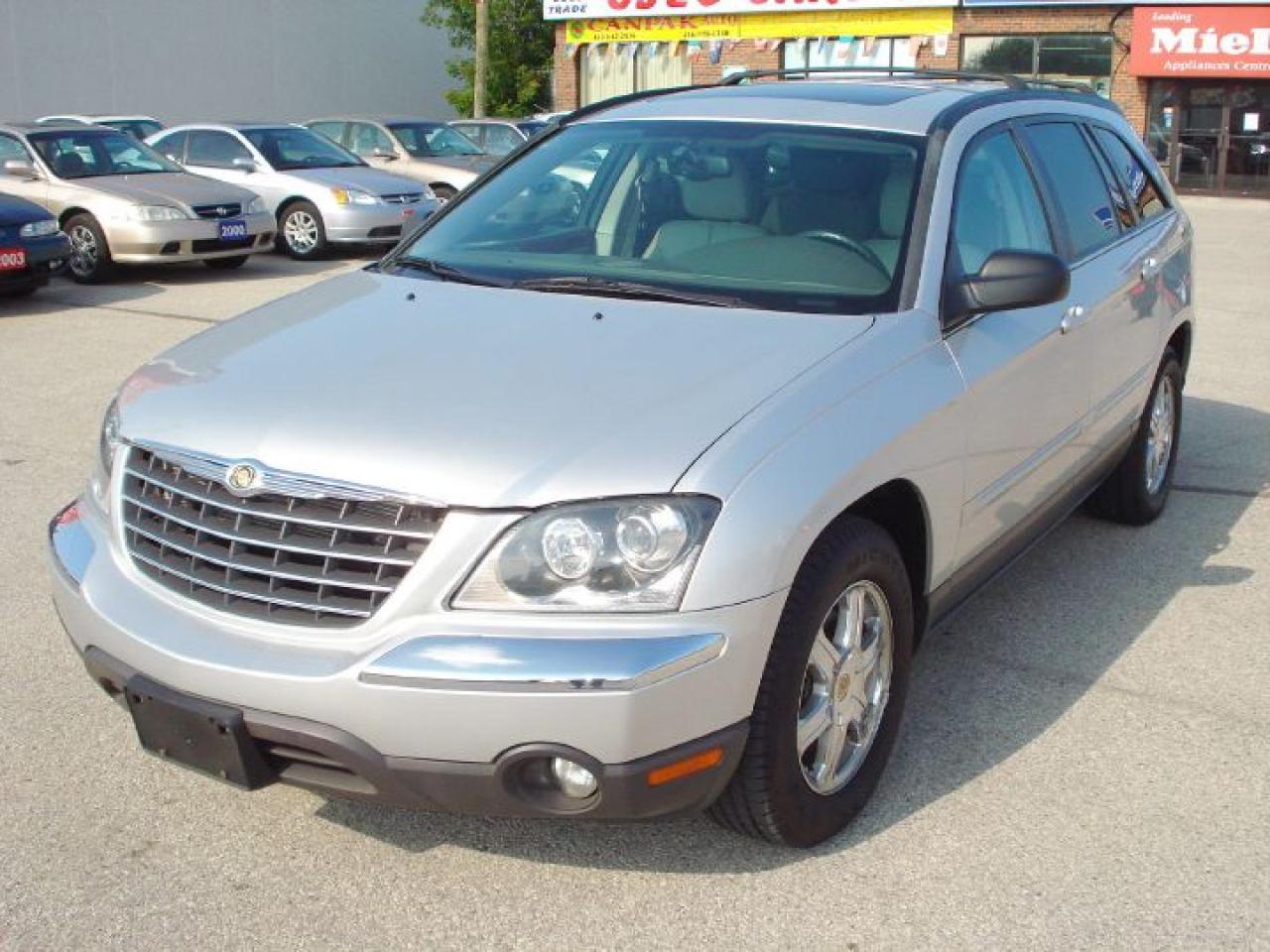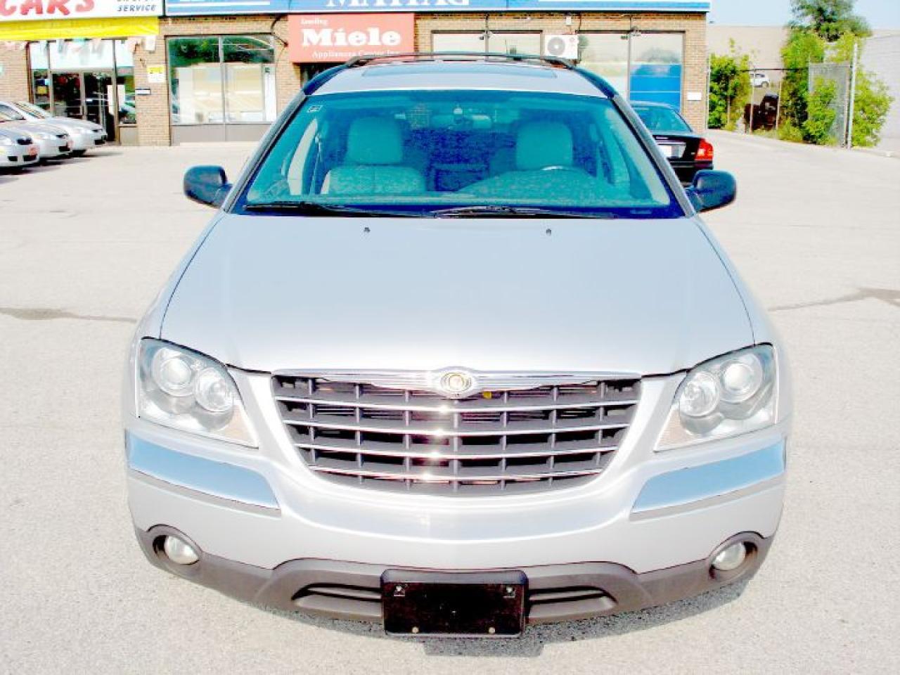 This pacifica is in excellent and mint condition. Very well maintained, very clean from in and out. Top of the line. 6 passenger, only 132,000km on it. fully loaded. SUN ROOF, Navigation system, auto climate control. DVD ENTERTAINMENT PACKAGE. alloy wheels. Leather seats, power/ heated seats, memory seats, power heated mirrors, third row seats, keyless entery, security system, power windows, power locks, power mirrors, cruise control, abs, tcs, 6 cd/dvd changer, dual air control, and lot lot more....... CERTIFIED AND E-TESTED.