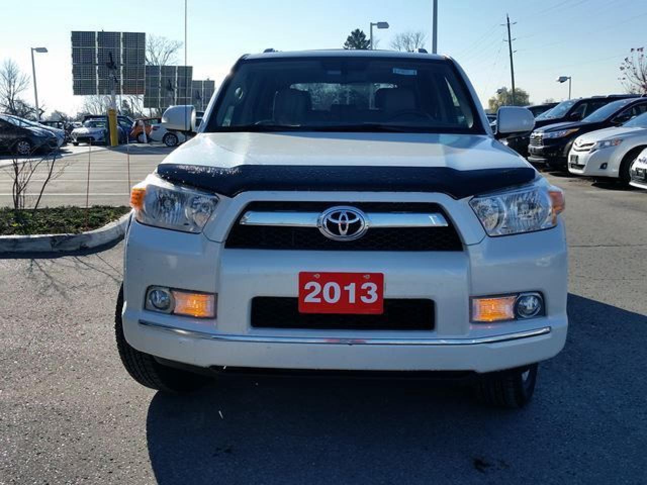 This "Blizzard Pearl" 2013 Toyota 4 Runner just came in OFF-LEASE, has had only ONE Previous Owner and is Accident-Free! This 4 Runner is very nicely equipped with Alloy Rims, Back-Up Camera, Navigation, Push Button Start, Bluetooth, Cruise Control, MoonRoof, Leather Seats, Fog Lamps and more! This vehicle qualifies for our Toyota Certified Pre-Owned Program. What does that mean? It means this vehicle has been reconditioned to the Highest of Toyota's Standards! Recent Reconditioning includes a NEW Engine Air Filter, NEW Cabin Air Filter, 4 Brand New Tires, NEW Front Brake Pads and Rotors, NEW Rear Brake Pads and Rotors, and Alignment and a Fresh Oil Change! Call in for more information and to book your Road Test Today!