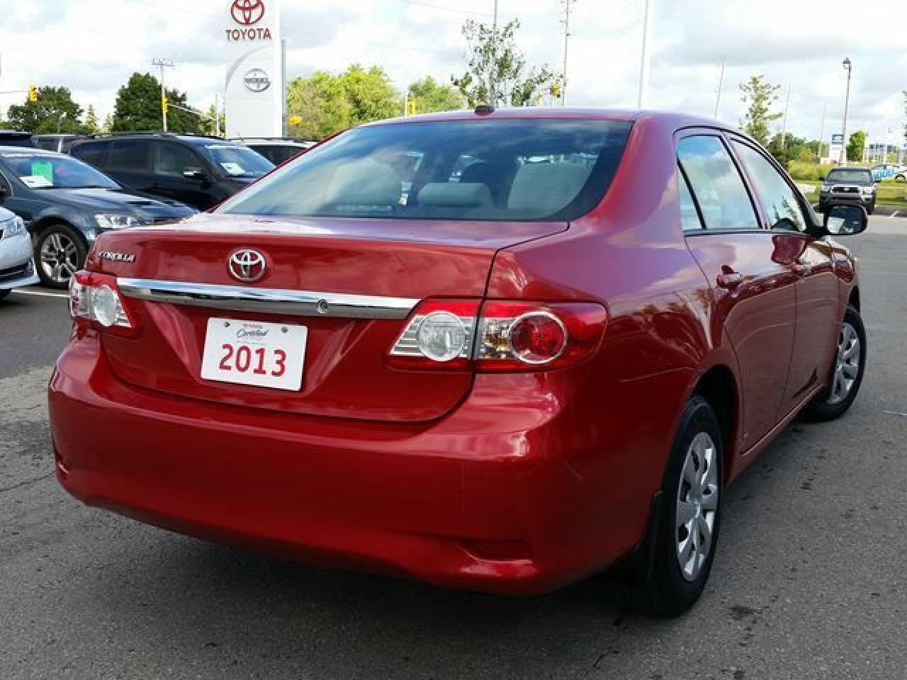 This "Barcelona Red Metallic" 2013 Toyota Corolla is the CE Package. This vehicle has had ONE Previous Owner and is Accident-free! Featured with Power Windows / Locks / Mirrors, Air Conditioning, Keyless Entry, Cruise Control and more! This vehicle qualifies for our Toyota Certified Pre-Owned Program. What does that mean? It means this vehicle has been reconditioned to the Highest of Toyota's Standards! Recent Reconditioning includes a FRESH Oil Change, NEW Front Brake Pads and Rotors, FRESH Brake Fluid, EFI Throttle Body Service, NEW Engine Air Filter, NEW Cabin Air Filter, 2 Brand NEW Tires and a REAR Brake Service! Call in for more information and to book a Road Test Today!