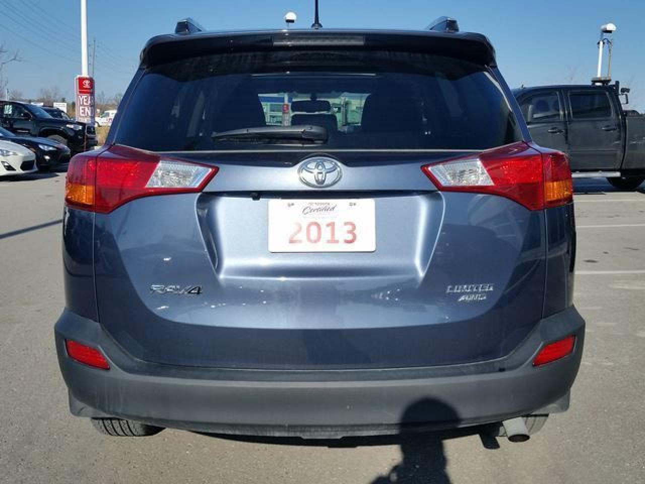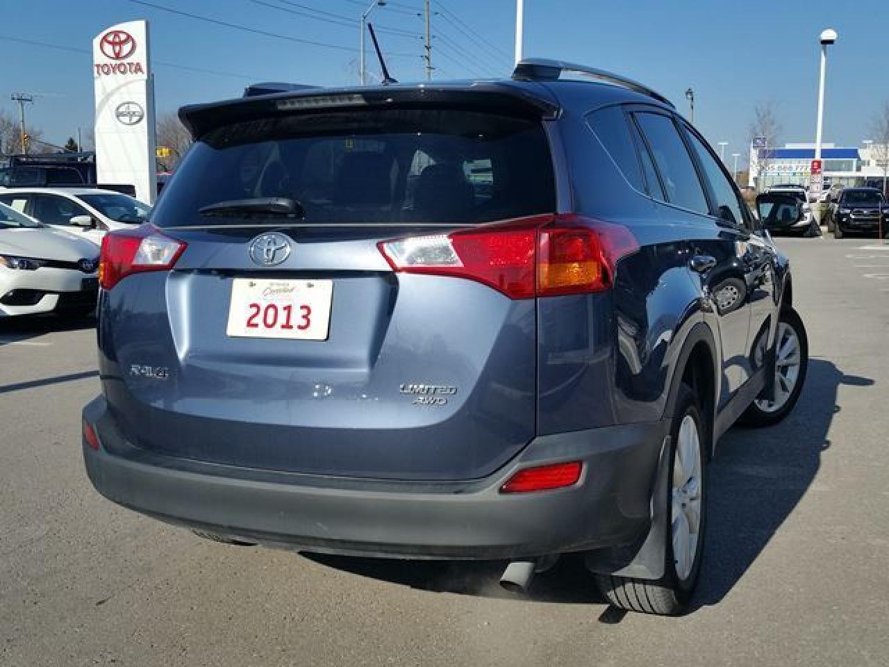This "Shoreline Blue Pearl" 2013 Toyota Rav4 is the Limited AWD model. This Rav4 has had only ONE-Previous Owner and is ACCIDENT-FREE! This vehicle is equipped with Keyless Entry, Leather Seats, Moonroof, Bluetooth, Cruise Control, Fog Lamps, Alloy Rims and much more! This vehicle qualifies for our Toyota Certified Pre-Owned Program. What does that mean? It means this vehicle has been reconditioned to the Highest of Toyota's Standards! This low KM Rav4 is ready to roll! Call in for more information and to book your Road Test Today!