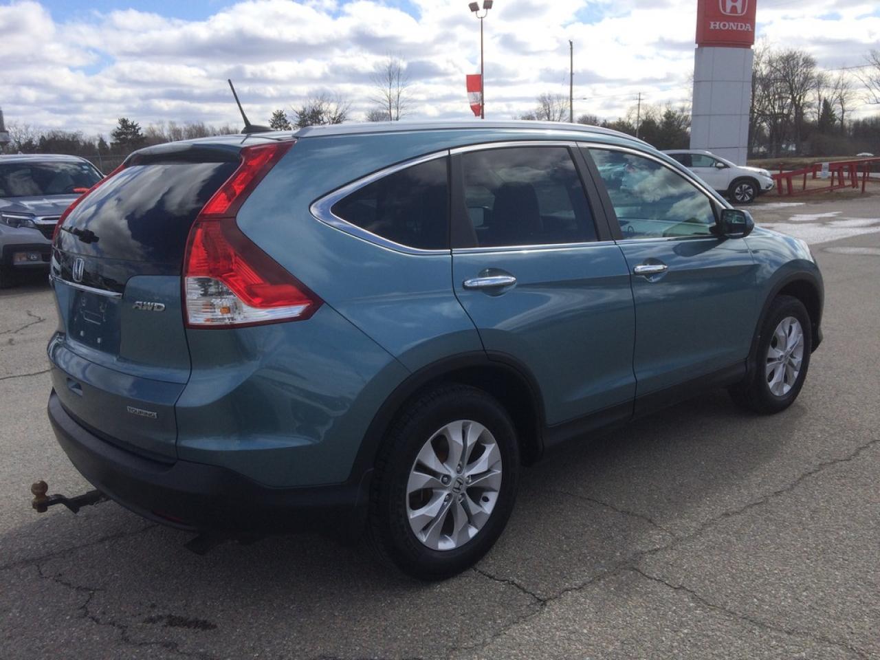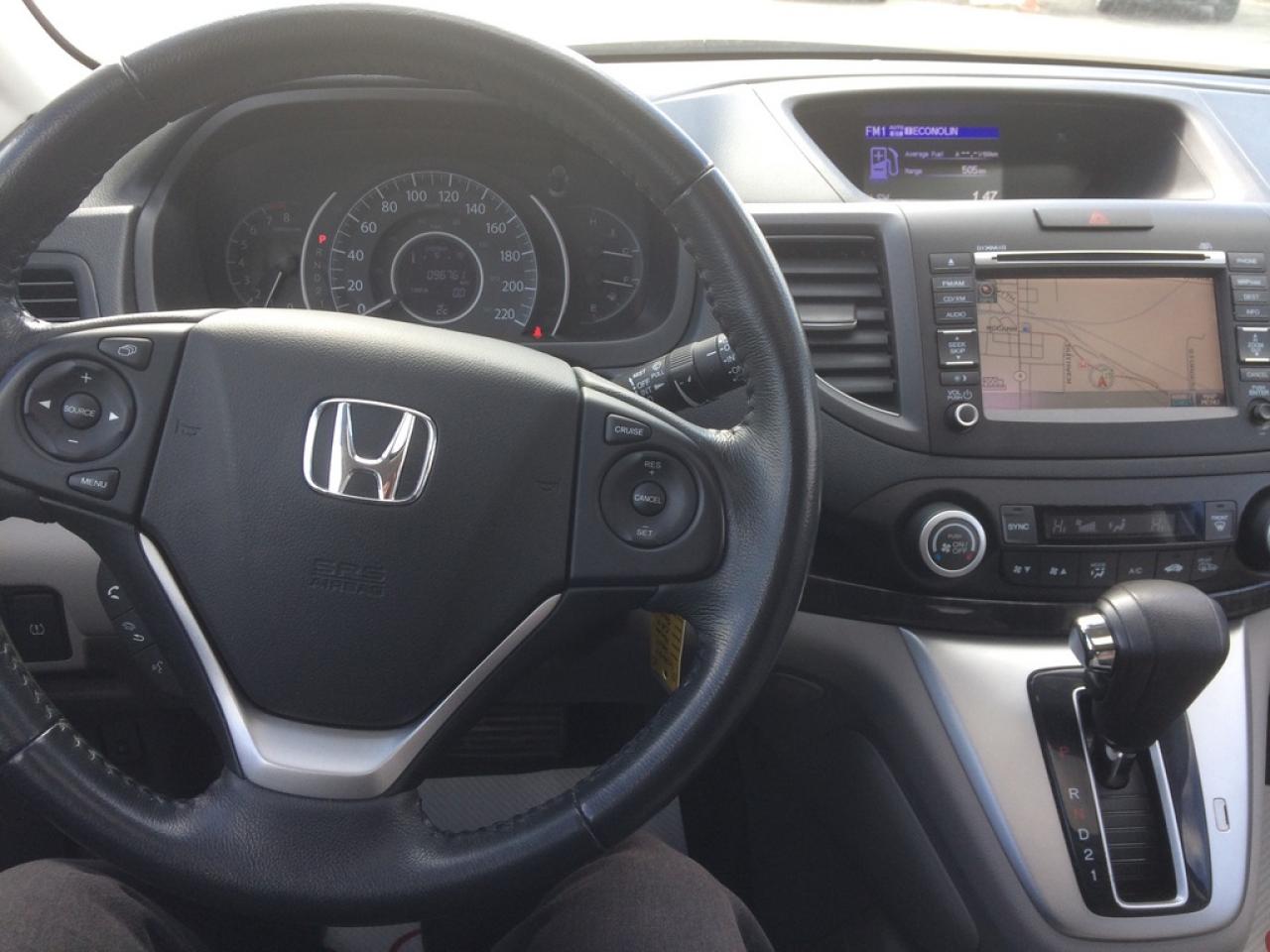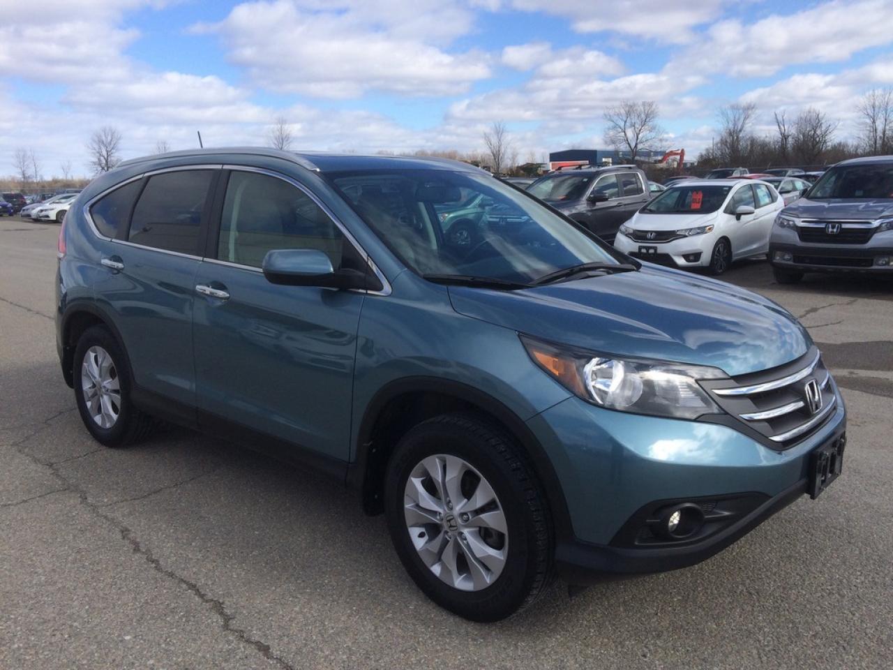 One owner local trade fully loaded CRV Touring. Has been Honda serviced since new and no accident history. It's equipped with every feature available for a 2014 CRV. Leather, heated seats, Navigation, Back-up camera, Bluetooth hands free, One touch fold down rear seats, and much more. Exterior is finished in beautiful Mounain Air Metallic.Â