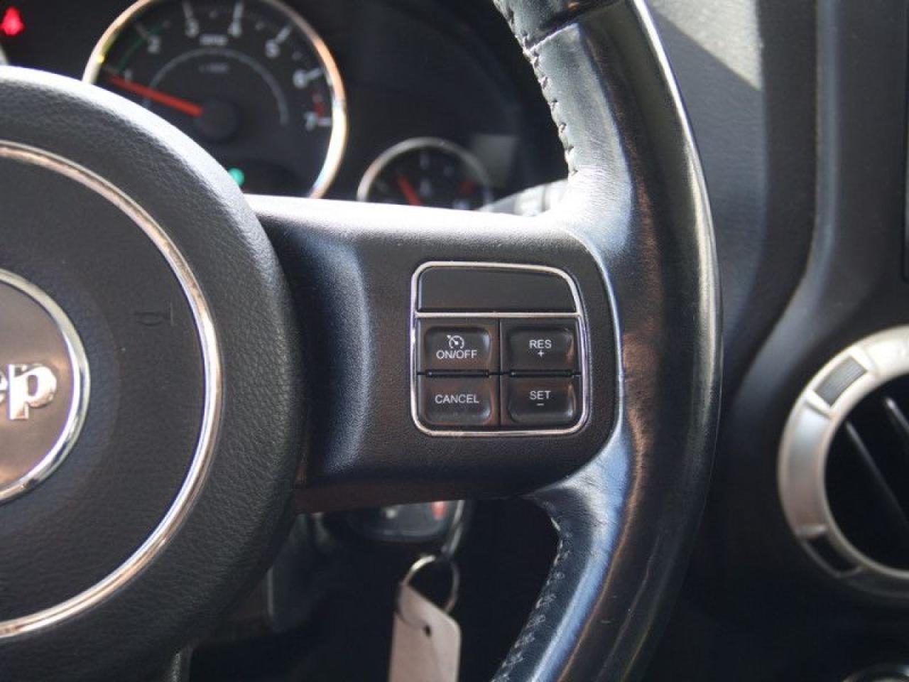 Our Wrangler Unlimited's trim level is Sahara. The 2017 Jeep Wrangler Unlimited Sahara offers classic styling and focuses on functional design with a heavy duty suspension, aluminum wheels, side steps, body-color fender flares plus black heated power mirrors. Additional features include SiriusXM, a leather-wrapped steering wheel, air conditioning, cruise control and much more.